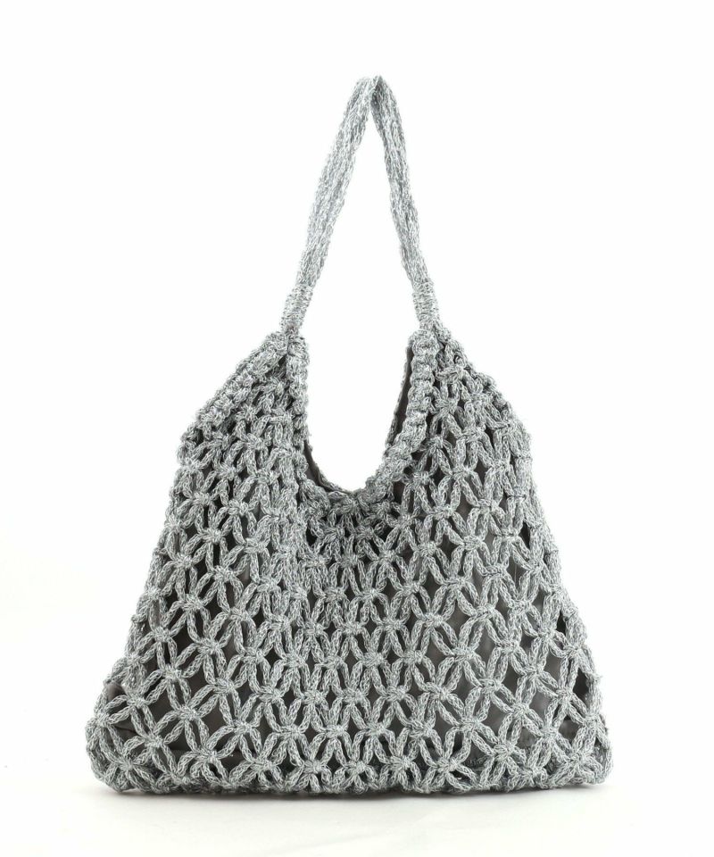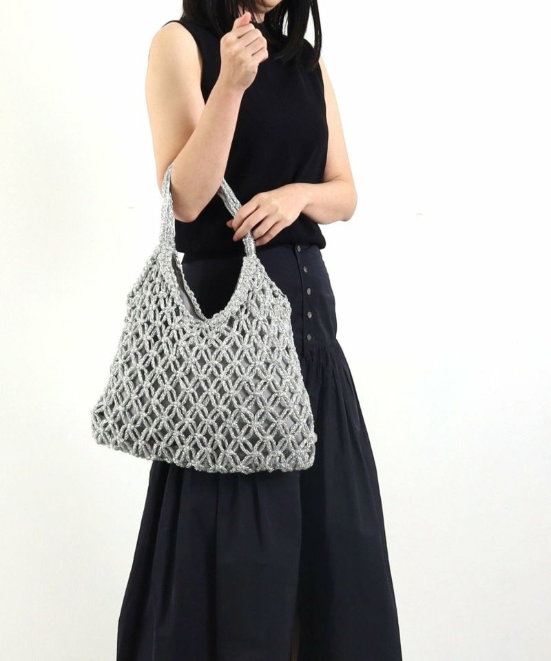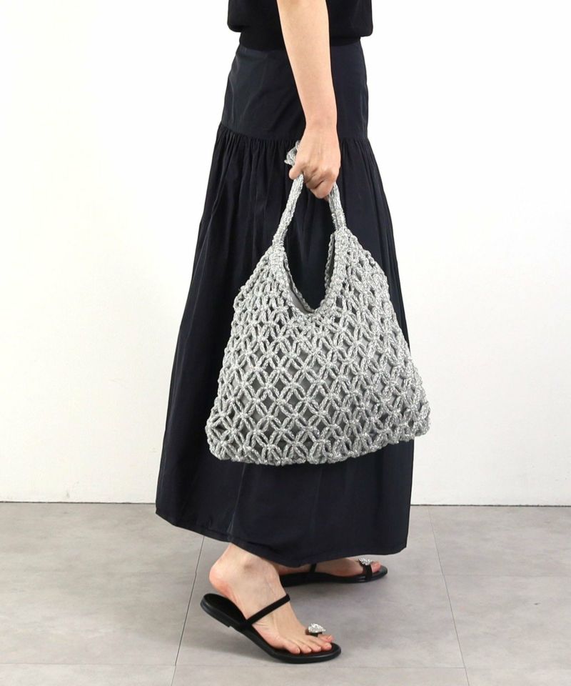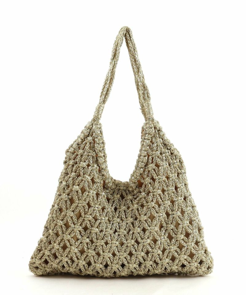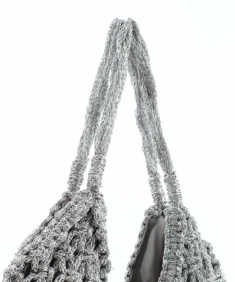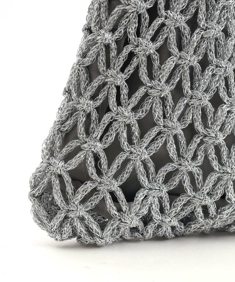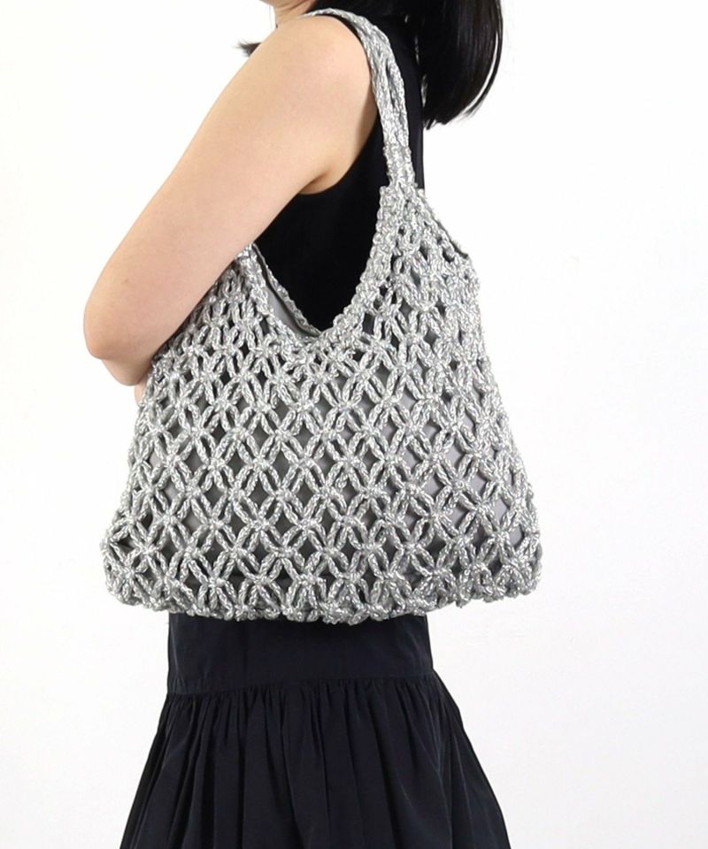 落ち着いた輝きのラメ糸を編み上げたトートバッグ。