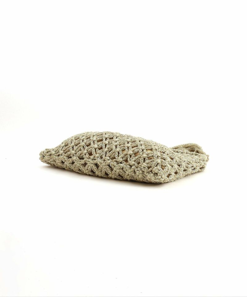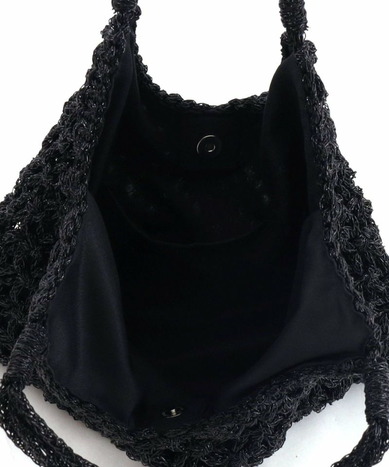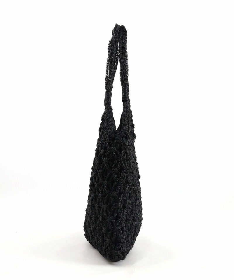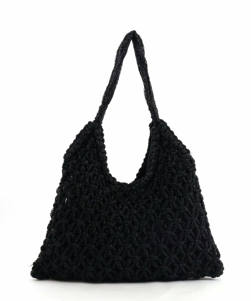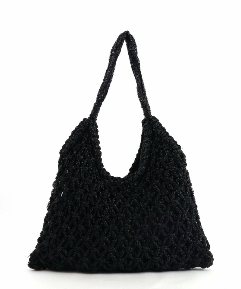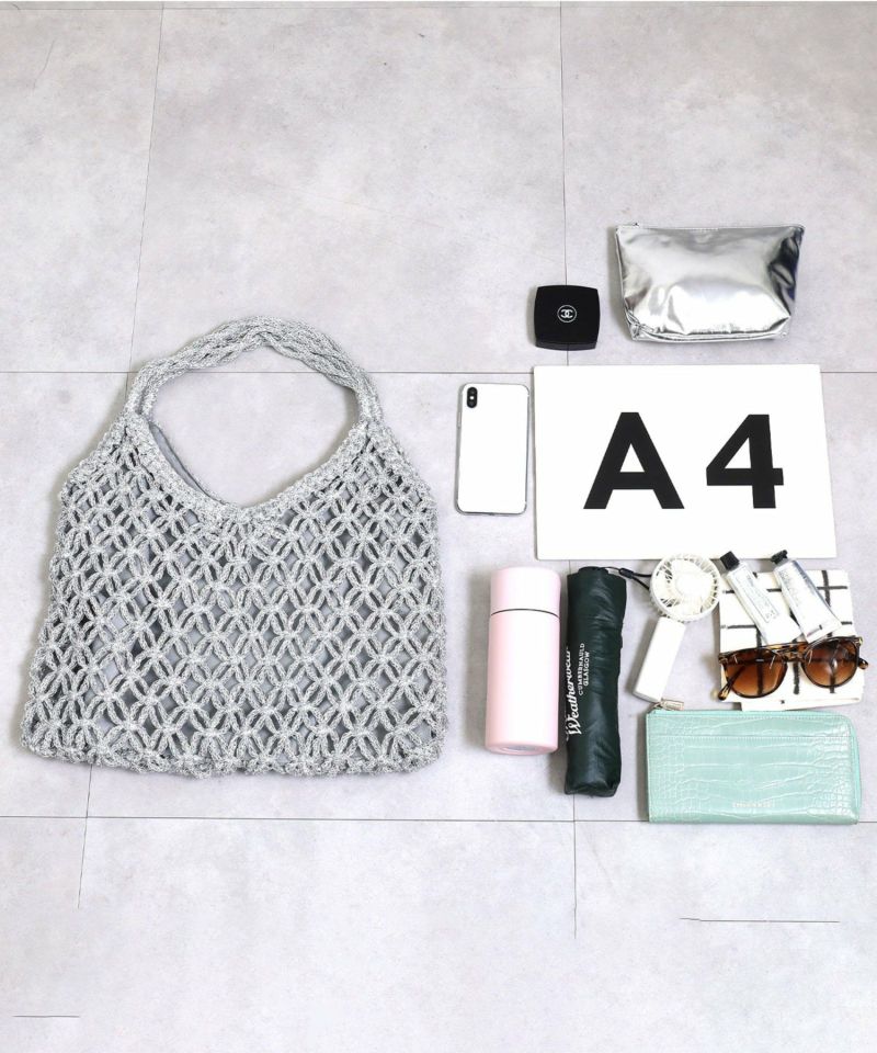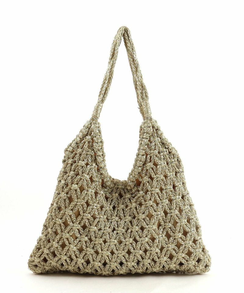 落ち着いた輝きのラメ糸を編み上げたトートバッグ。