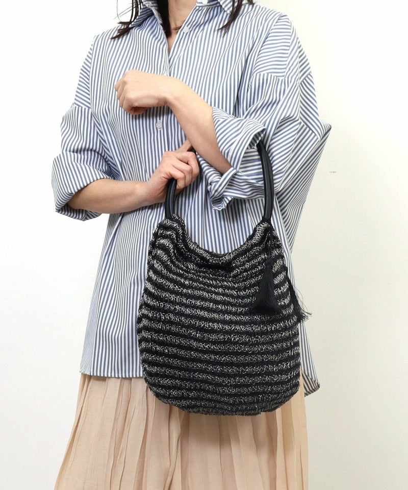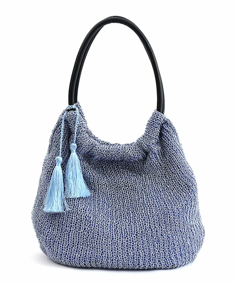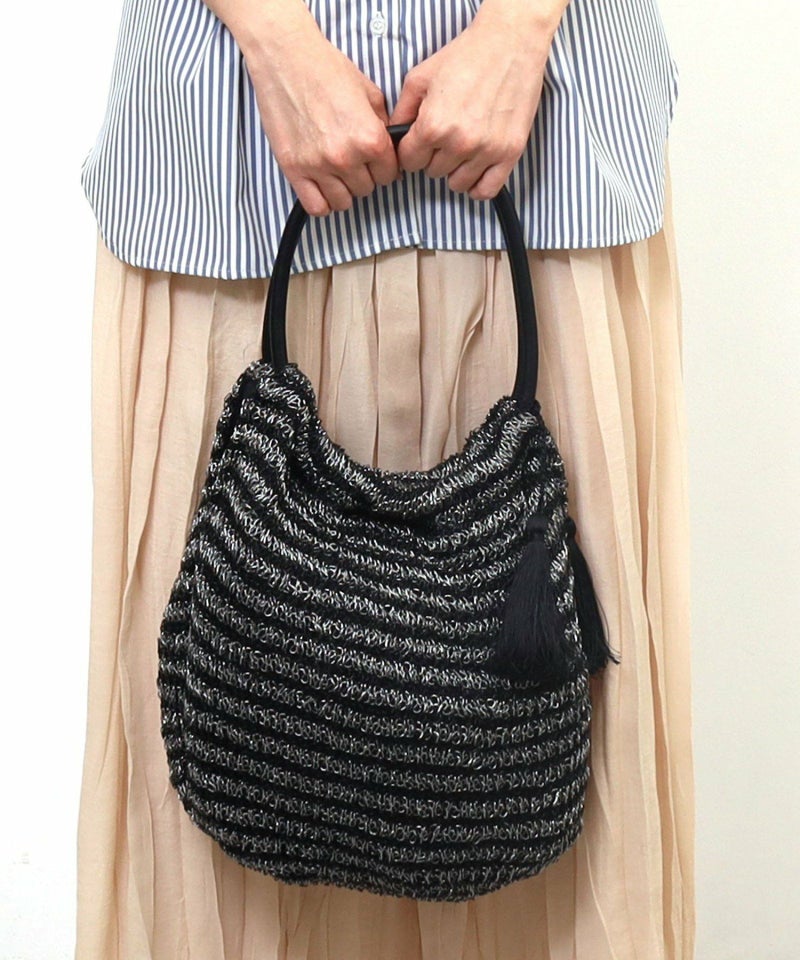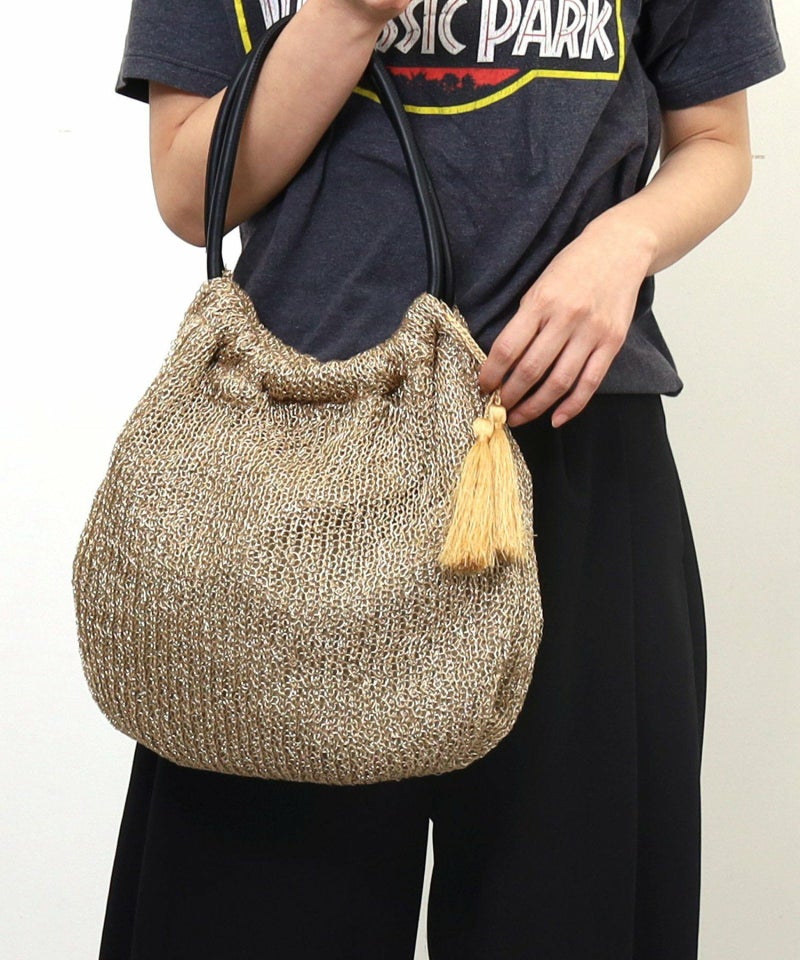 メタリック糸を機械編みで編み上げたサマーバッグです。