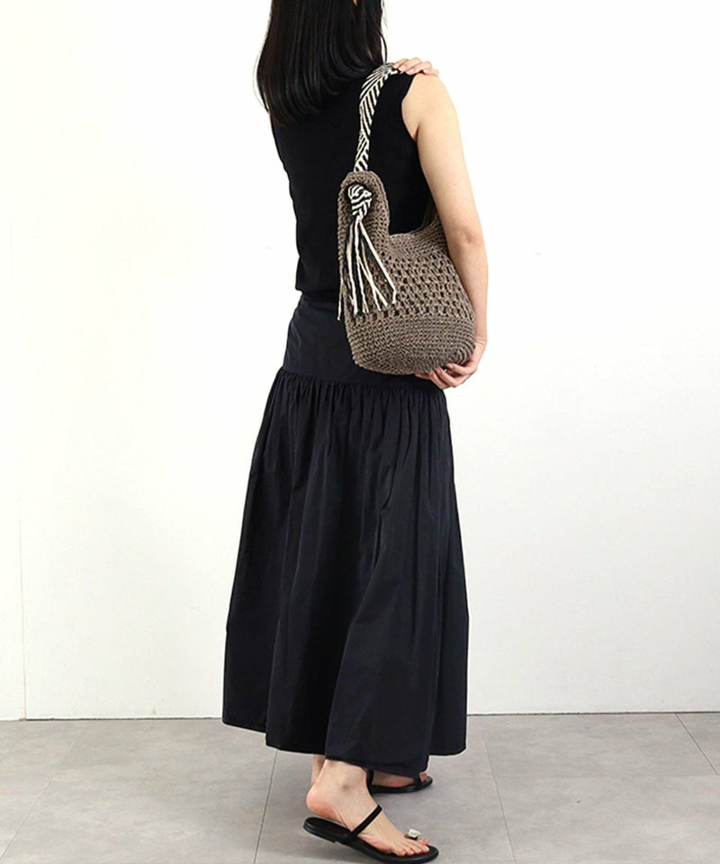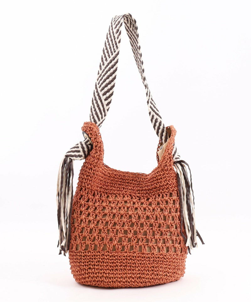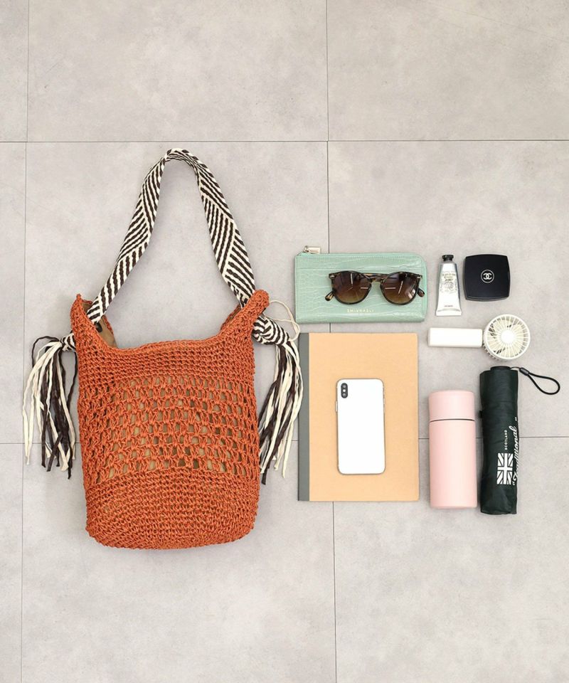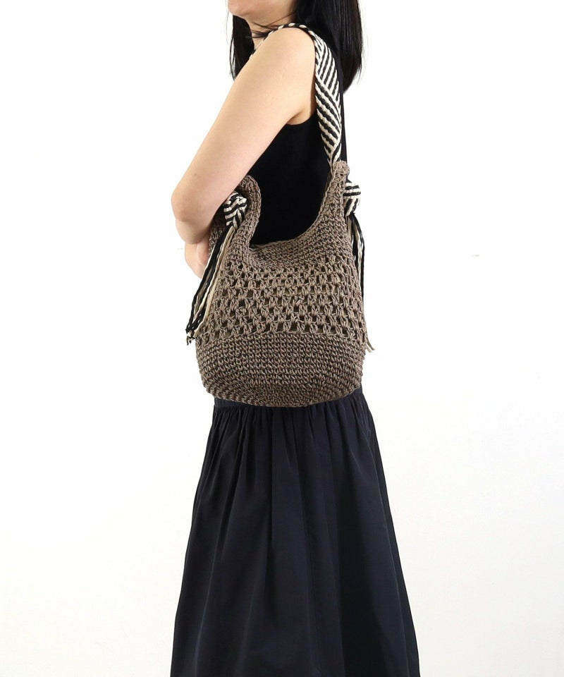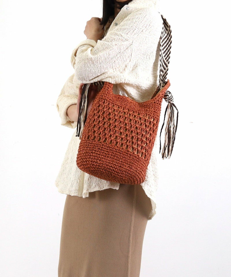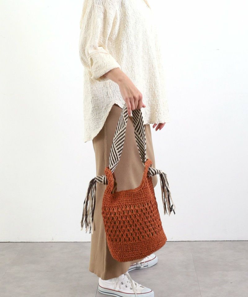 柄テープハンドルがエスニックで大人な印象のざっくりペーパートートバッグ