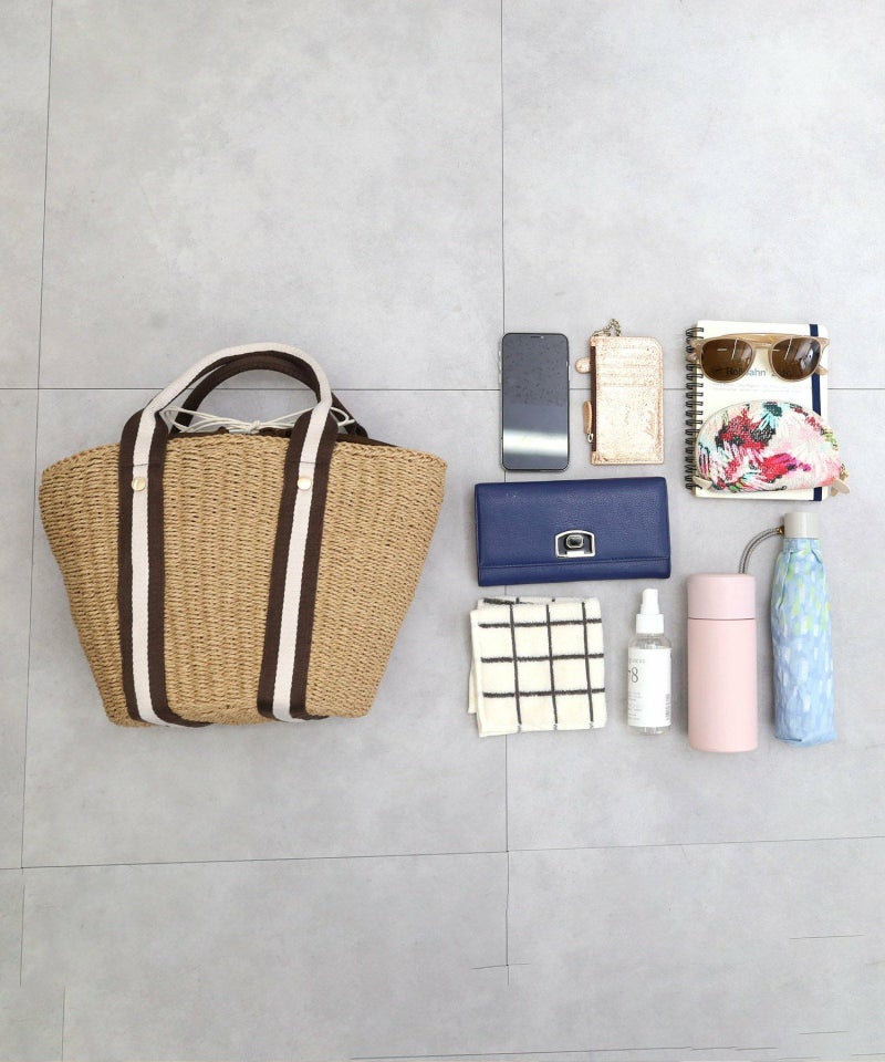 密に編んだペーパー素材ですので、しっかり自立するバッグです