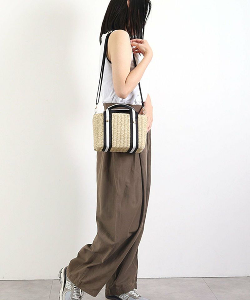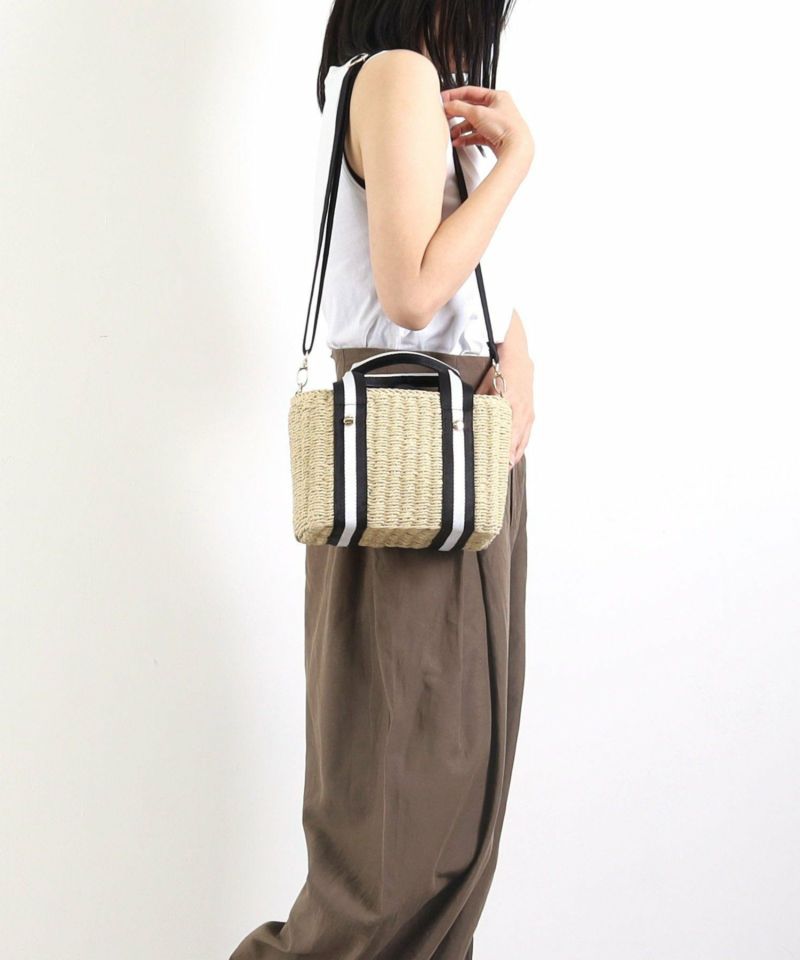 密に編んだペーパー素材ですので、しっかり自立するバッグです