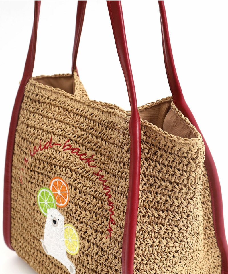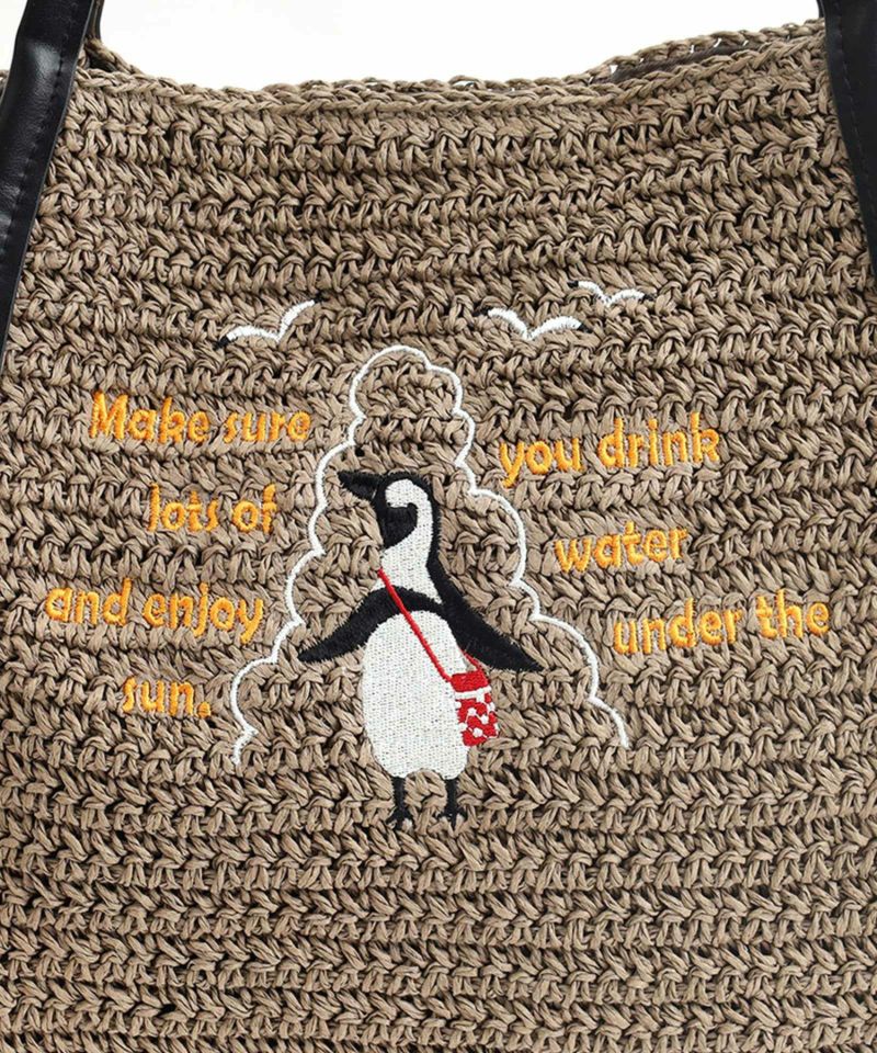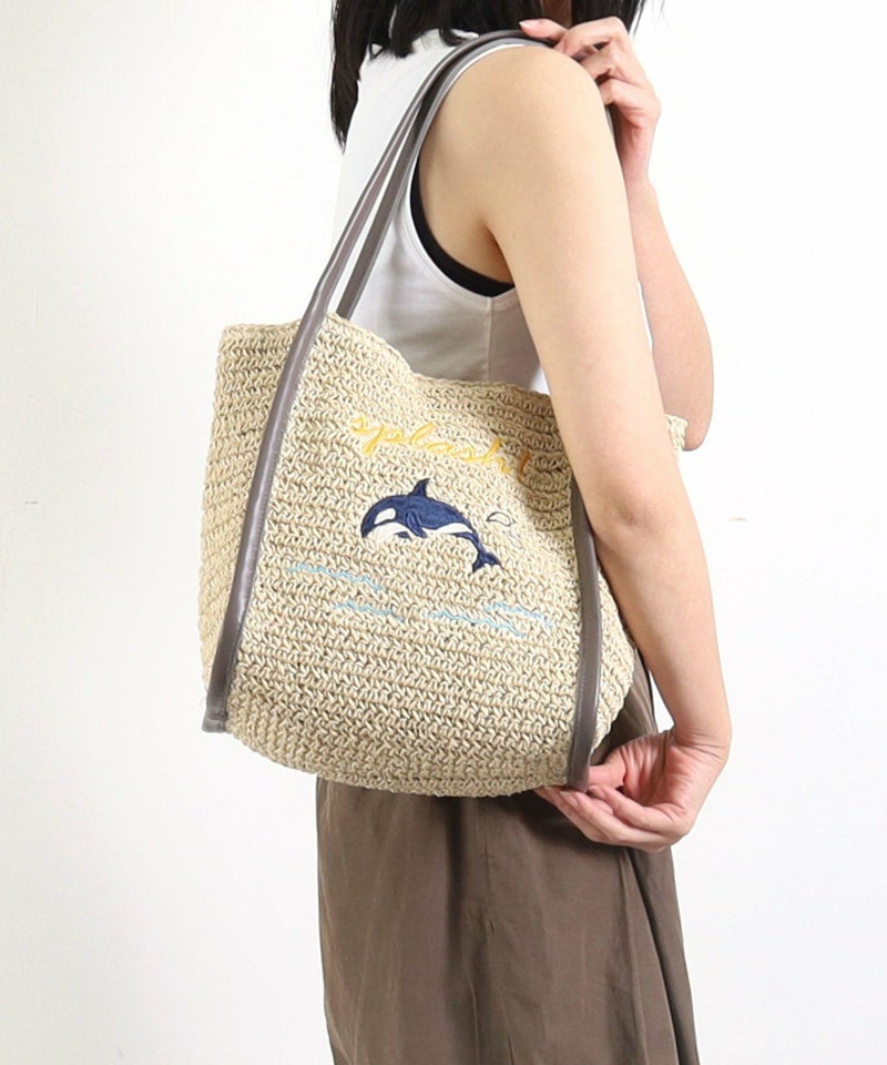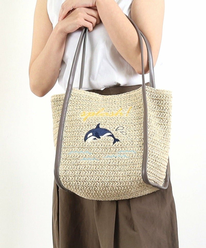 ナチュラルなペーパー素材に遊びごろのある動物の刺繍をしたトートバッグ