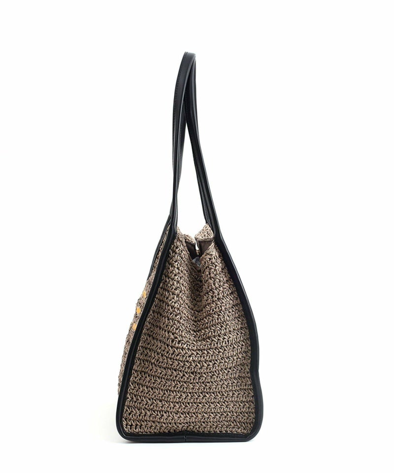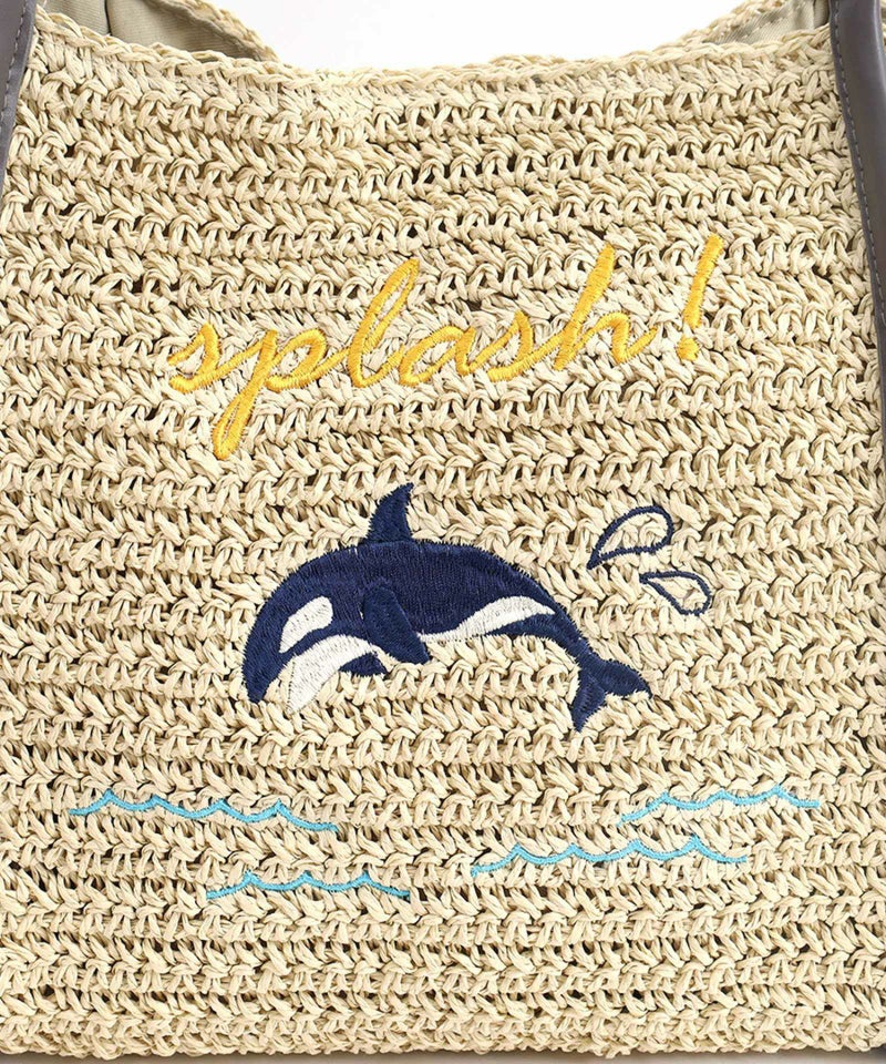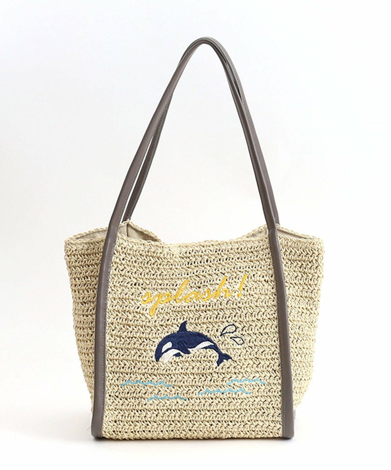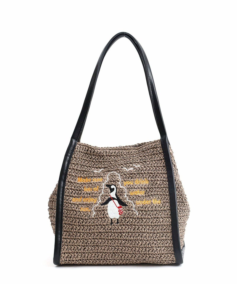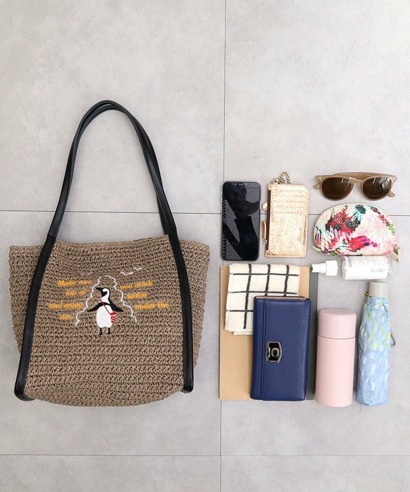 ナチュラルなペーパー素材に遊びごろのある動物の刺繍をしたトートバッグ