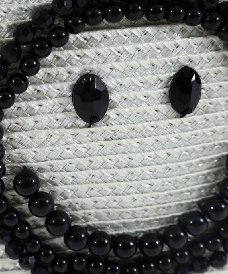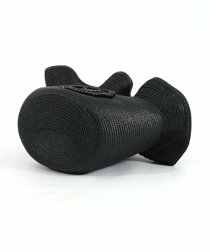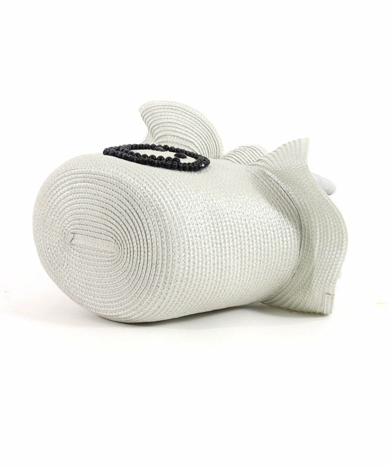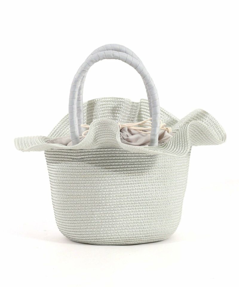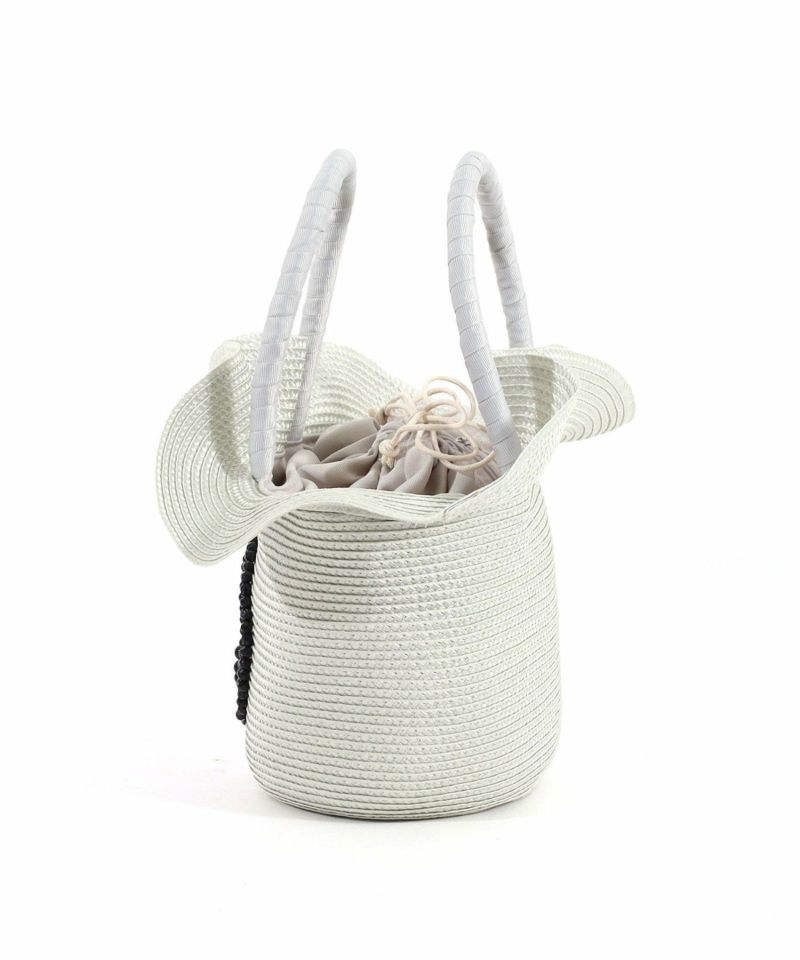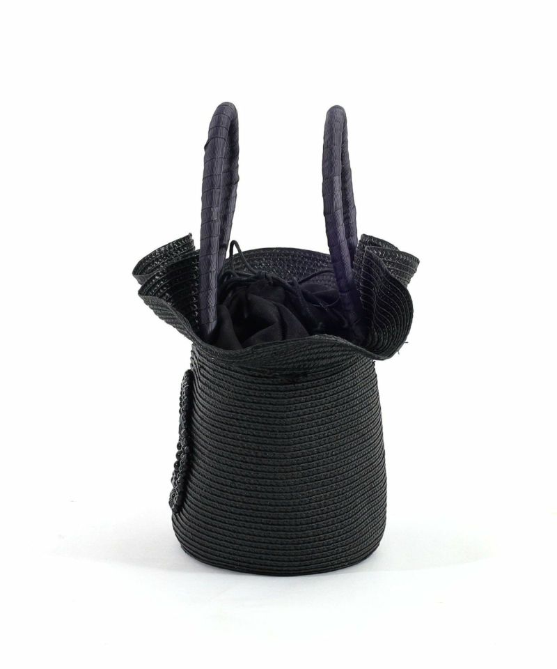 光沢のあるポリプロピレンテープをたっぷり使用し、口元がフリルのようなフェミニンなフォルムになるよう仕上げました。