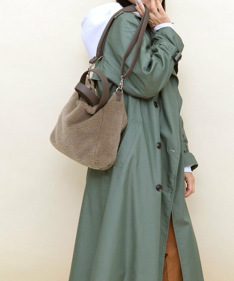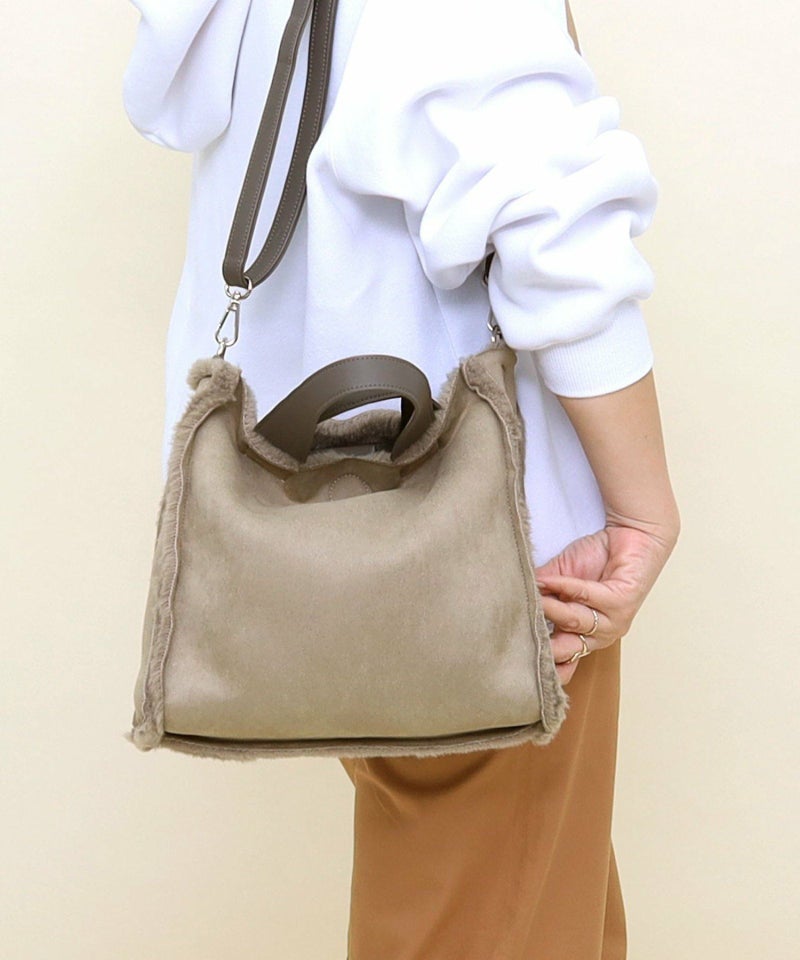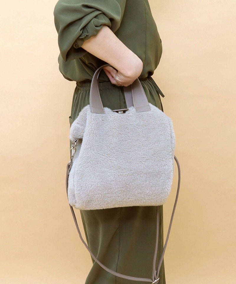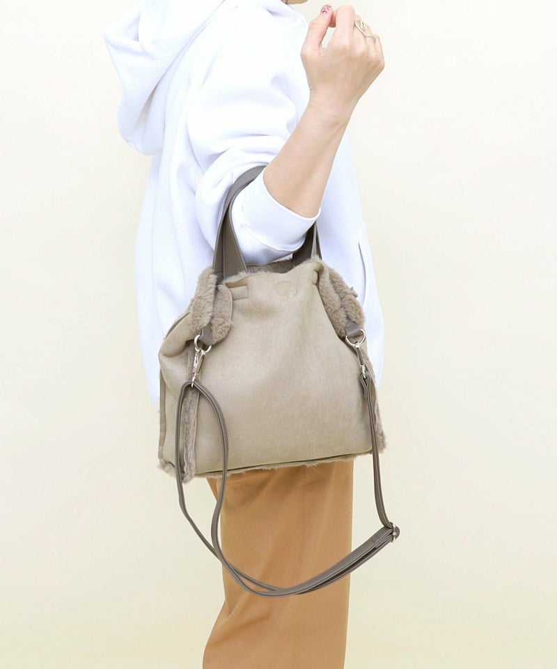 季節感あるフェイクスエードとボアのコンビワミニ2WAYバッグ。