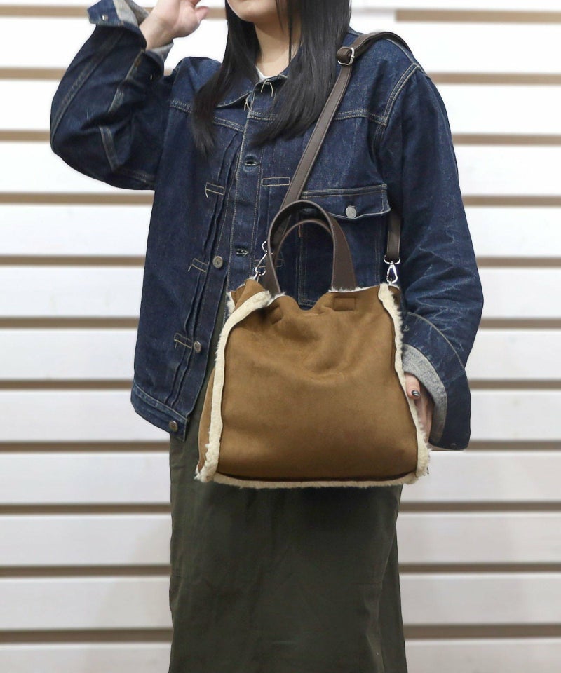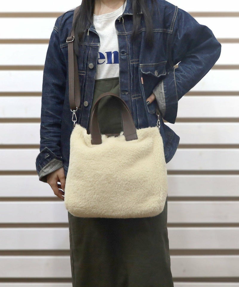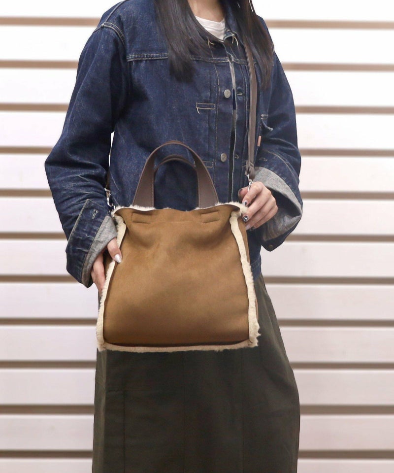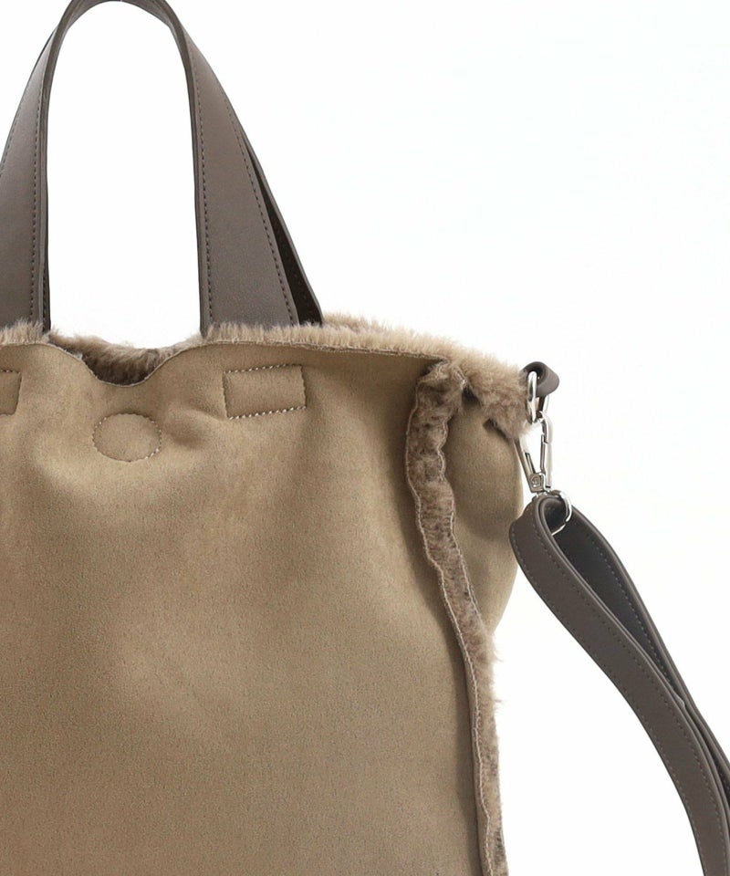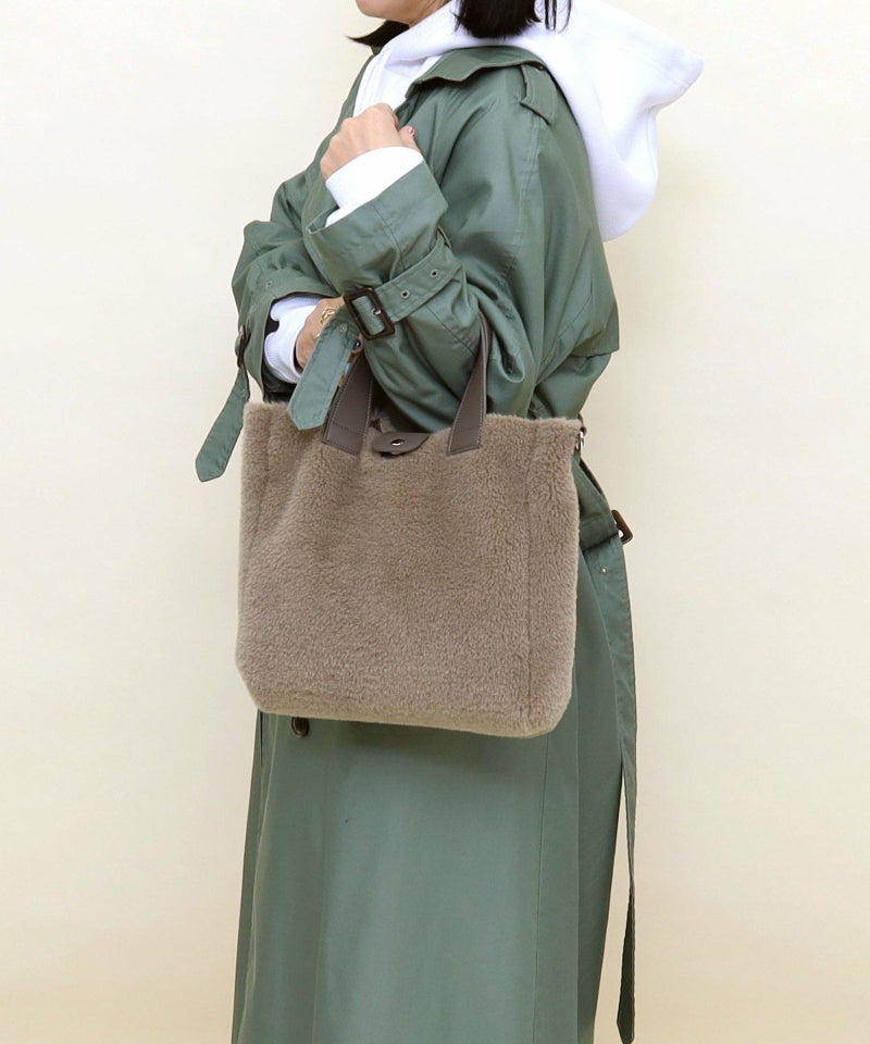 季節感あるフェイクスエードとボアのコンビワミニ2WAYバッグ。