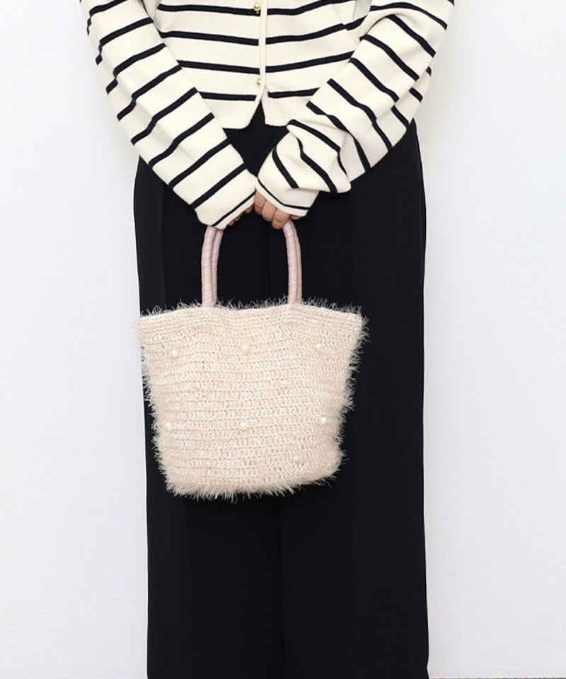 ふんわり質感と上品なパールで、冬のおしゃれを格上げするトートバッグ