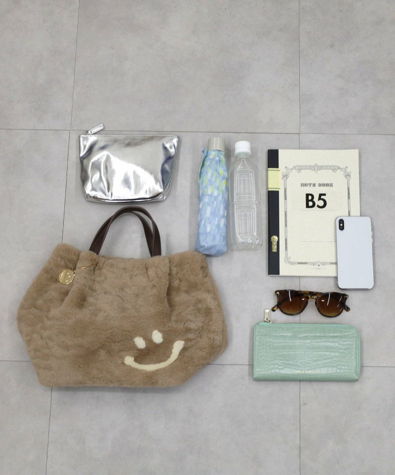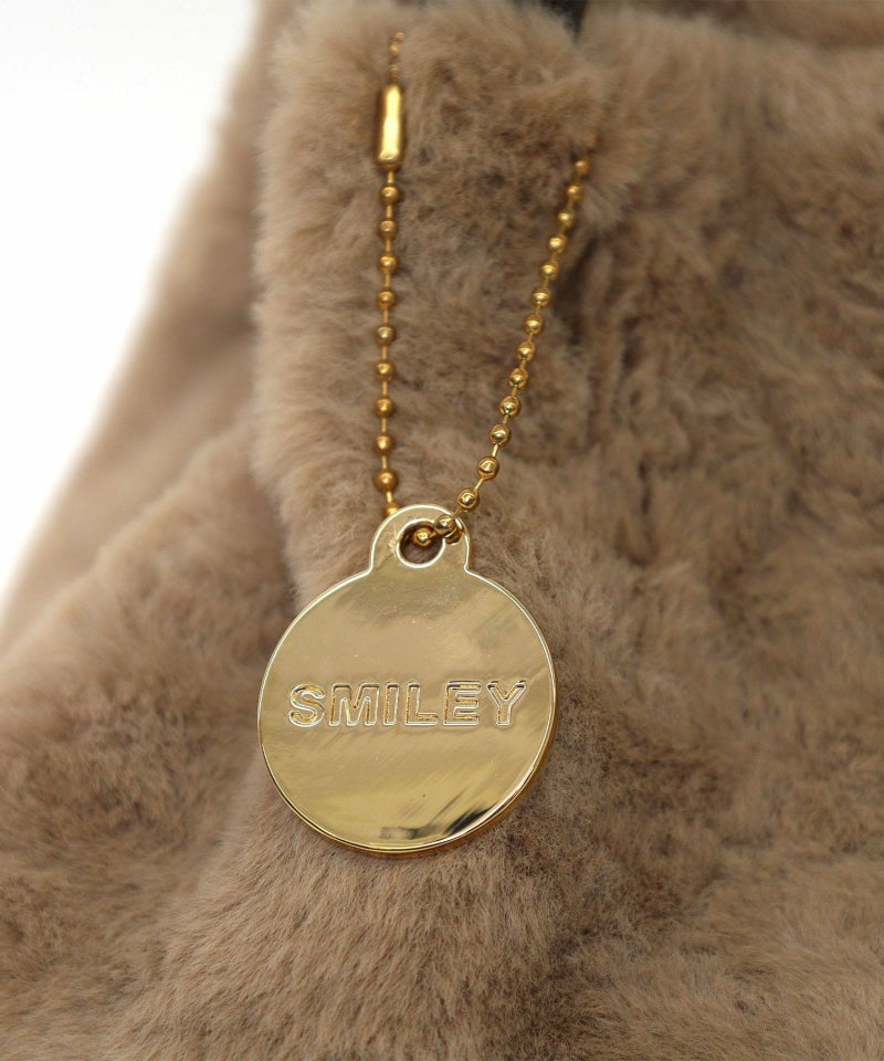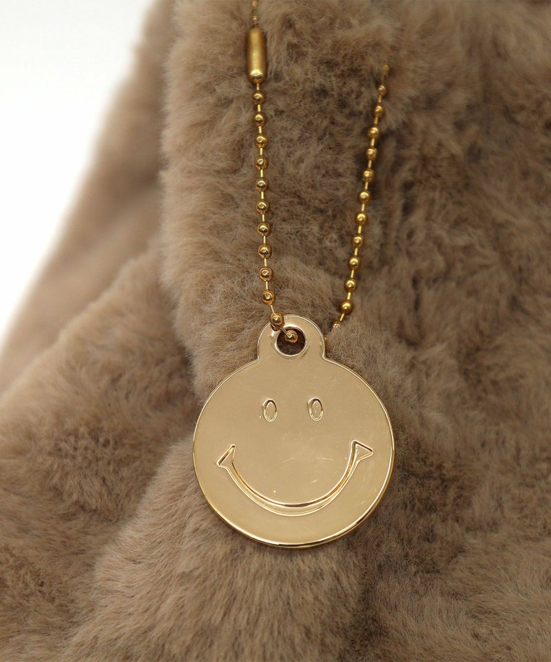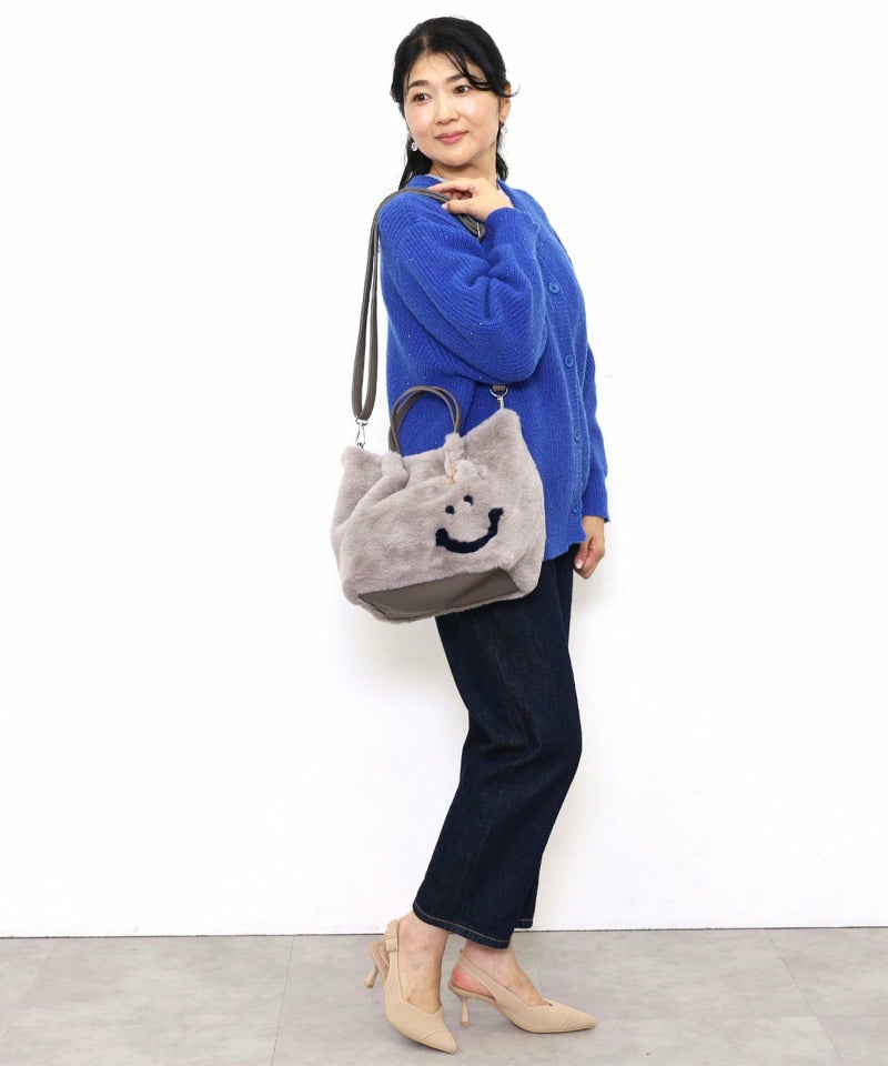 見た目も気分もハッピーにしてくれるスマイリーフェイスがポイントの、ふわふわ素材の2WAYバッグ。