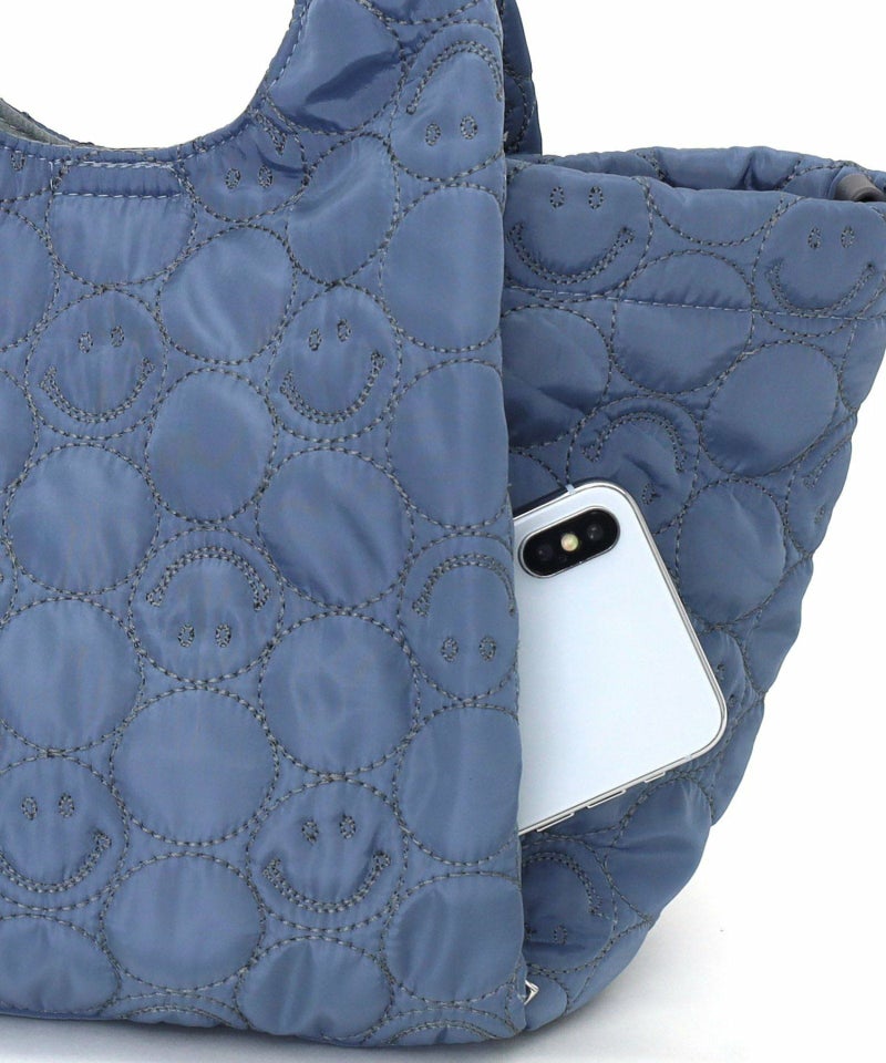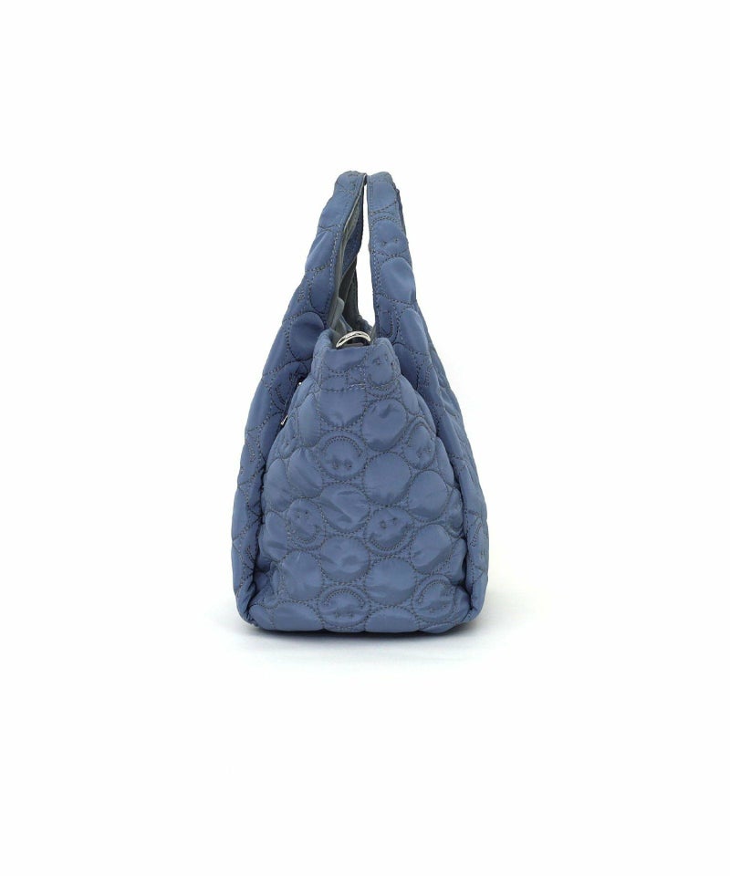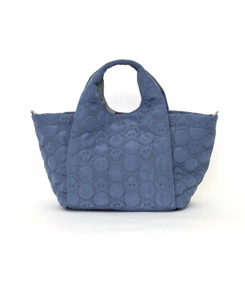 スマイリーフェイスをあしらったキルティングデザインがポイントの、遊び心あふれるバッグ。