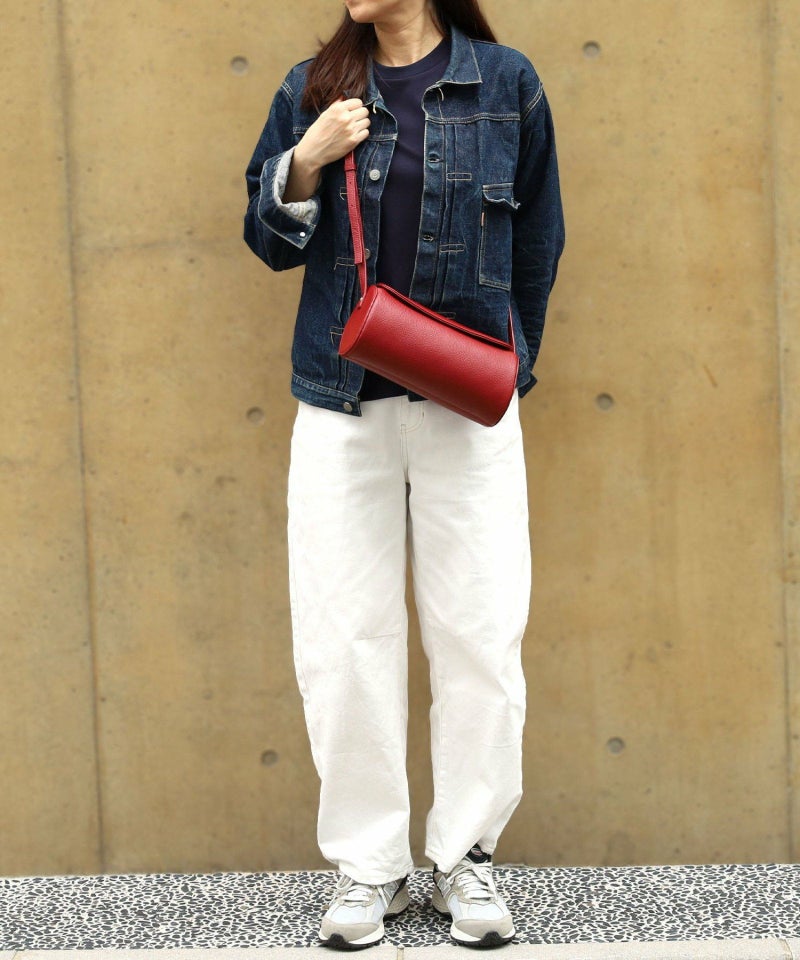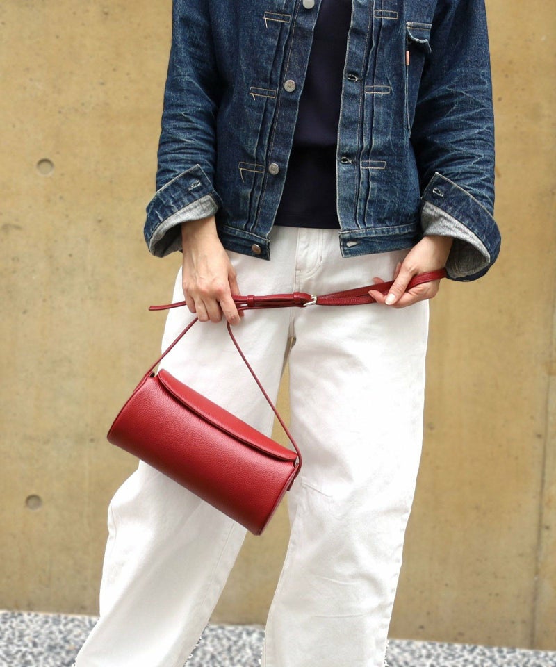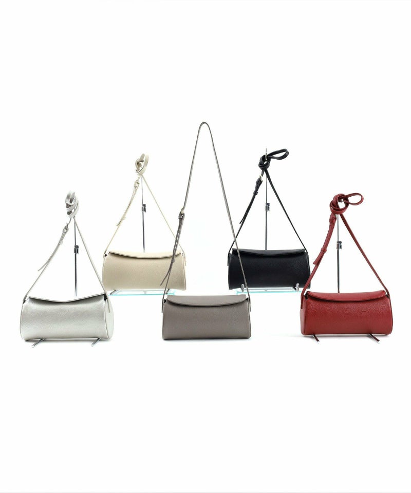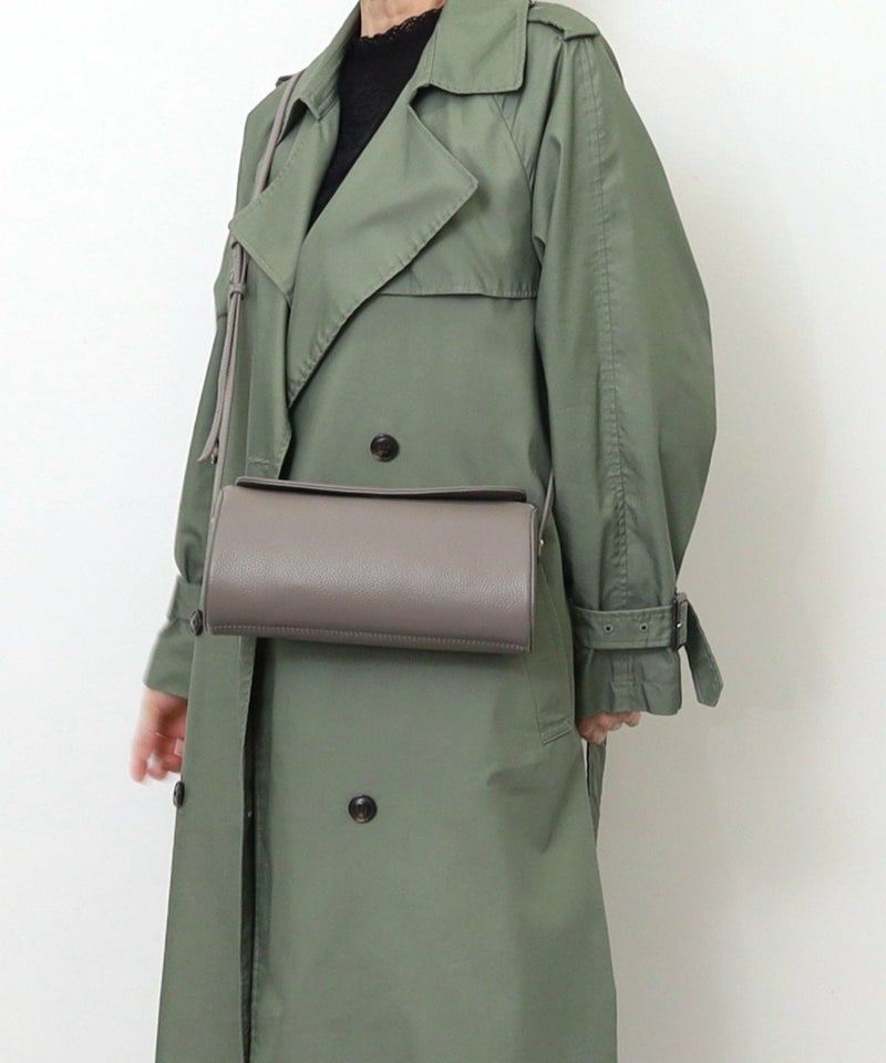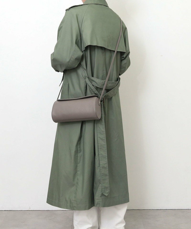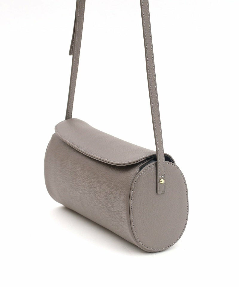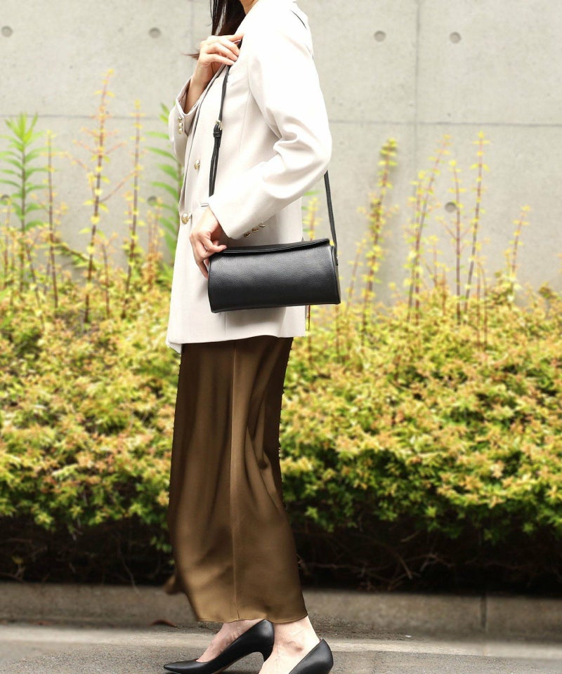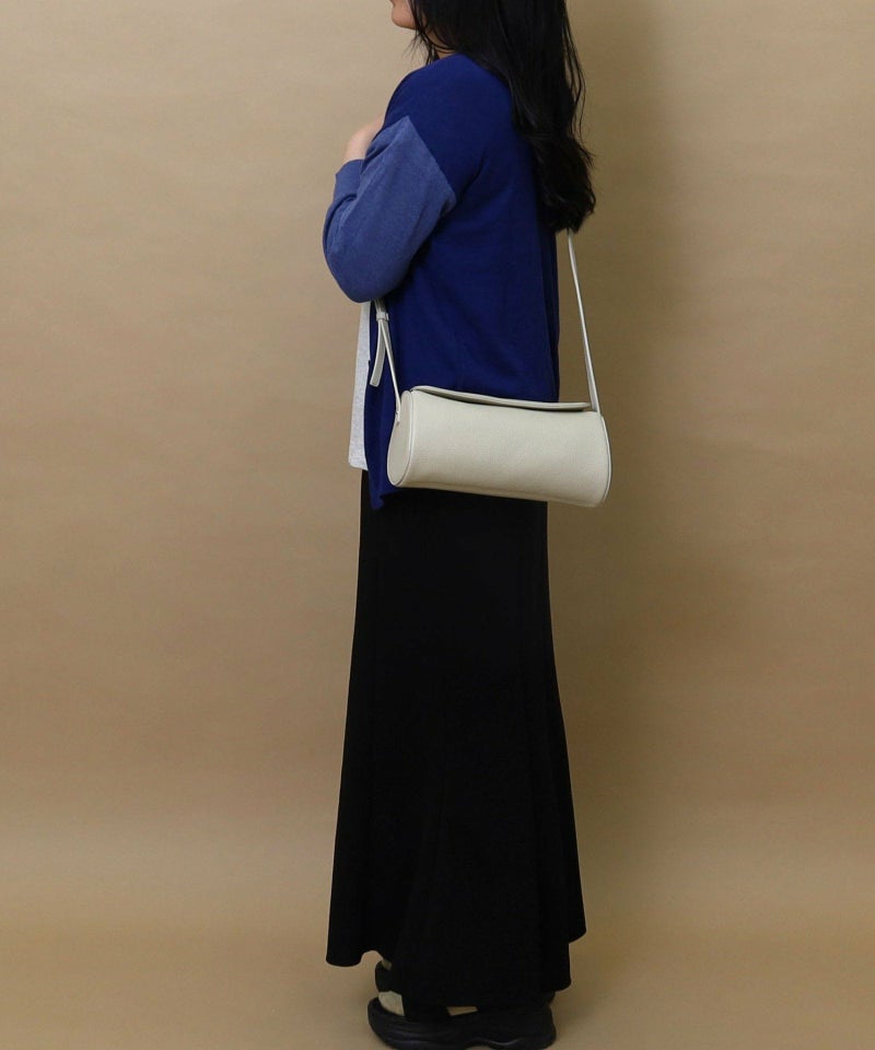 人気の牛革シュリンクレザーシリーズ。筒形でトレンドの横長デザインがポイントのショルダーバッグ。
