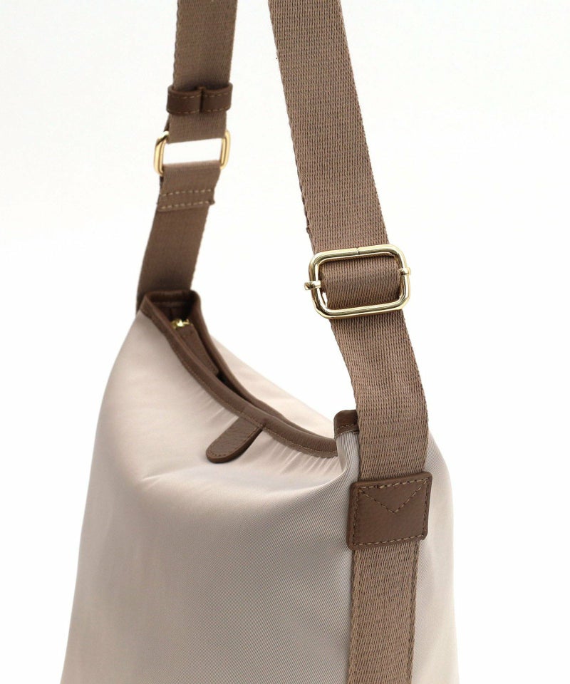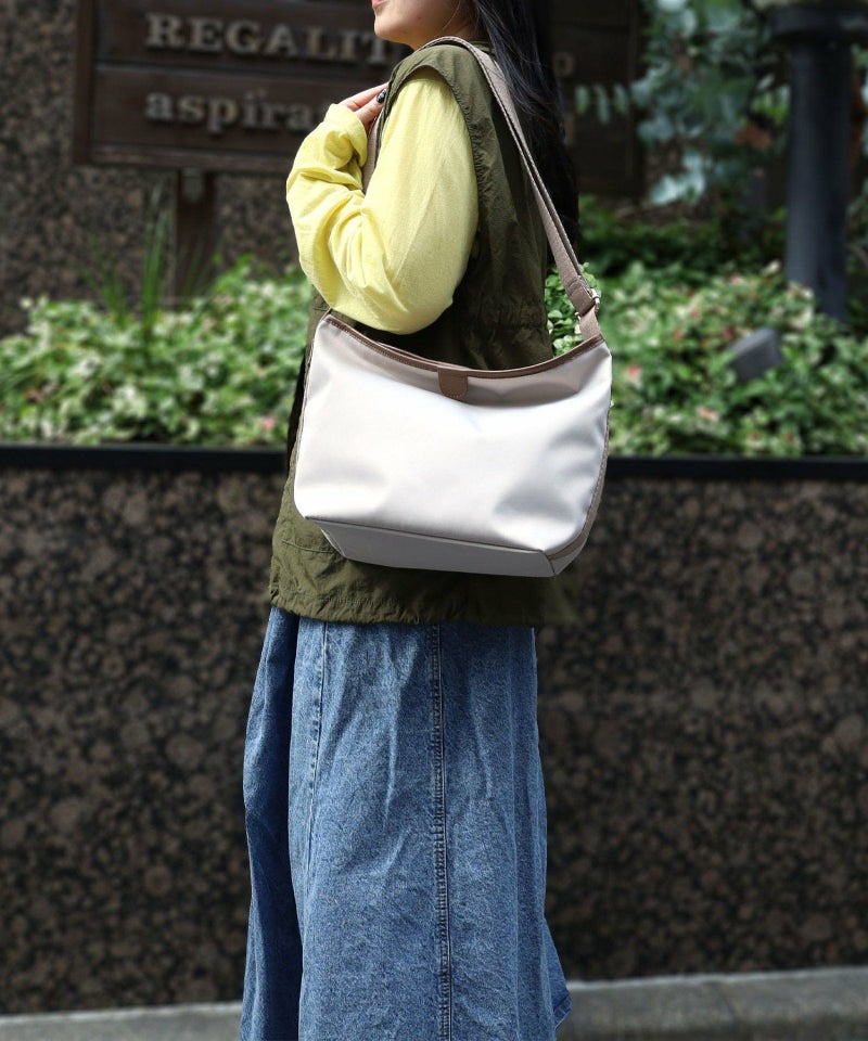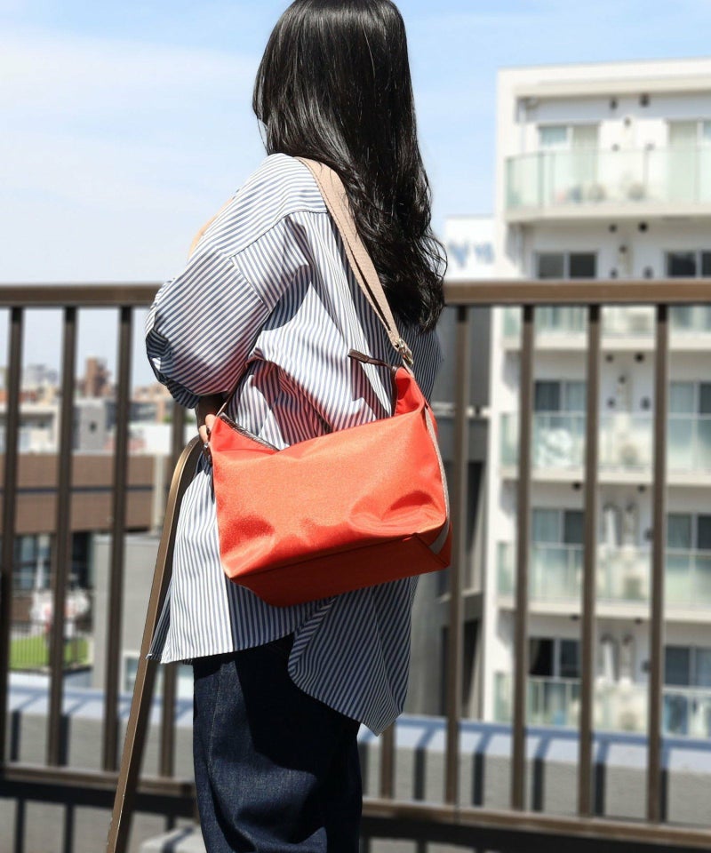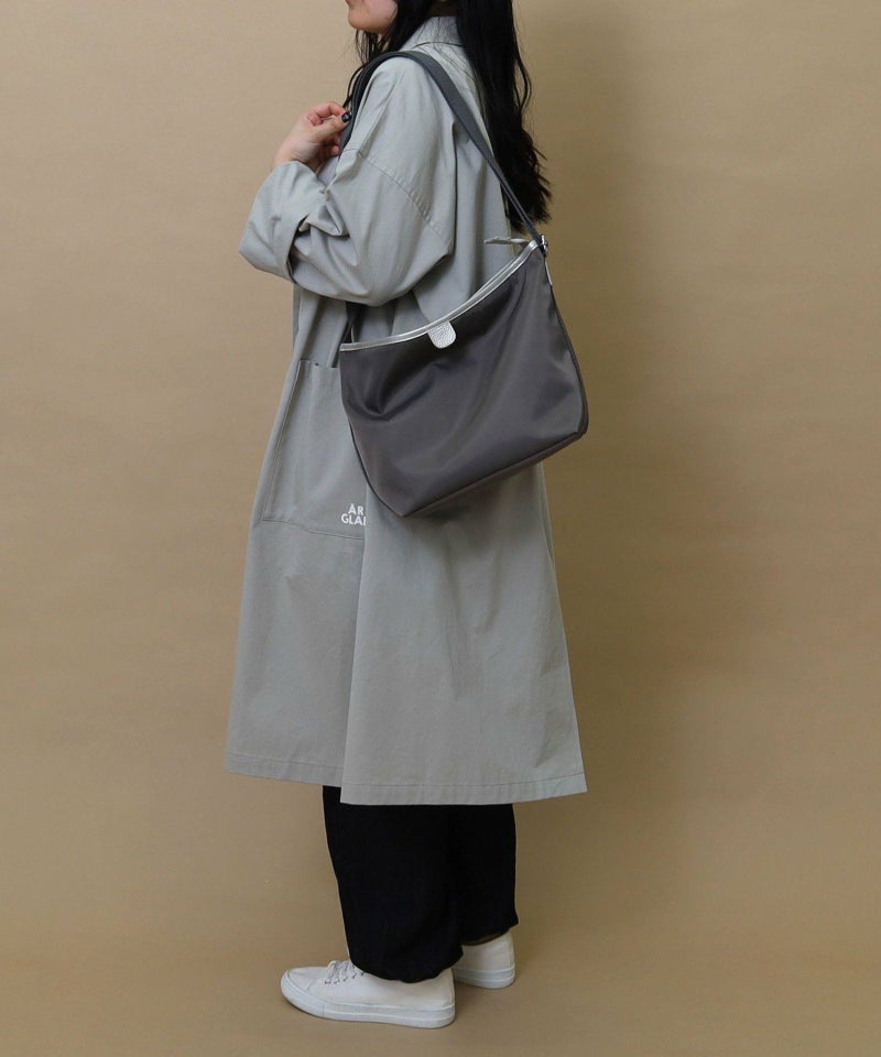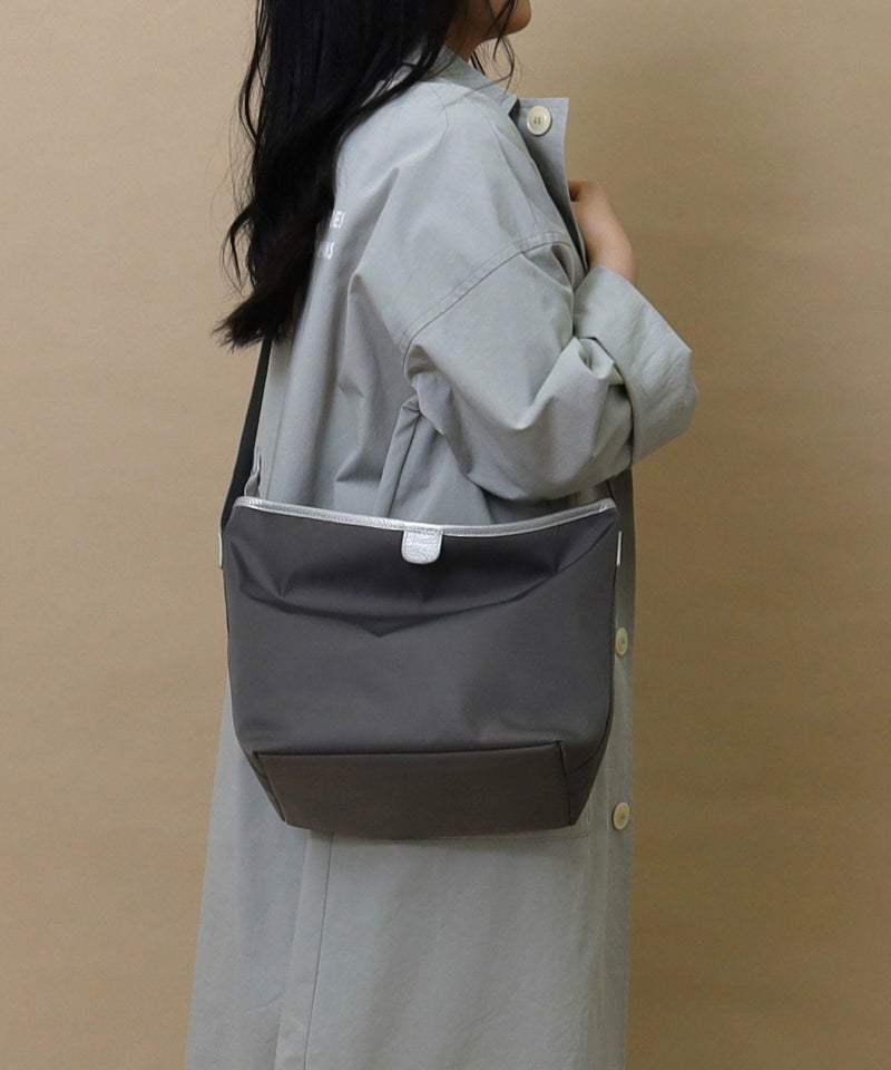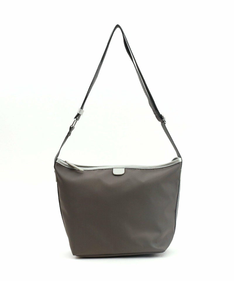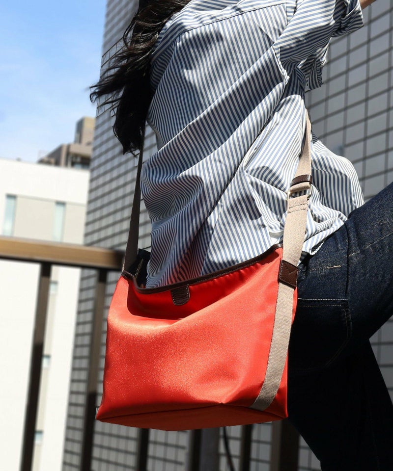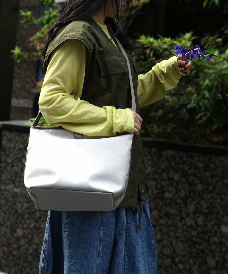撥水ポリ生地xレザーショルダーバッグ 本革FG