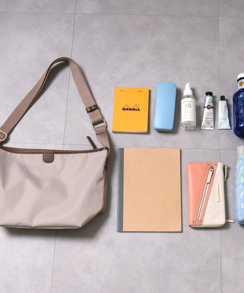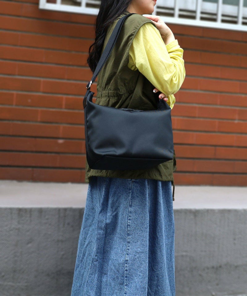 本体開閉はファスナー仕様なので、お荷物も安心。軽量なのでショルダーで斜め掛けもしやすいです。