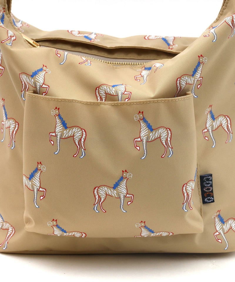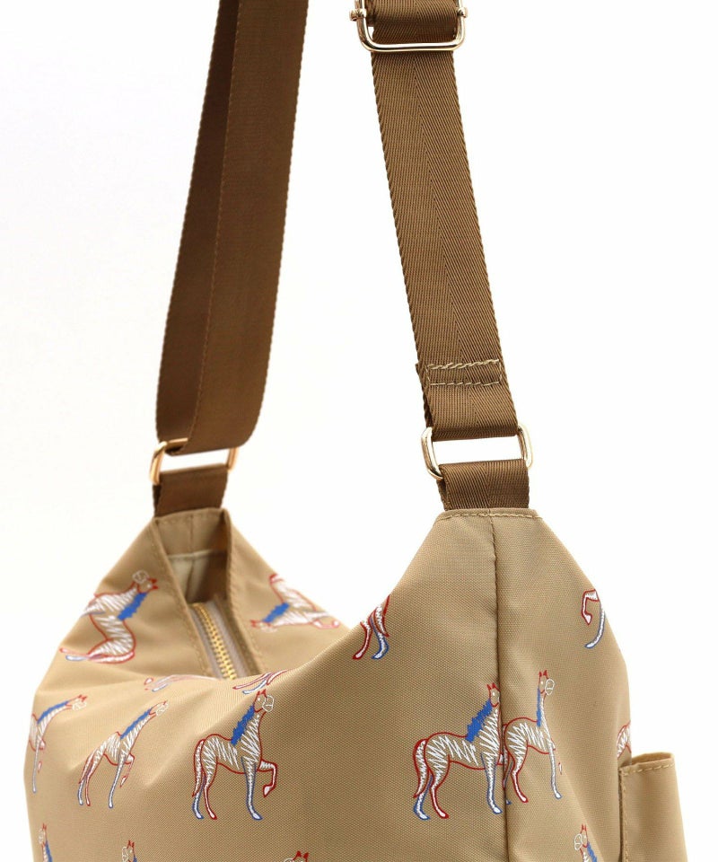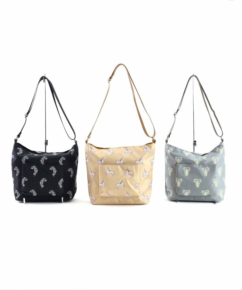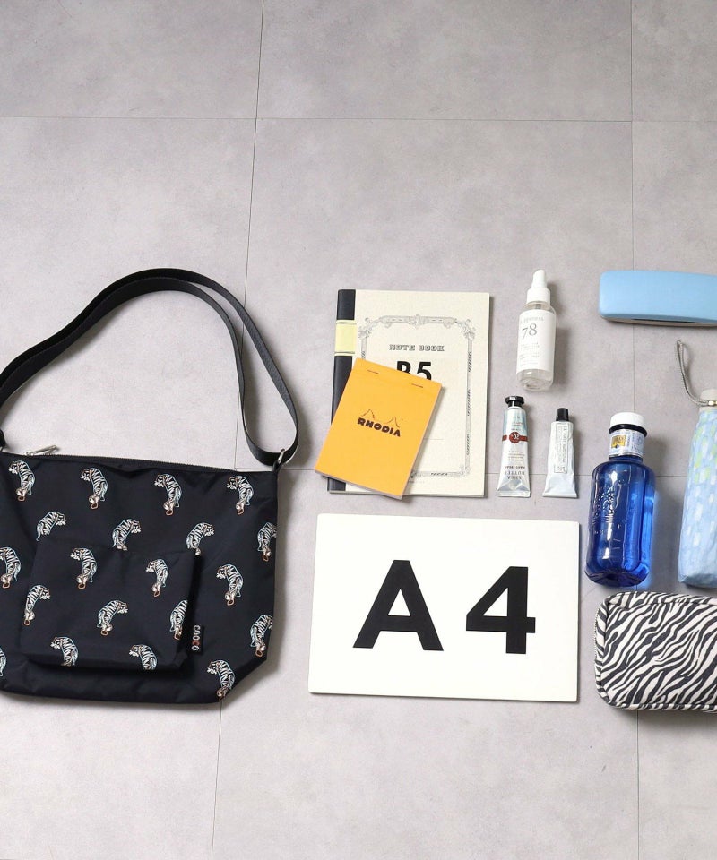 本体開閉はファスナー仕様なので、お荷物も安心。軽量なのでショルダーで斜め掛けもしやすいです。