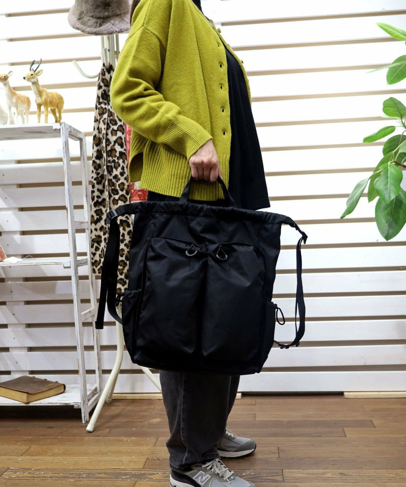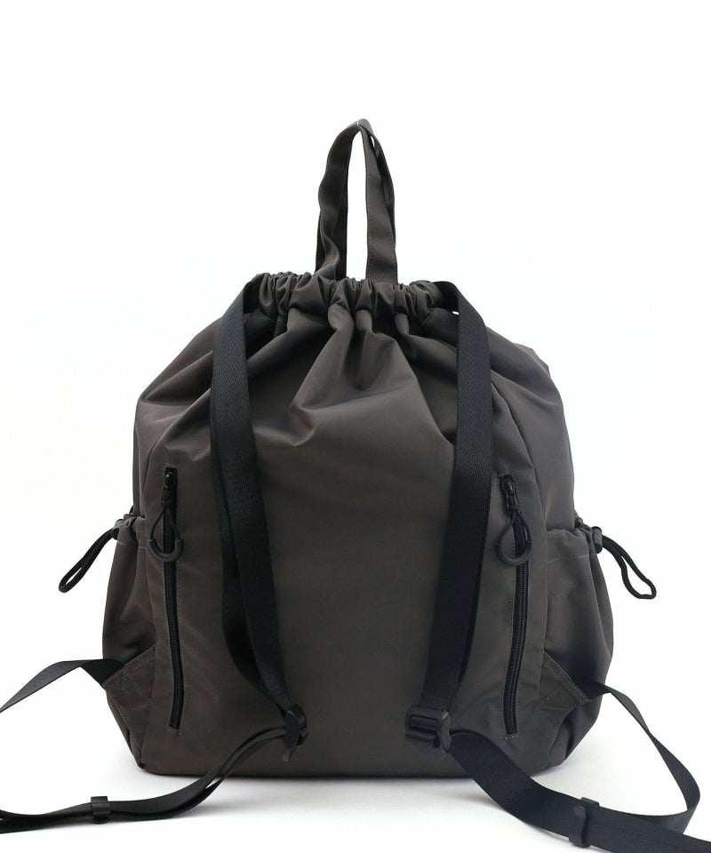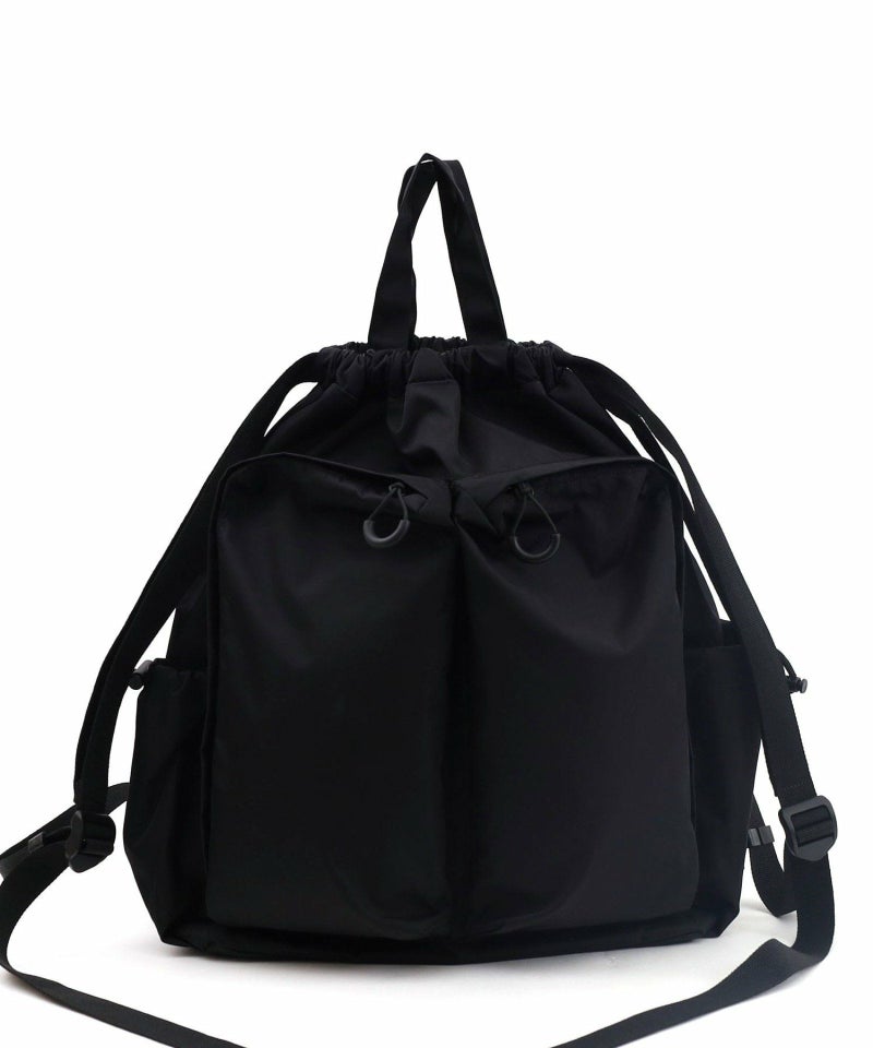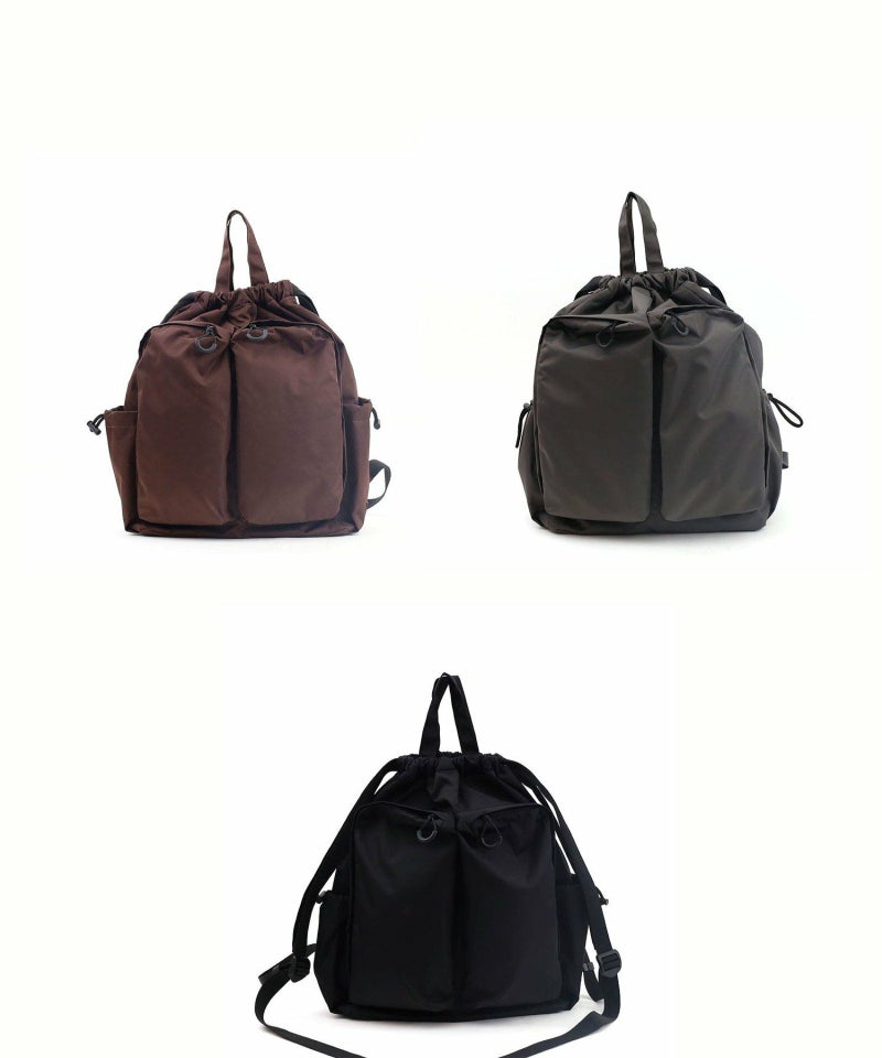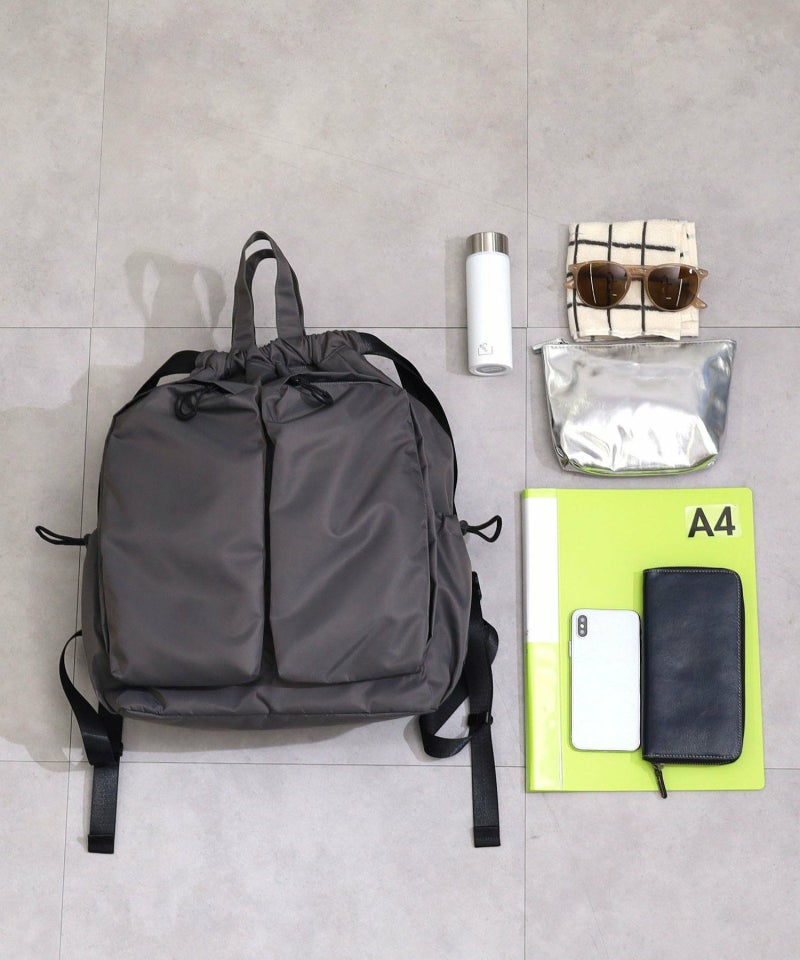 大きな前面ポケットがポイントのドローストリングリュックサックです。