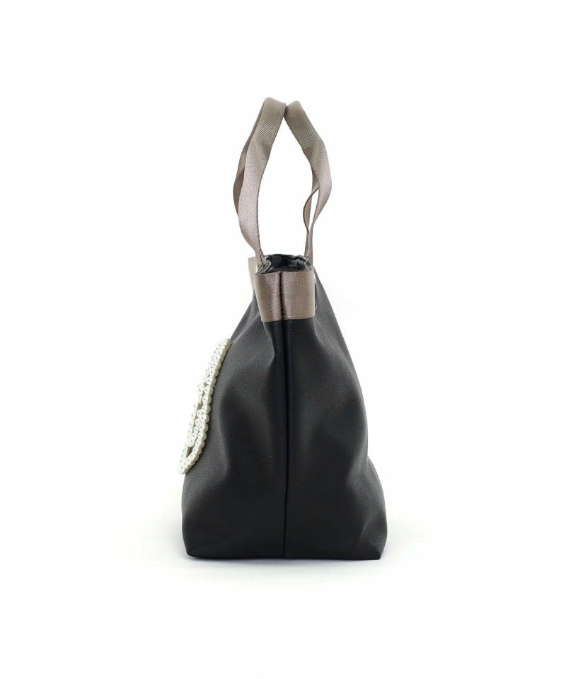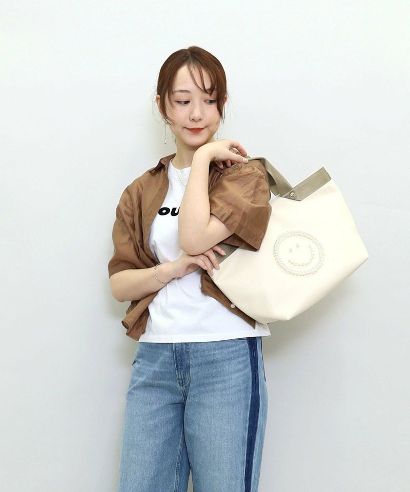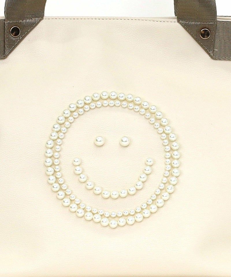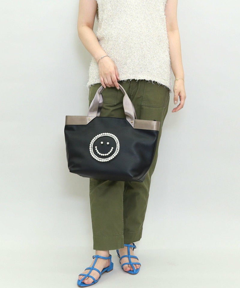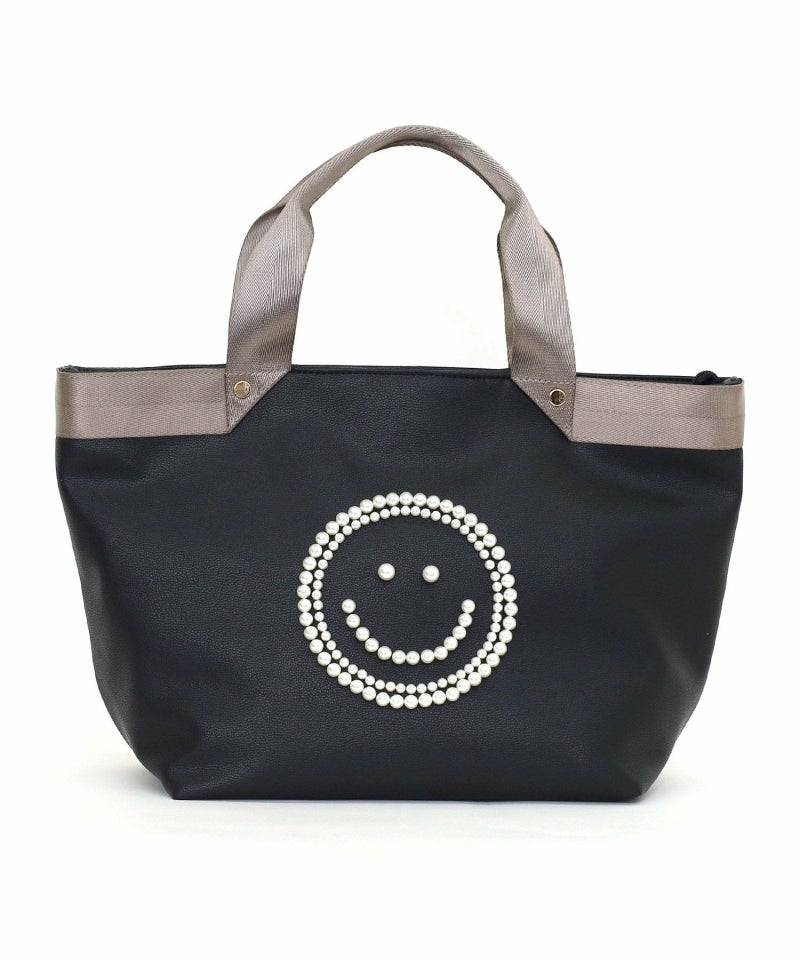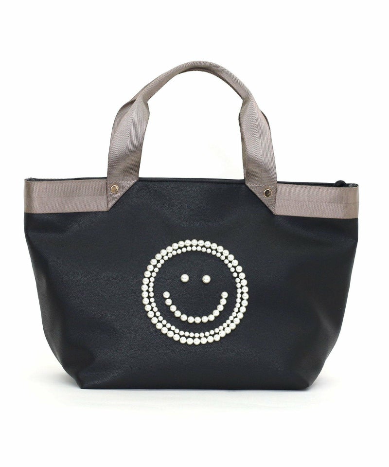 パール調のビーズでSMILEYフェイスを施したデザインがポイントのトートバッグ