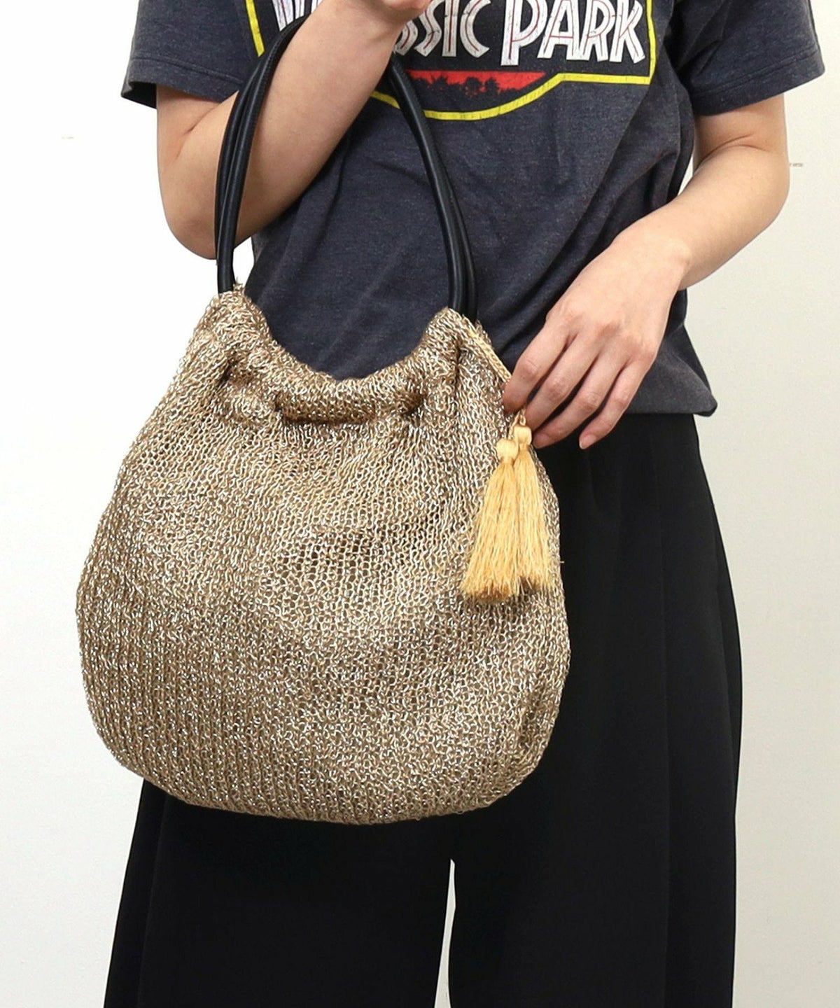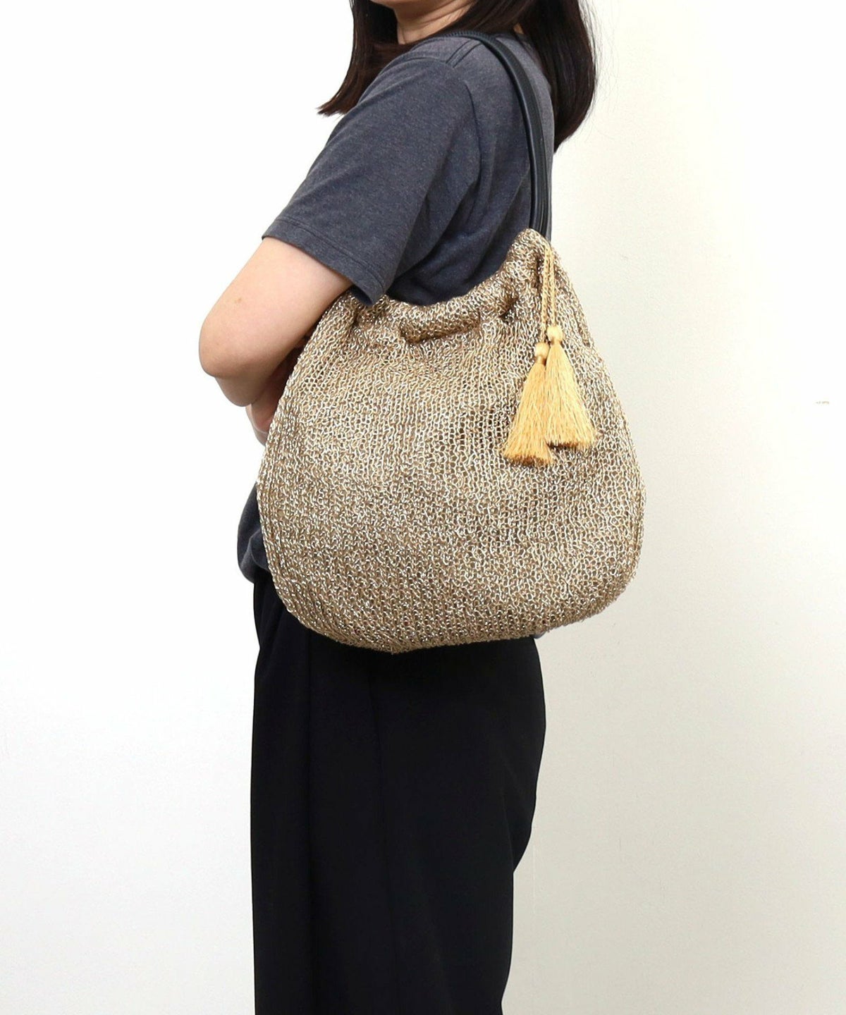 メタリック柄編みトートバッグ 定番FG
