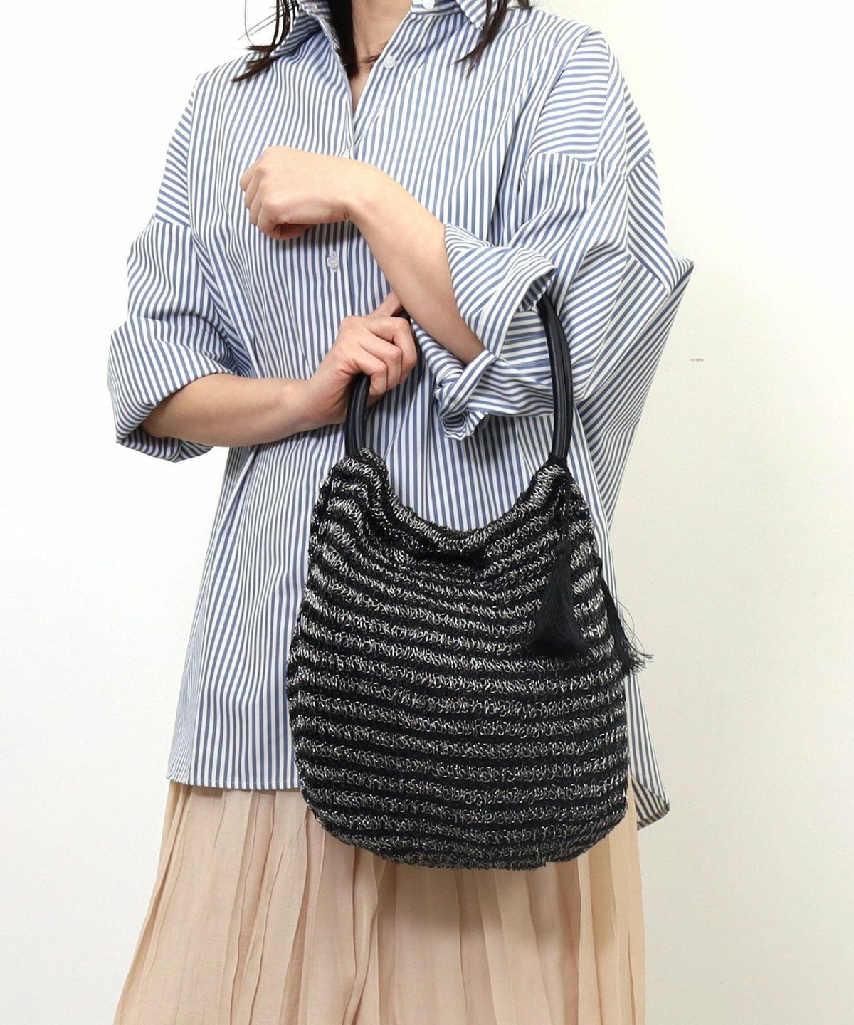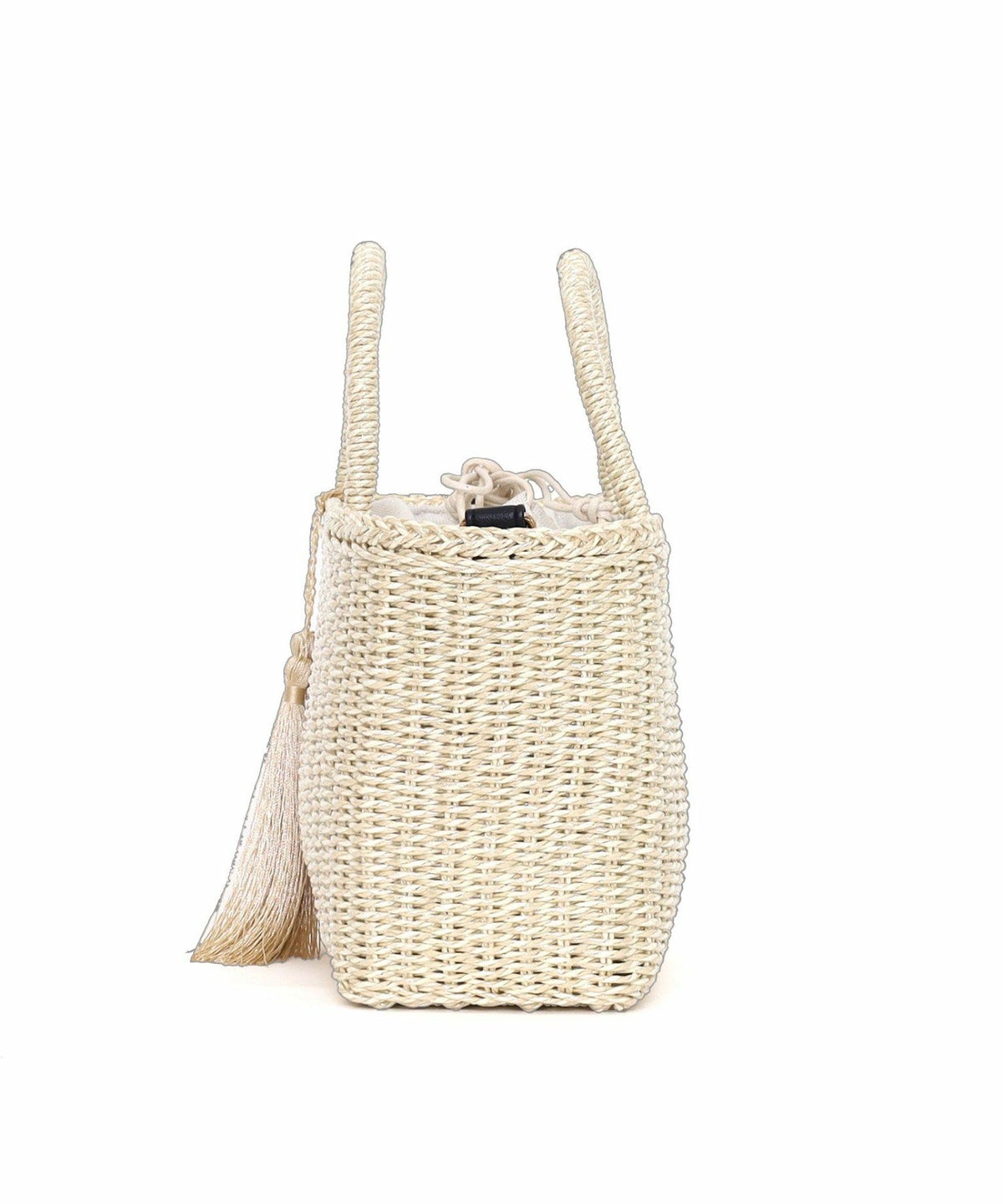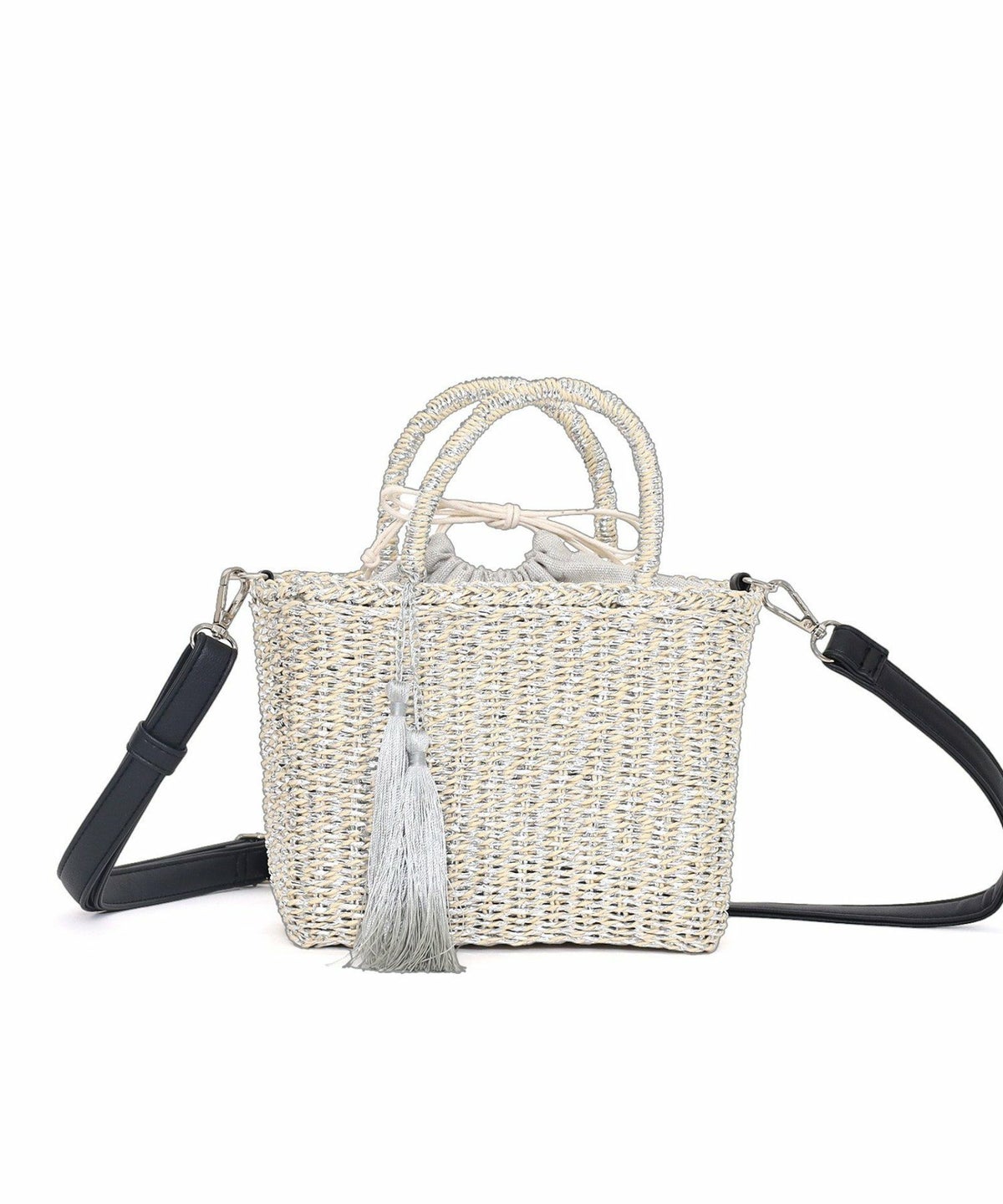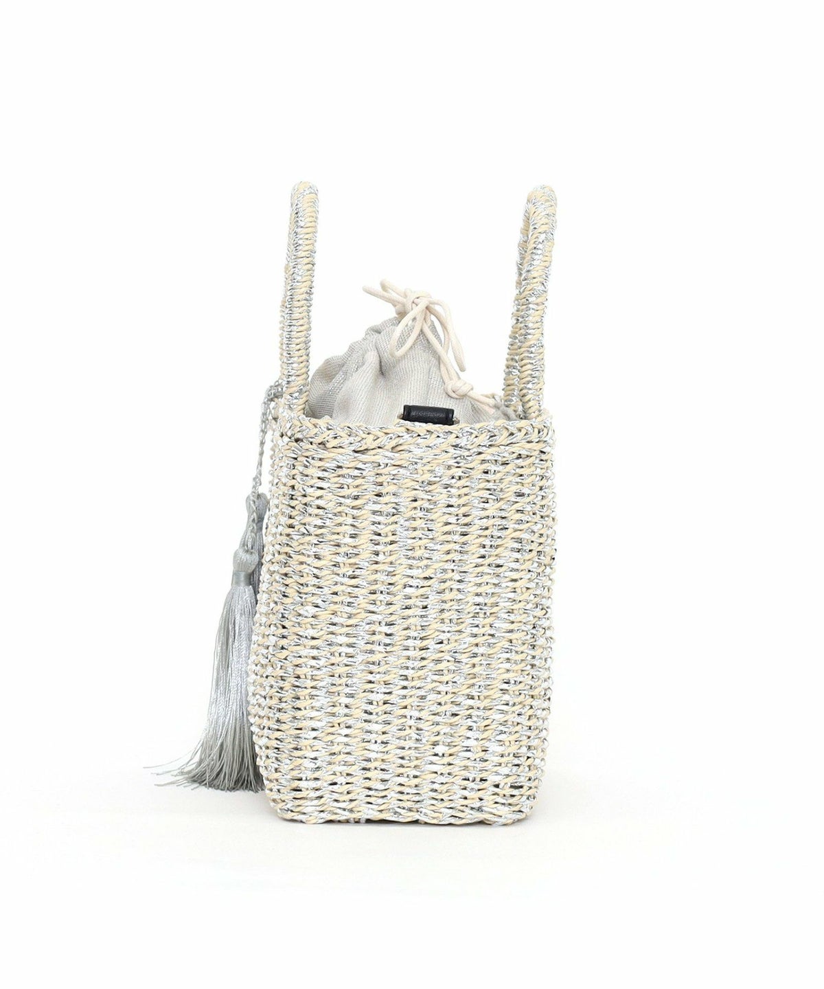 【OUTLET SALE】 タッセル付ラメボーダーペーパーカゴバッグ