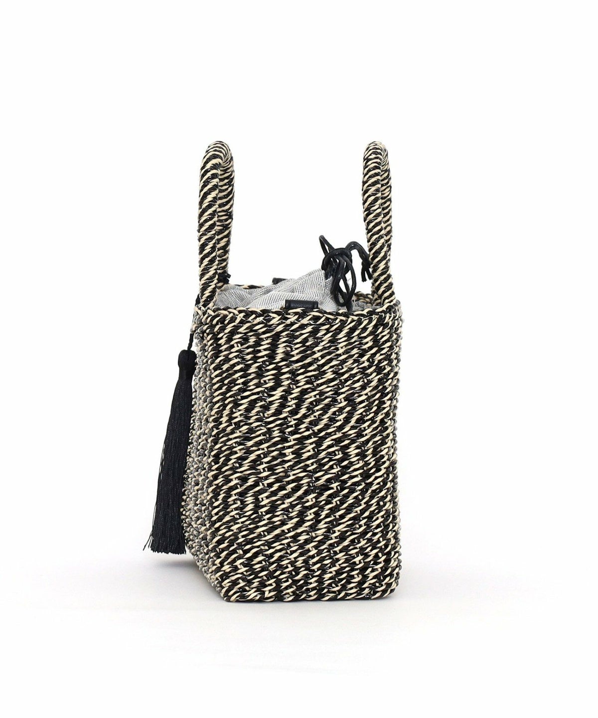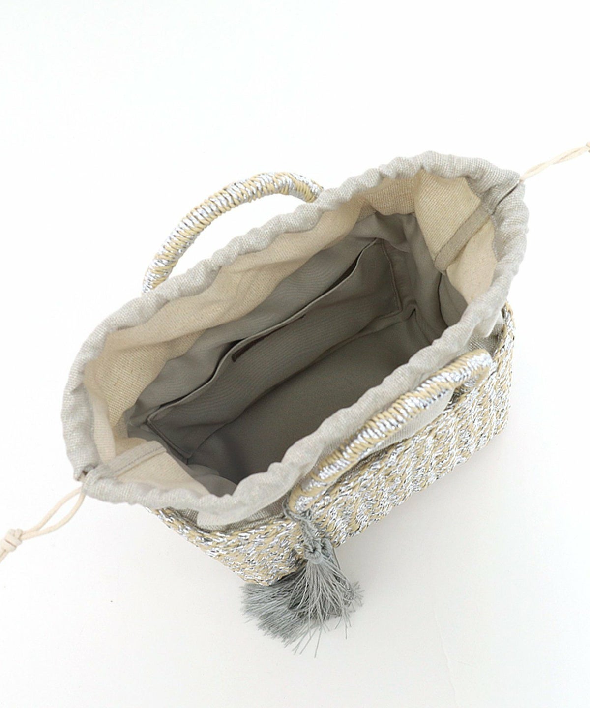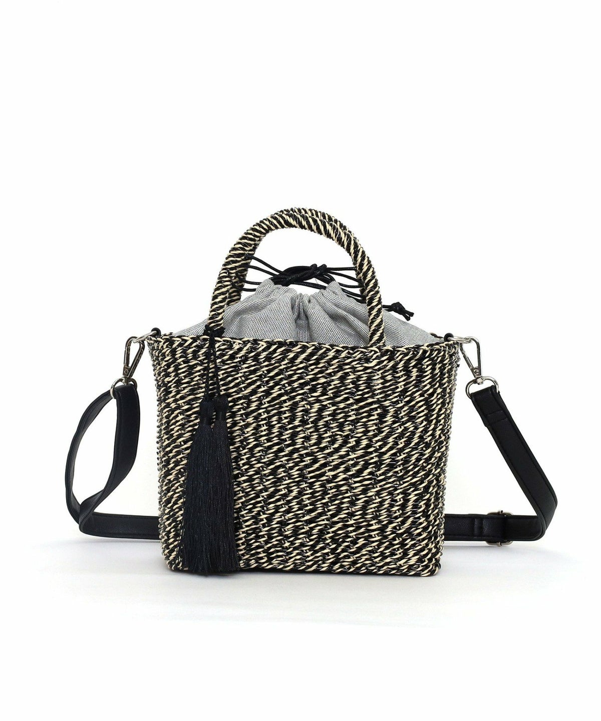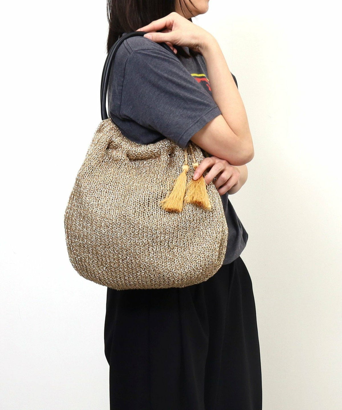 【OUTLET SALE】 タッセル付ラメボーダーペーパーカゴバッグ
