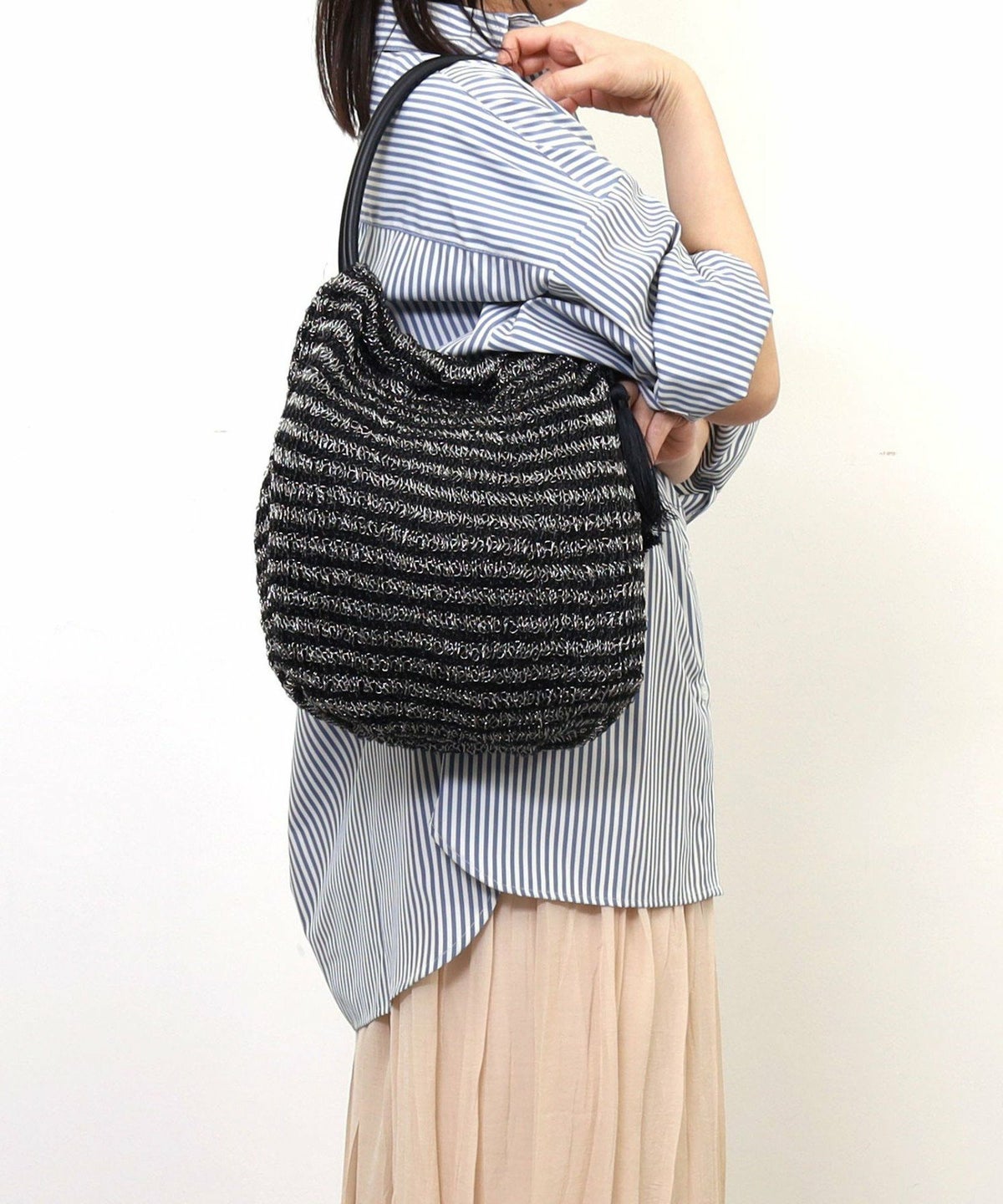 【OUTLET SALE】 ペーパー透かし編ワンショルダーカゴバッグ/A4対応