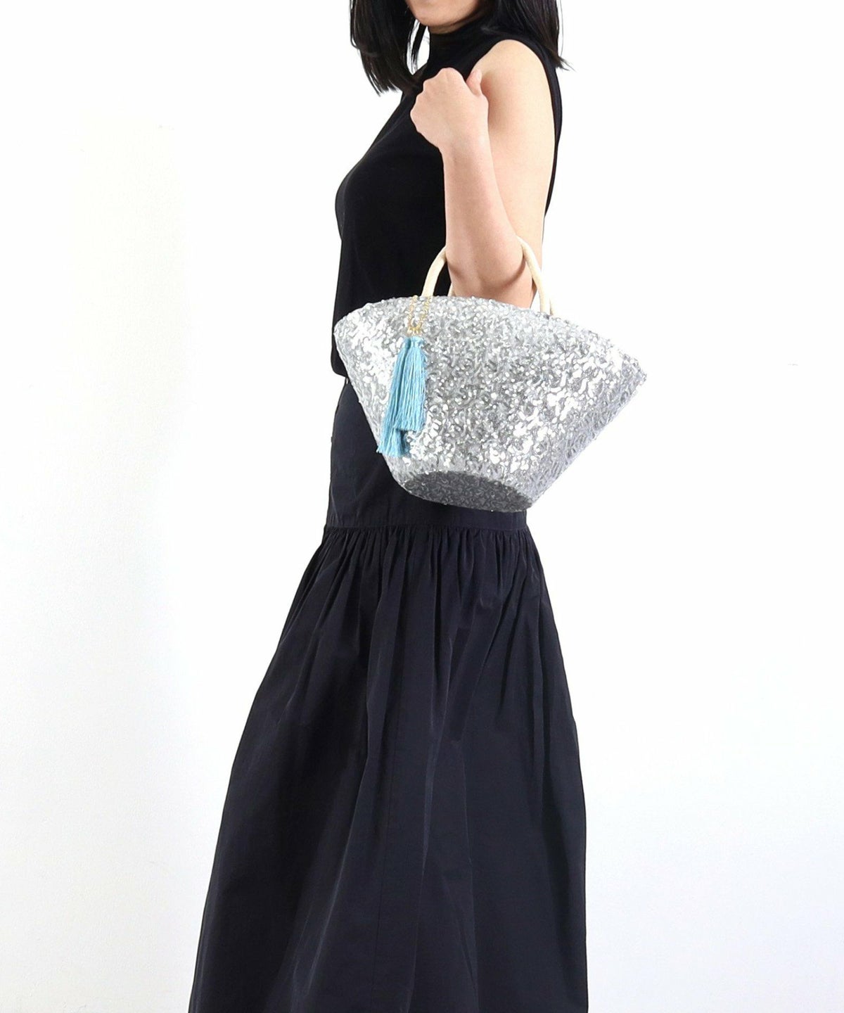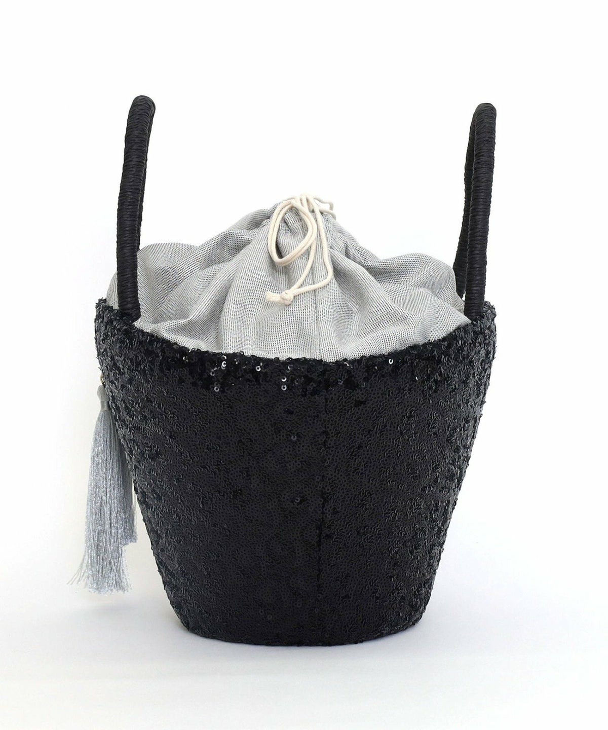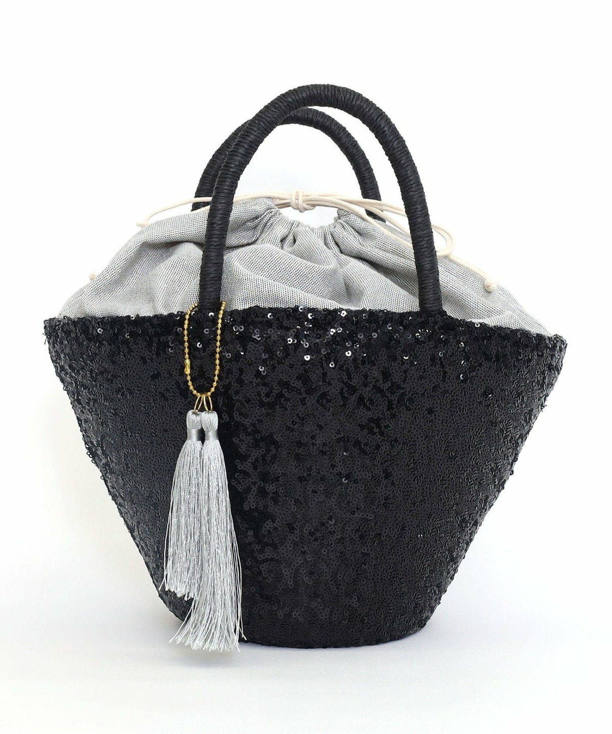 【OUTLET SALE】 タッセル付スパンコールカゴバッグ