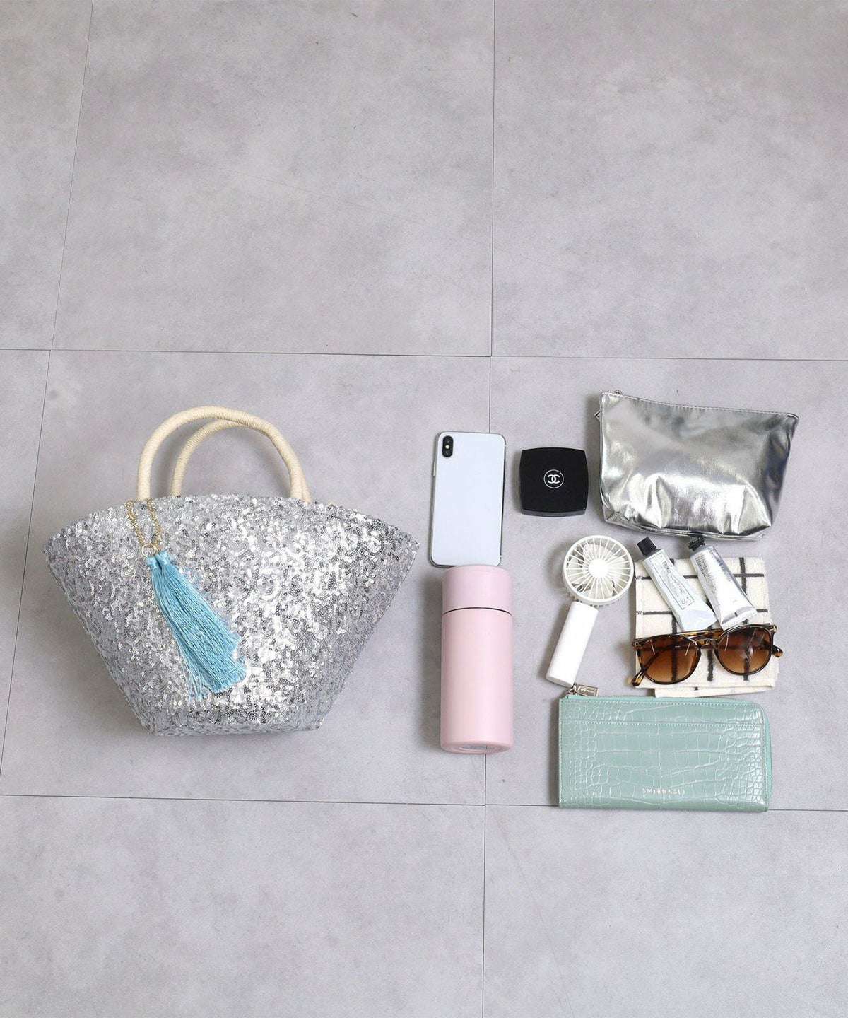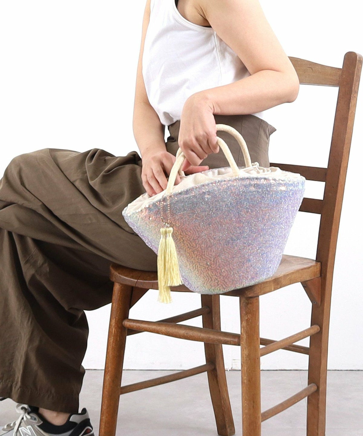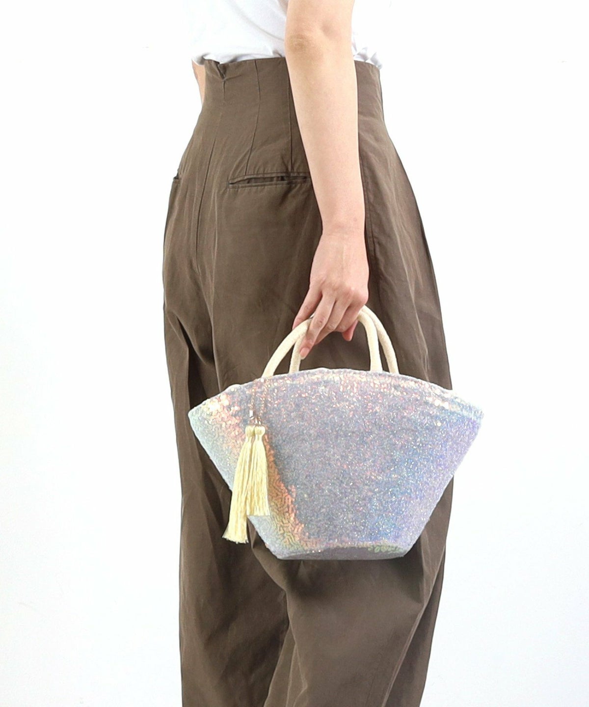 【OUTLET SALE】 タッセル付スパンコールカゴバッグ