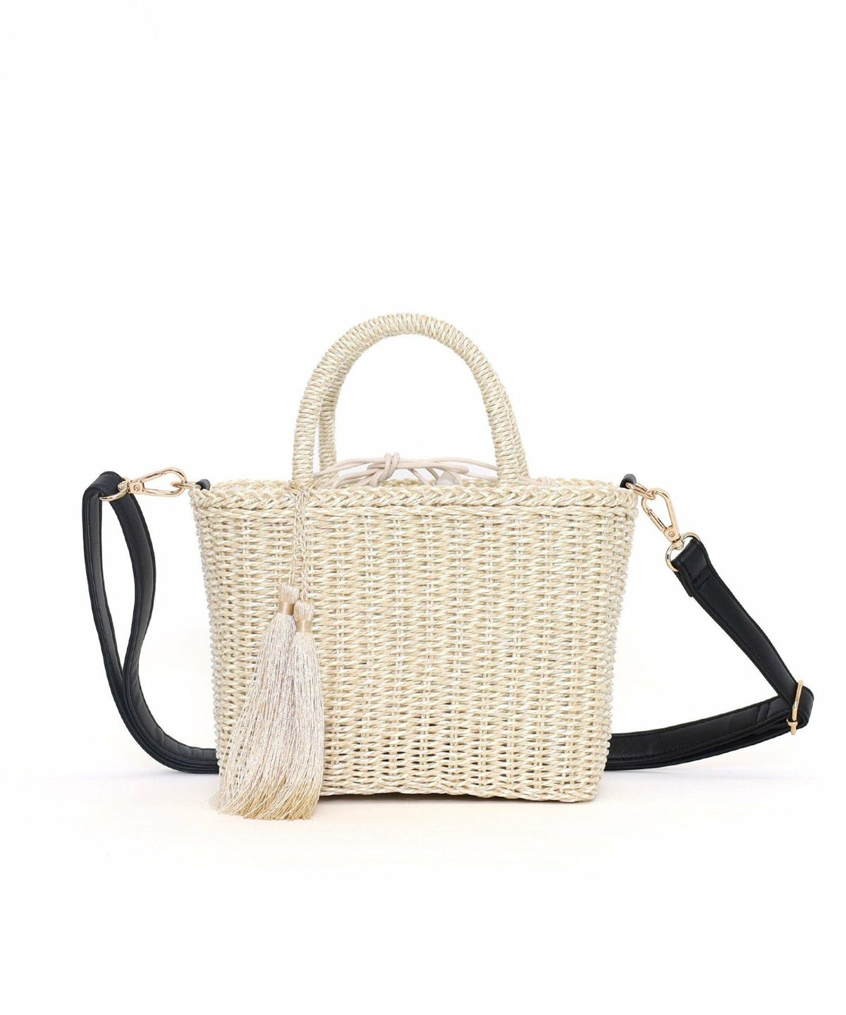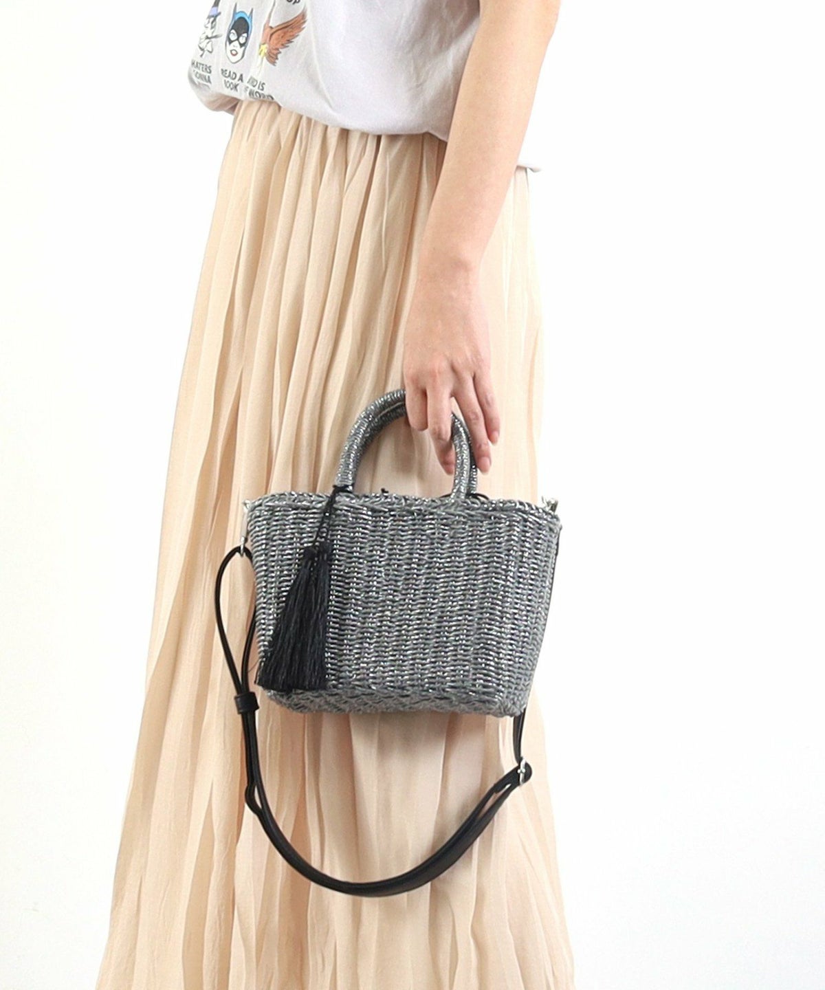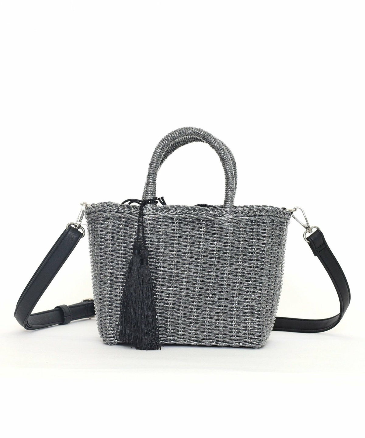【OUTLET SALE】 タッセル付メタリックフィルムミニ2WAYカゴバッグ