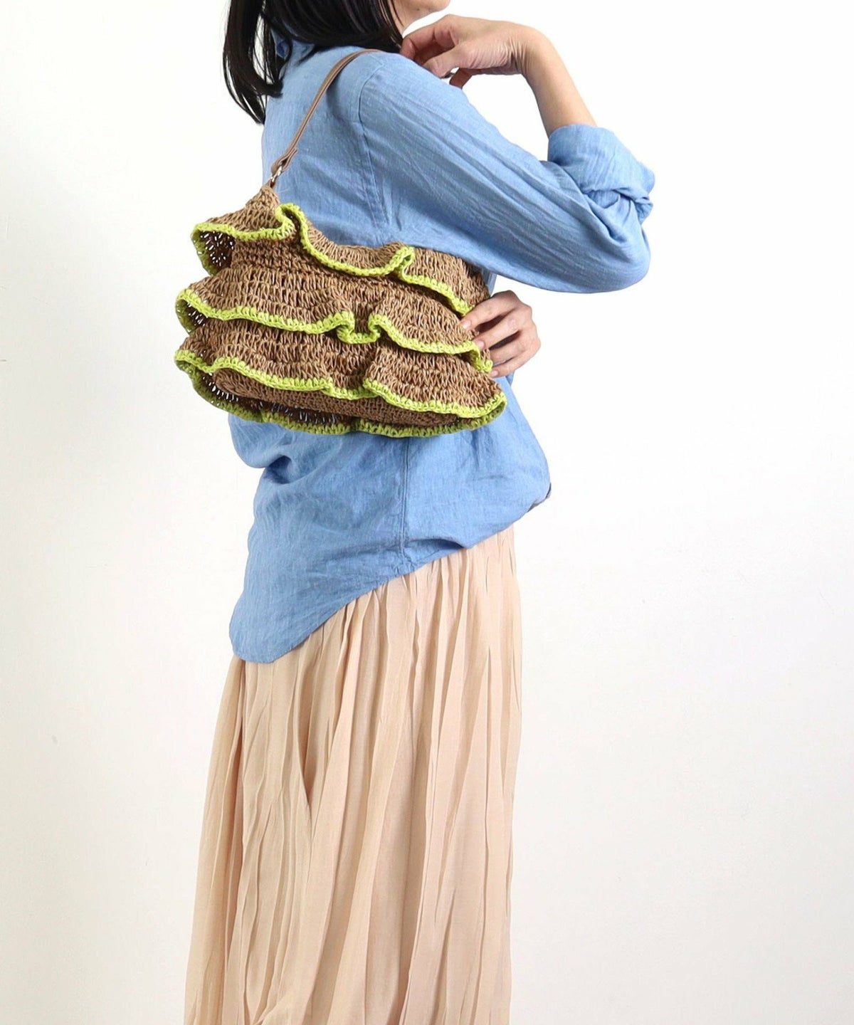 【OUTLET SALE】 ペーパートリプルフリル2WAYカゴバッグ