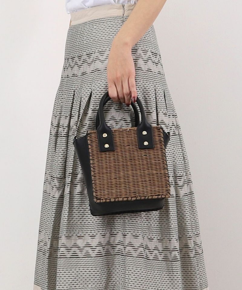 編みの細かい天然素材のラタンとPUのコンビ2WAYショルダーカゴバッグ。