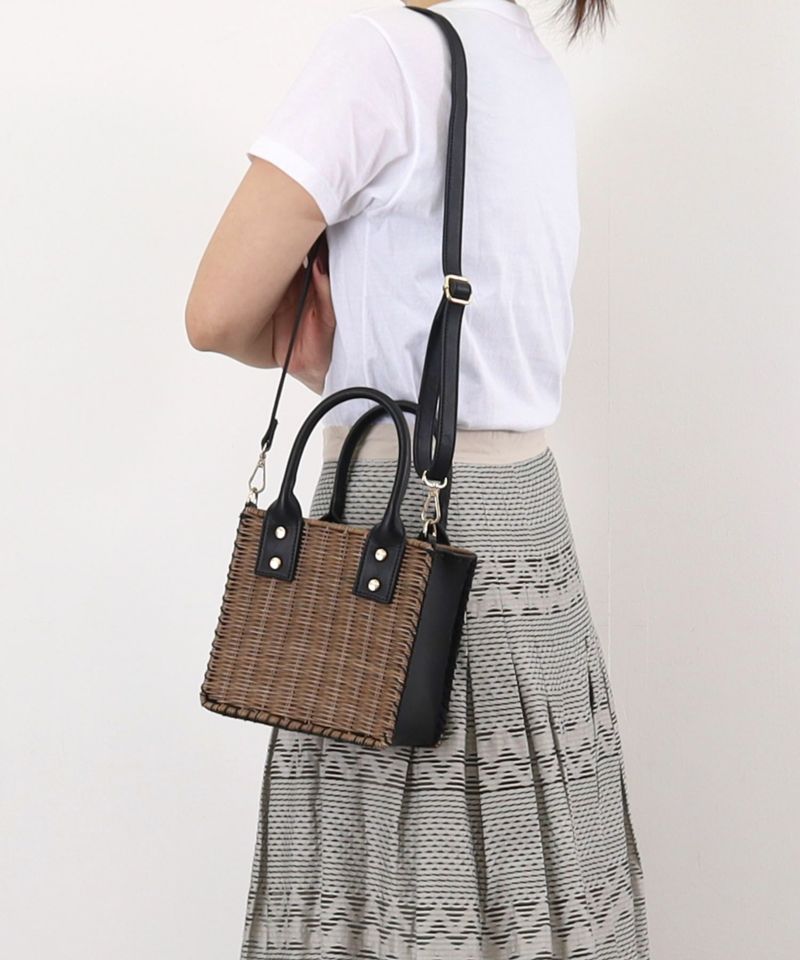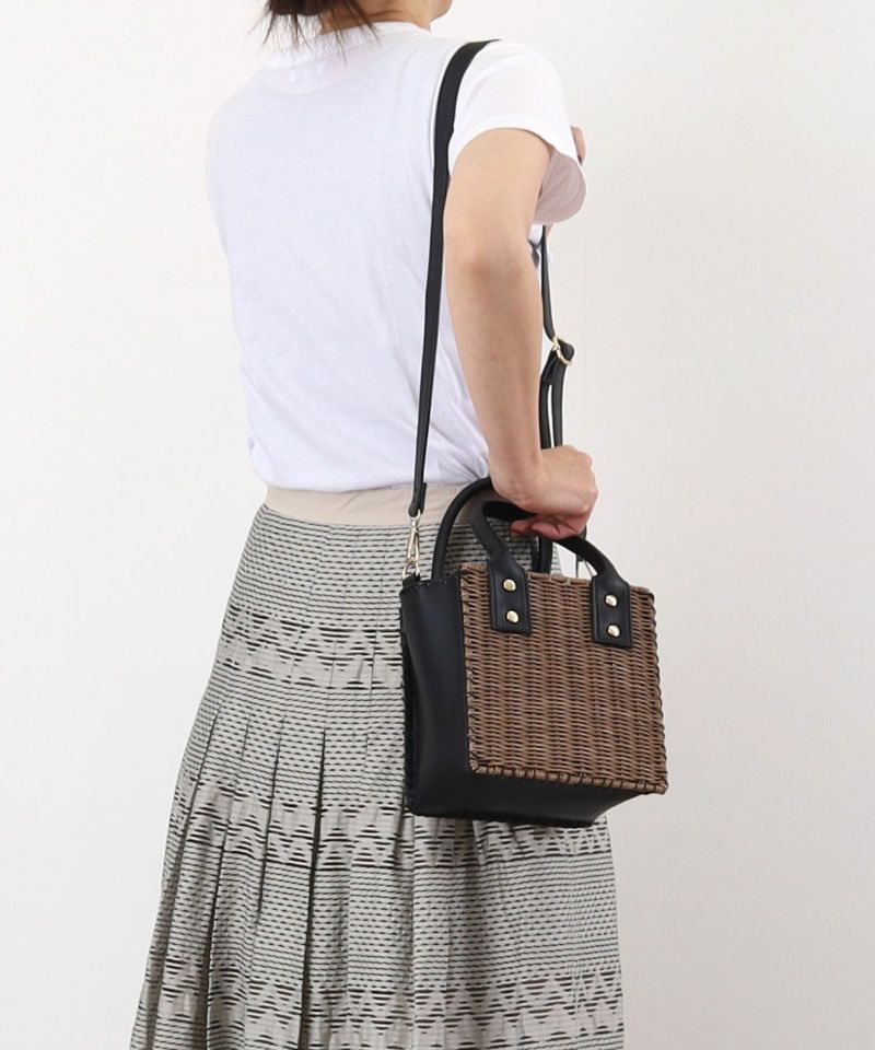 【春夏物50%OFF】クーコ COOCO フェイクレザーxラタンスクエア2WAYカゴバッグ