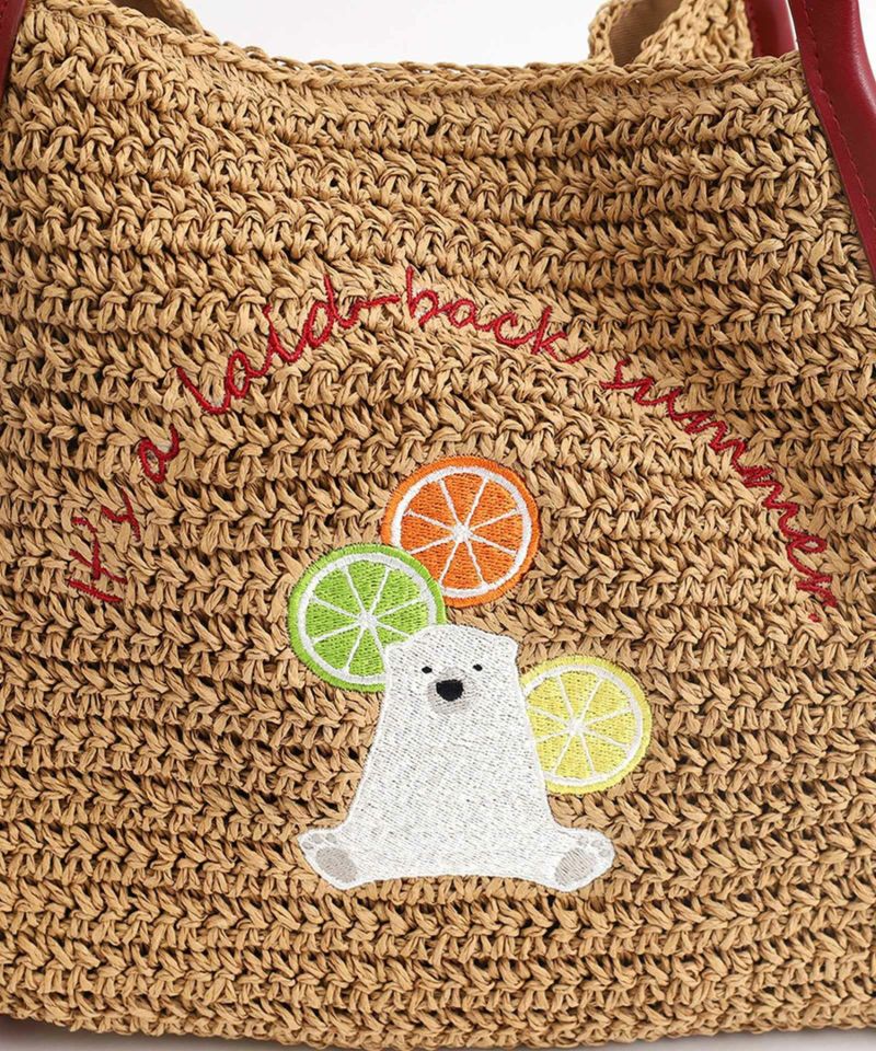 ナチュラルなペーパー素材に遊びごろのある動物の刺繍をしたトートバッグ