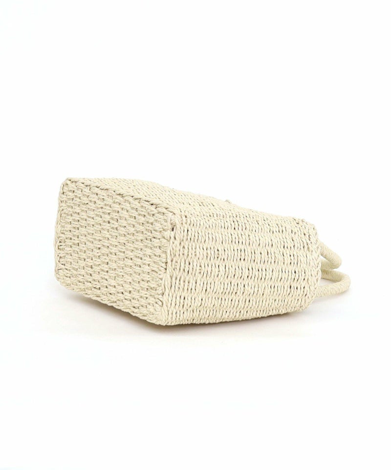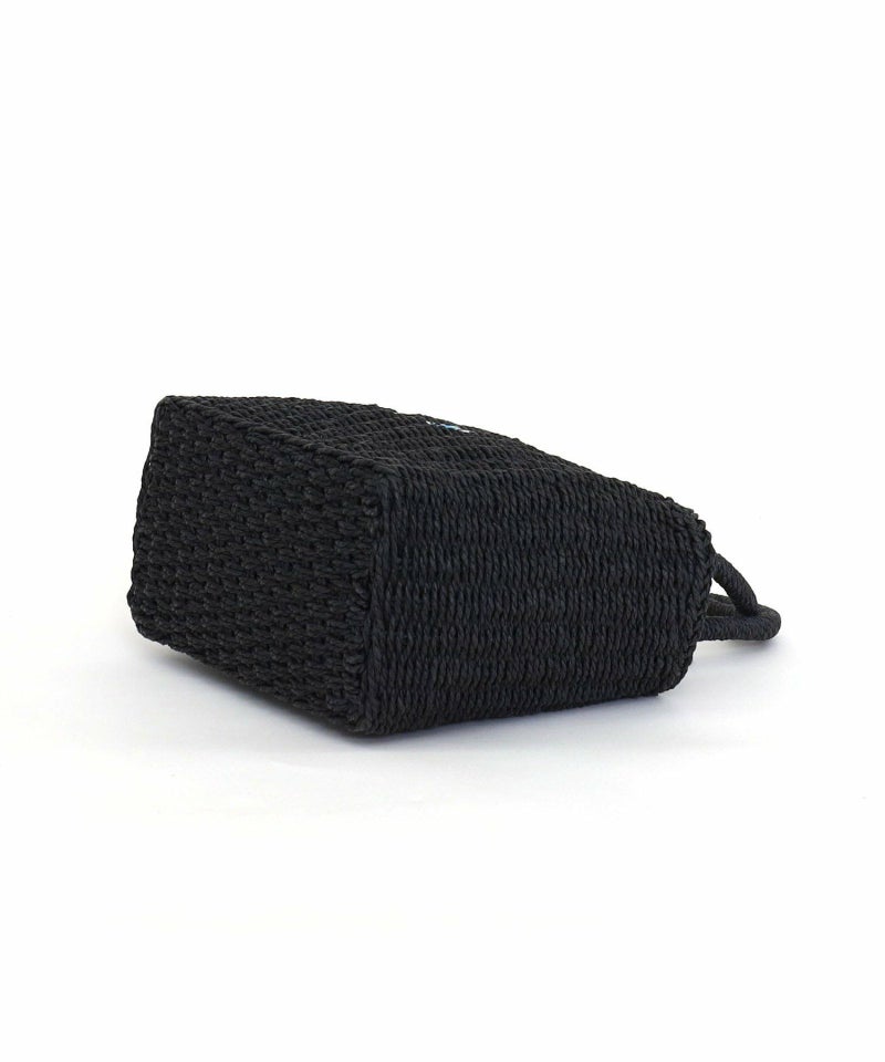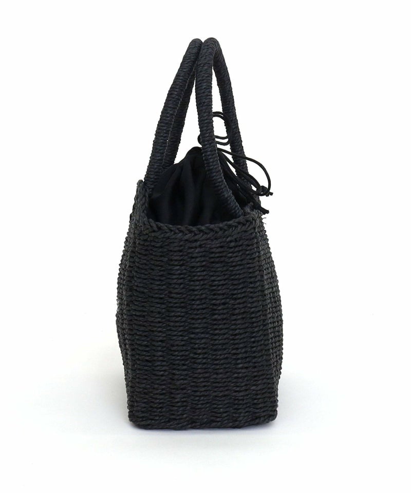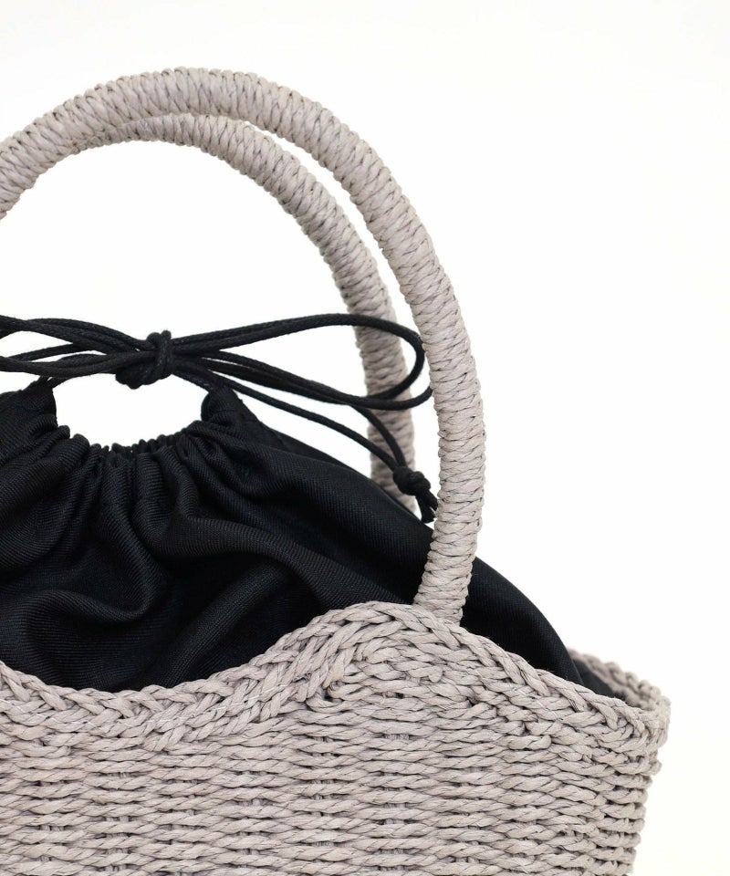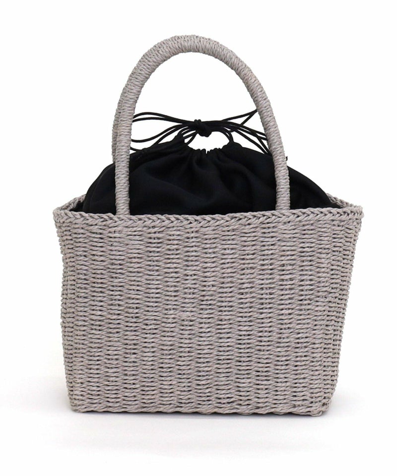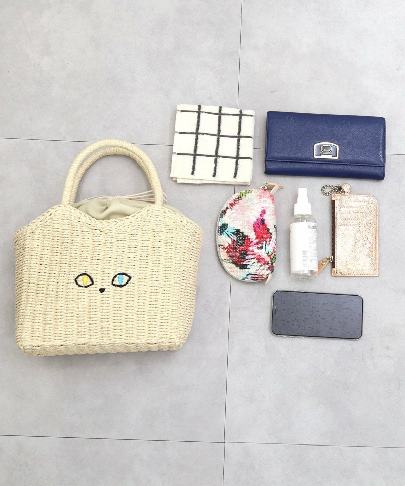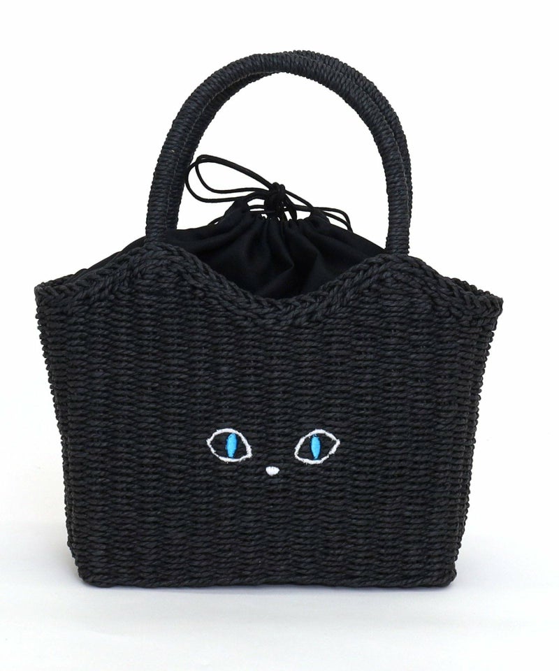 ペーパーのカゴバッグに猫の目を刺繍したバッグ