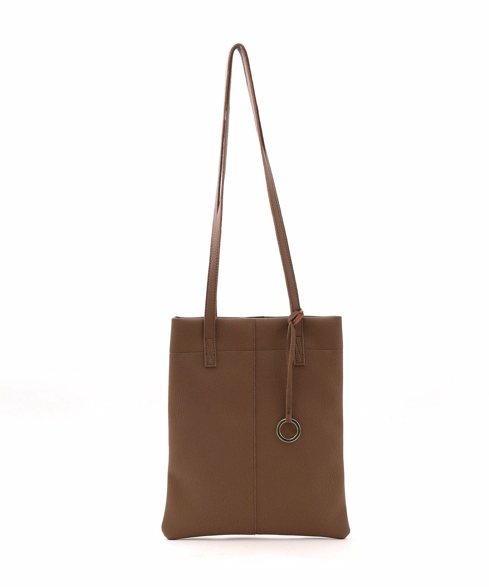 ソフトなフェイクレザーを使用したロングハンドルトート。