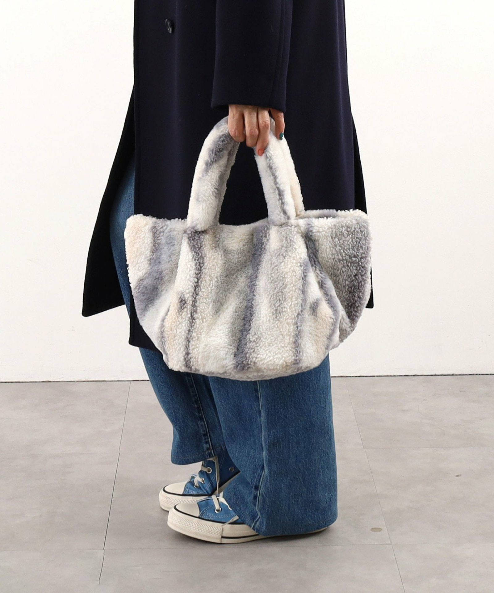 プードルの様な巻き毛のフェイクファーを使った温かみのあるトートバッグ。