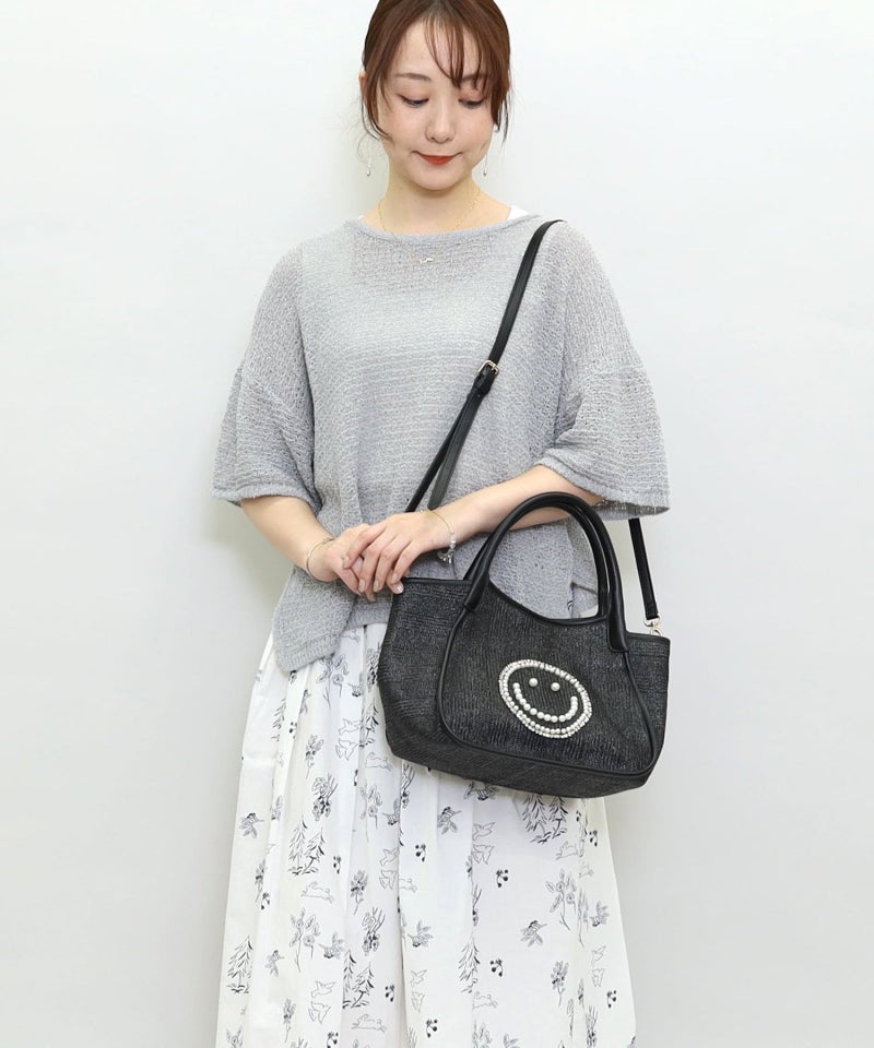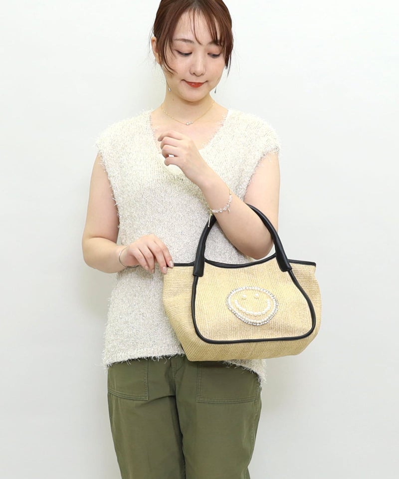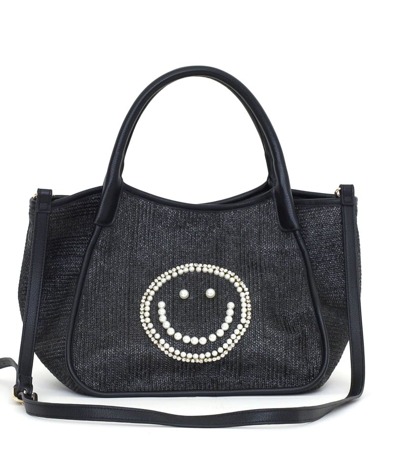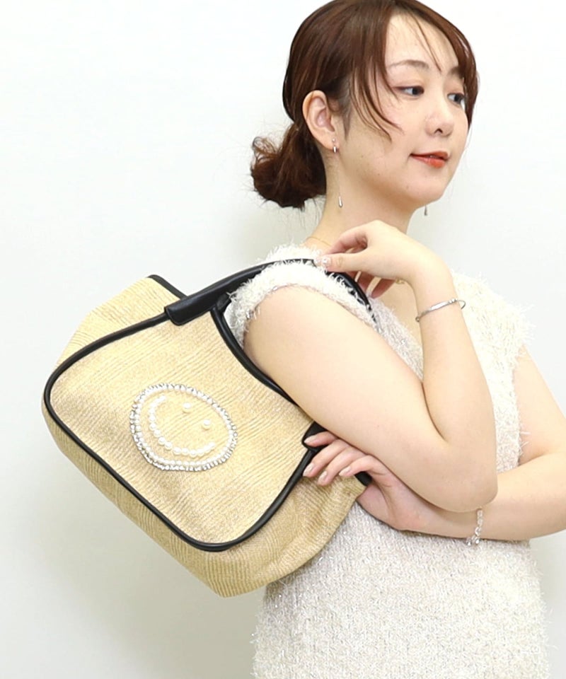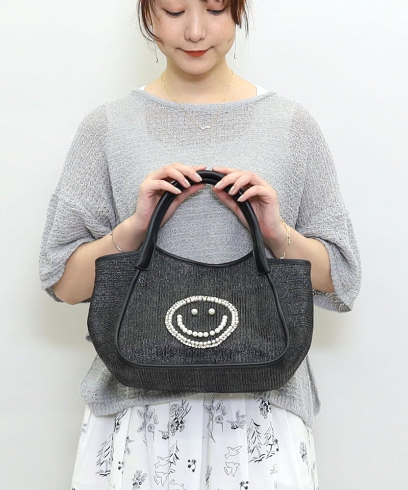きらりと光るビジューとパールのSMILEYが目を引くトートバッグ