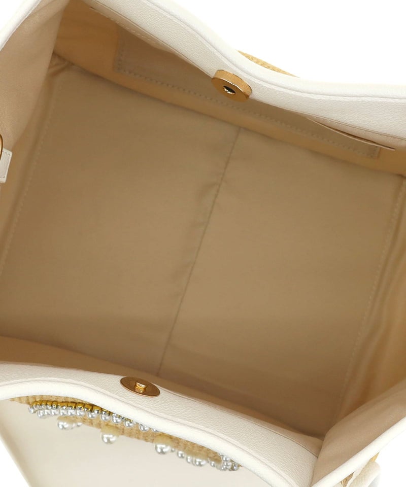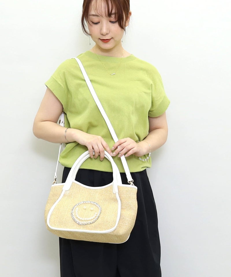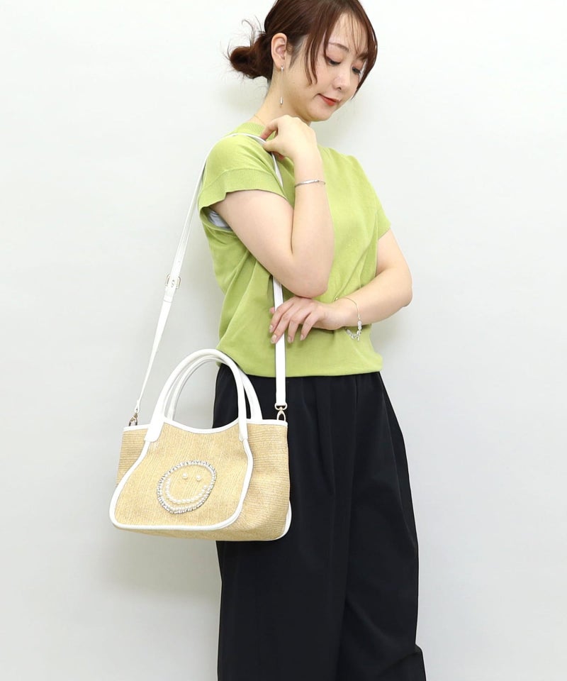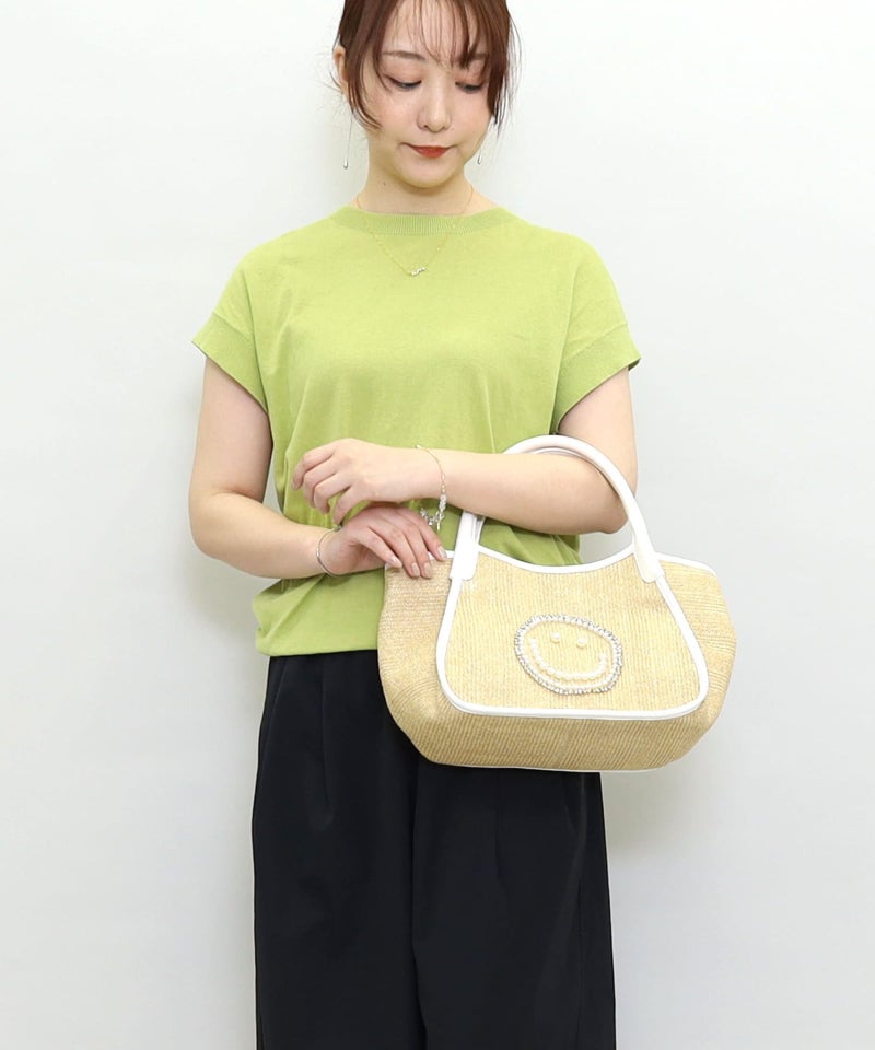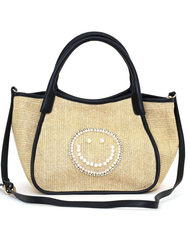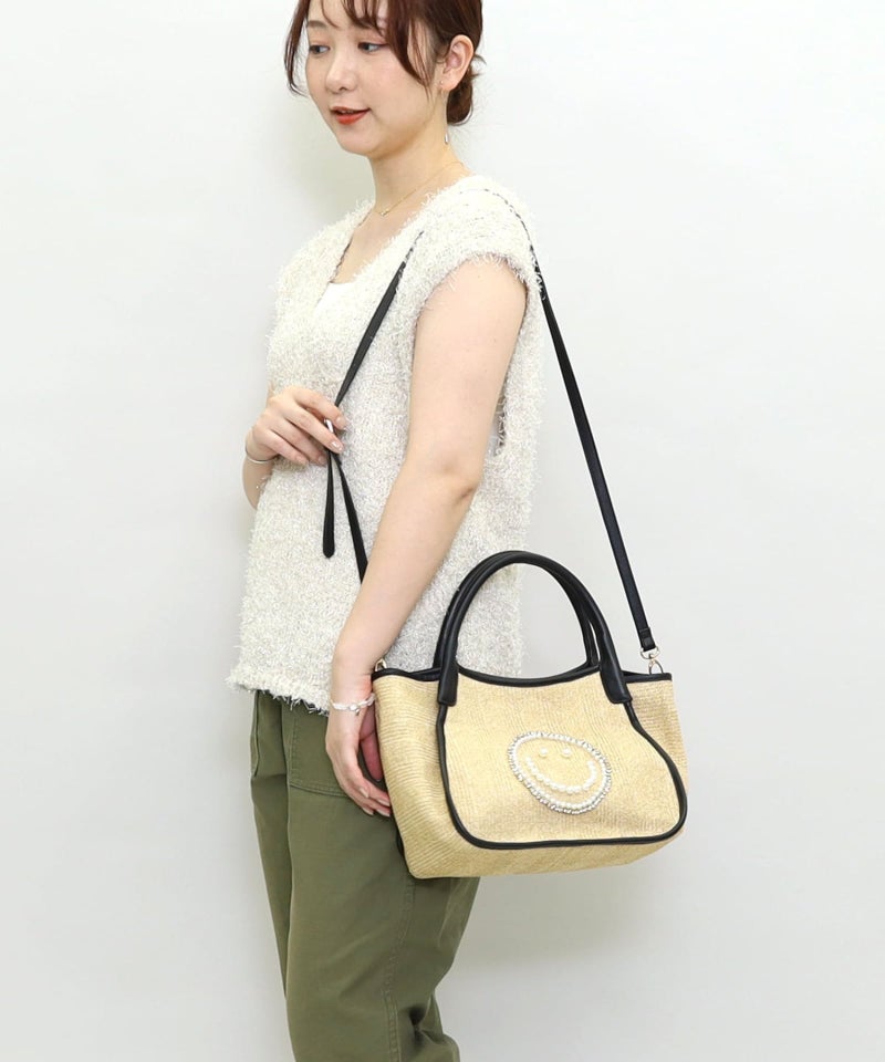きらりと光るビジューとパールのSMILEYが目を引くトートバッグ