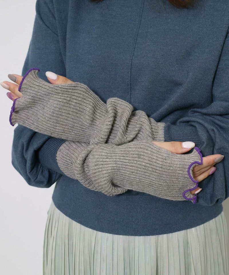 トレンドのアームカバー。防寒はもちろん普段のコーディネートにプラスするだけでグッとお洒落度が上がります。防寒対策もばっちりなアイテム。ルーズにくしゅっとさせてボリューム感を出しても可愛いです。配色メローもポイント。