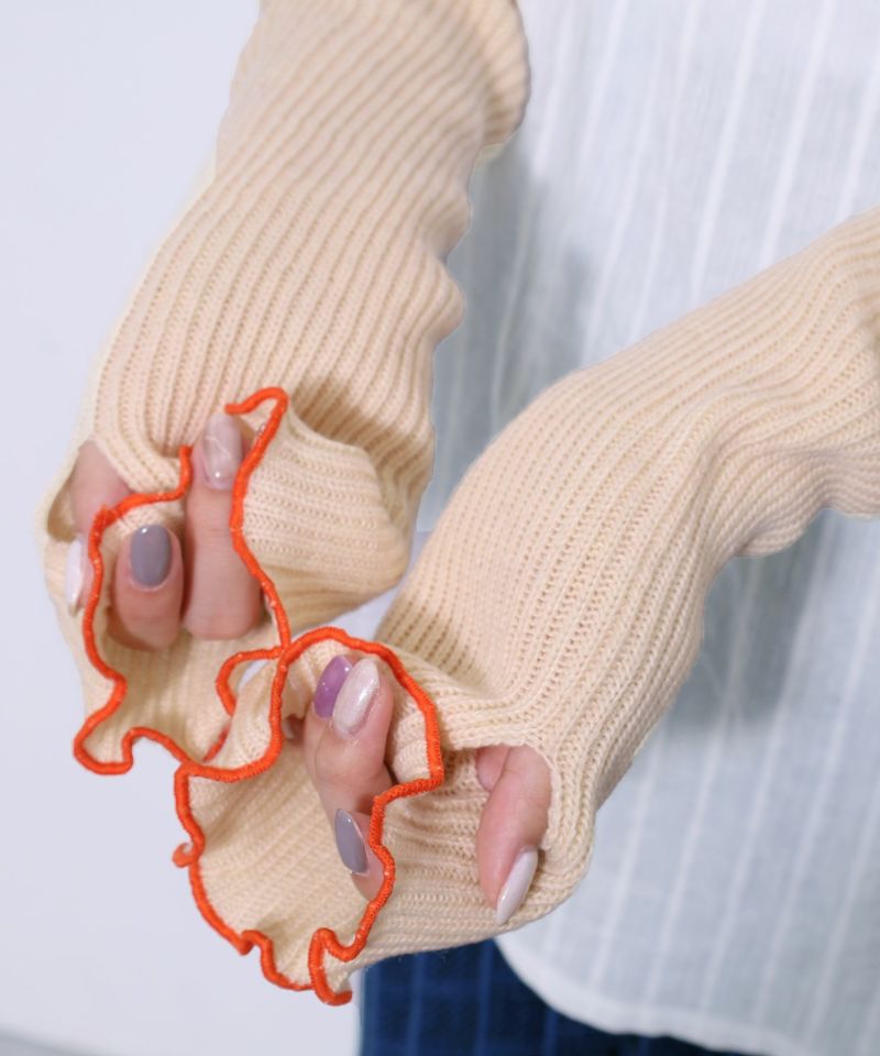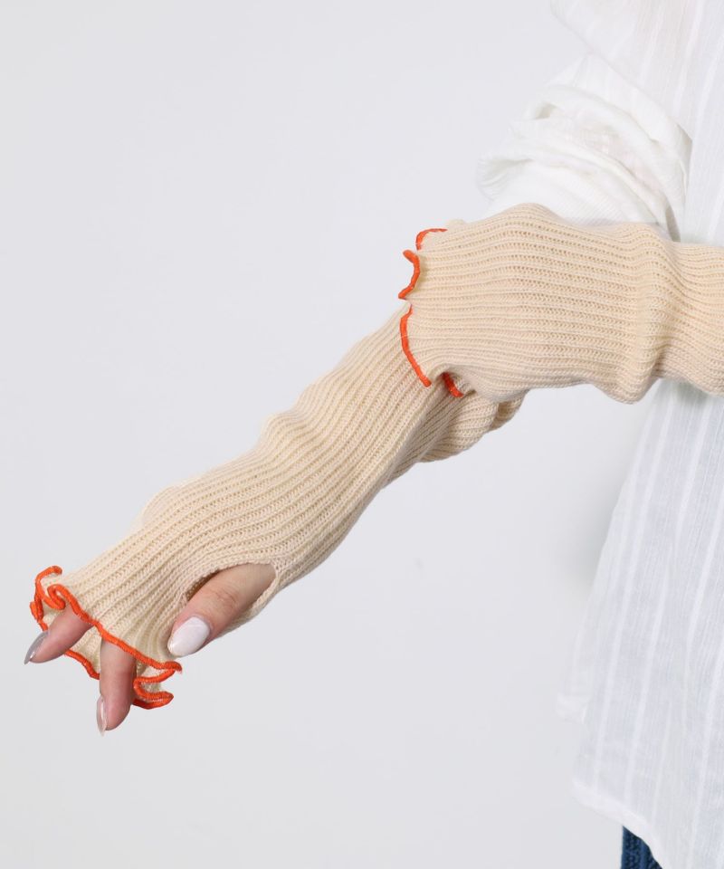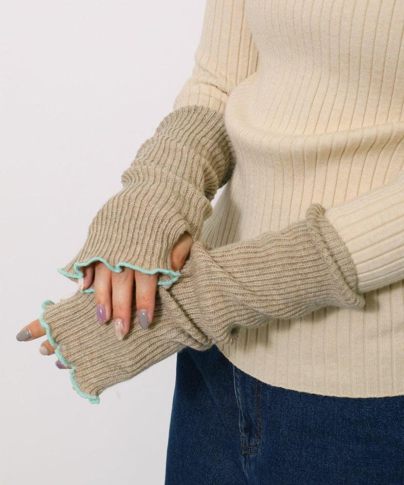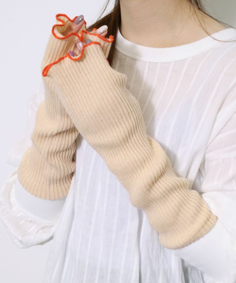 トレンドのアームカバー。防寒はもちろん普段のコーディネートにプラスするだけでグッとお洒落度が上がります。防寒対策もばっちりなアイテム。ルーズにくしゅっとさせてボリューム感を出しても可愛いです。配色メローもポイント。