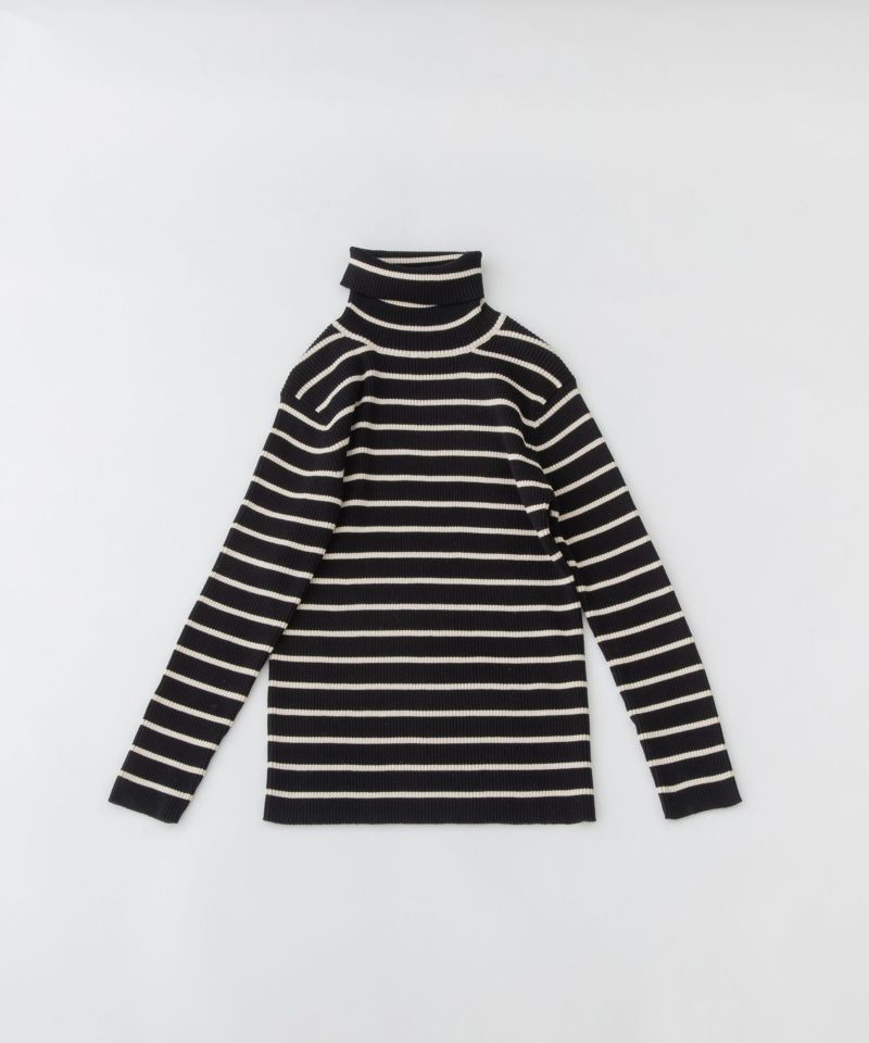 ロングシーズン着られるコットンで編み立てたボーダーリブニット