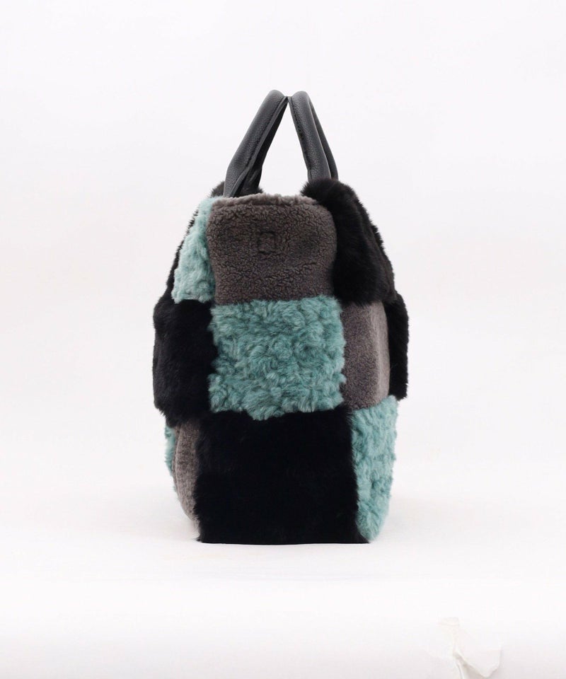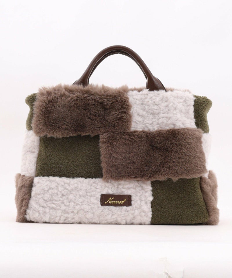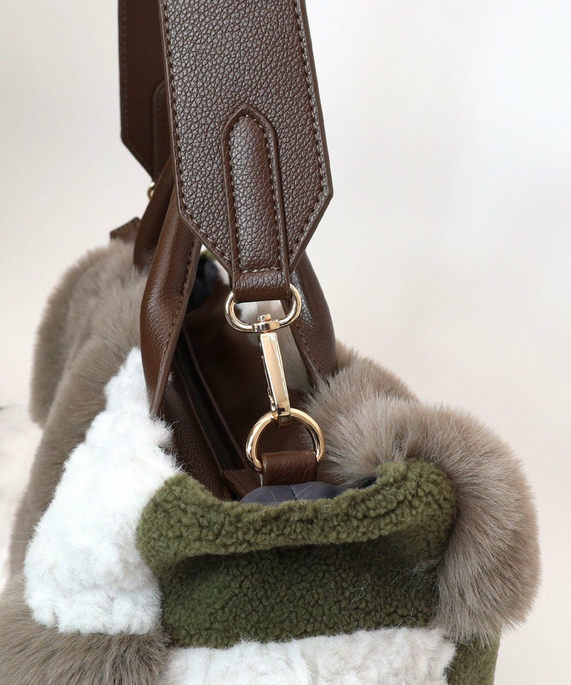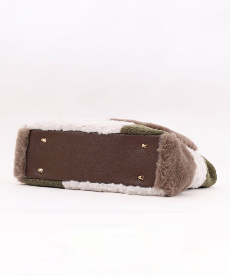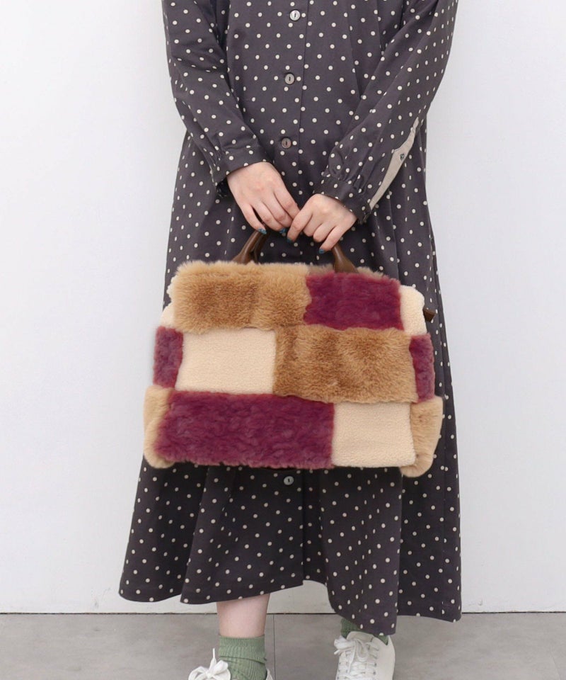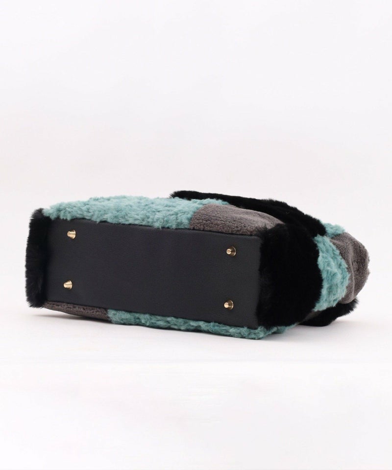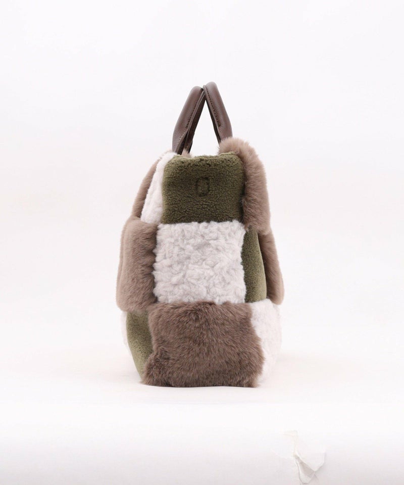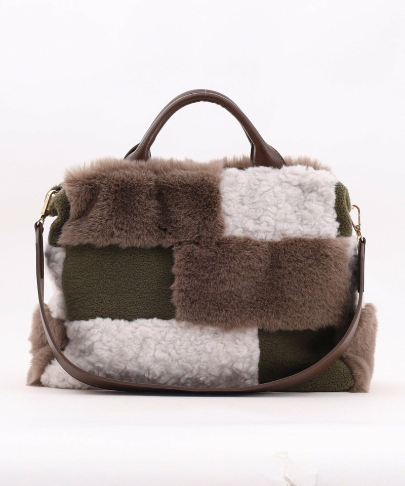 3種類のファーをパッチワークした大人っぽいデザインのトートバッグ。