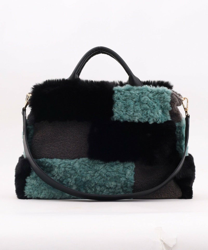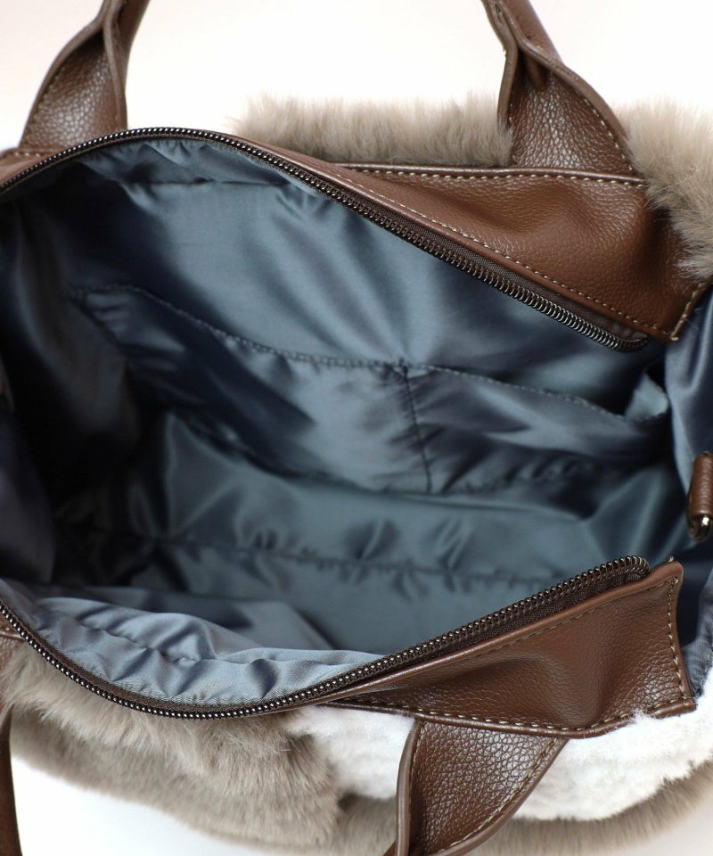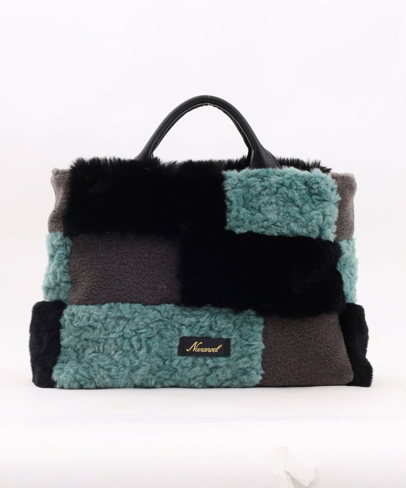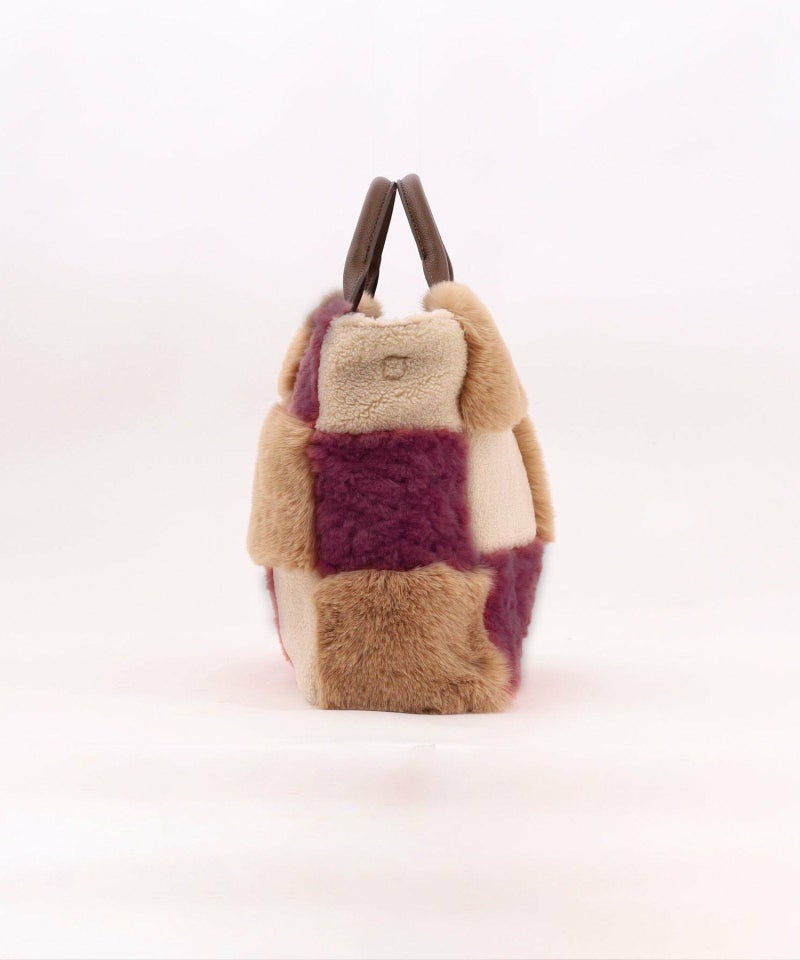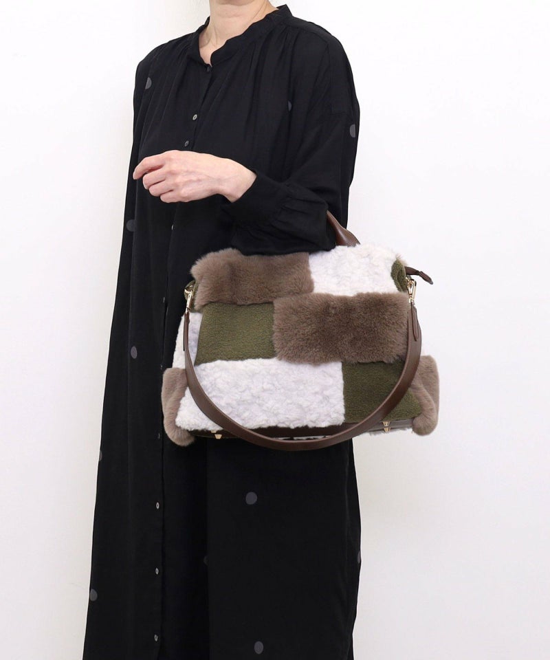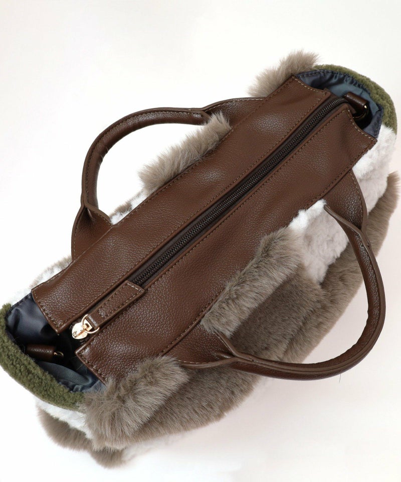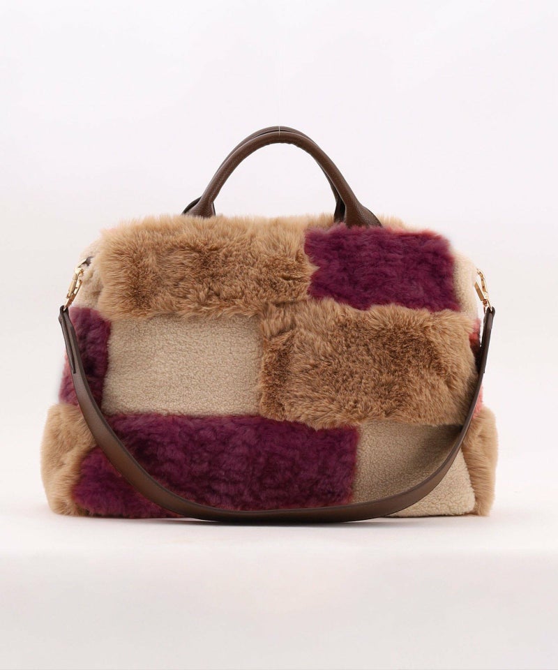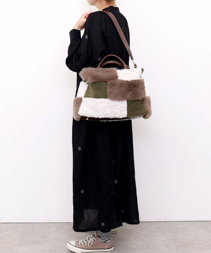 3種類のファーをパッチワークした大人っぽいデザインのトートバッグ。