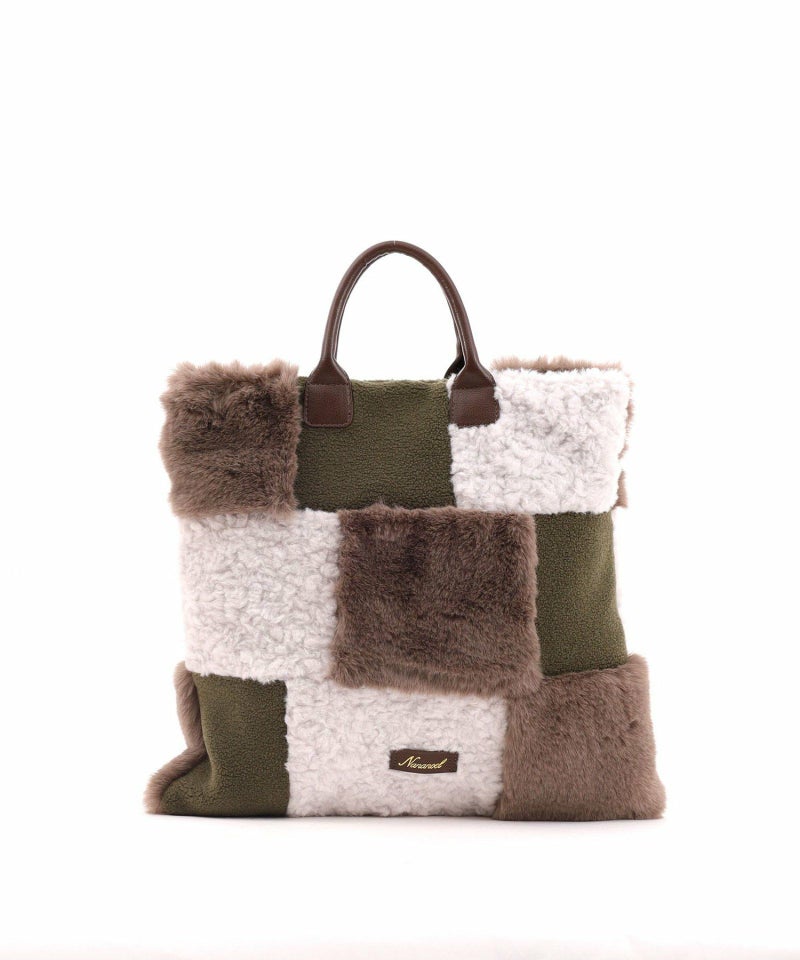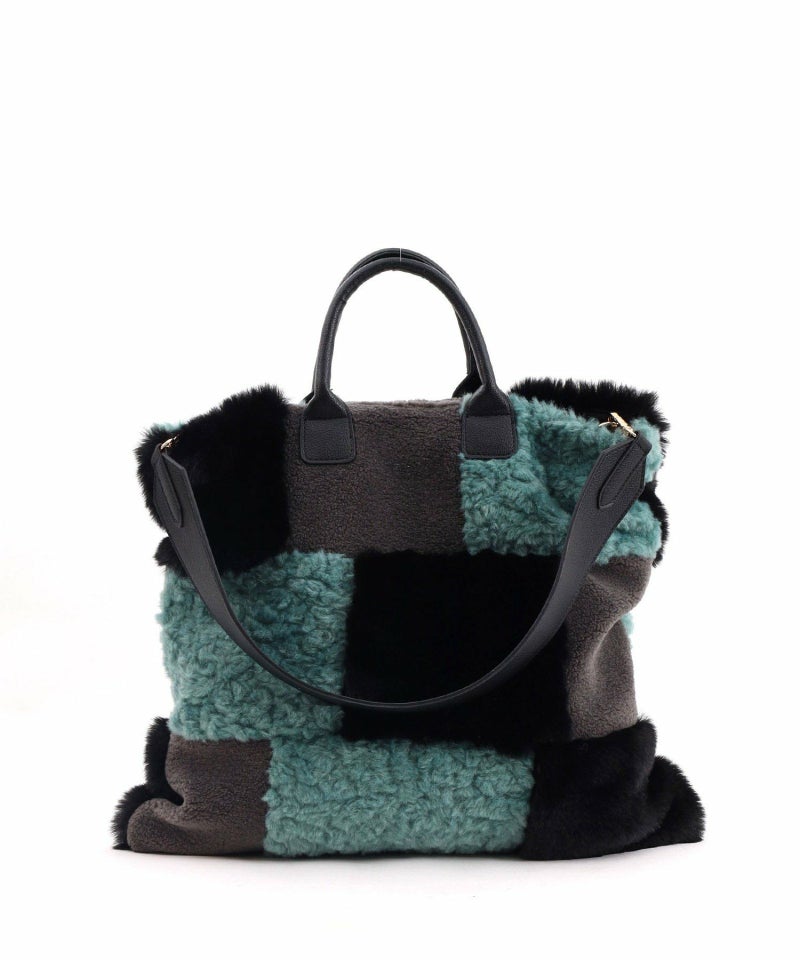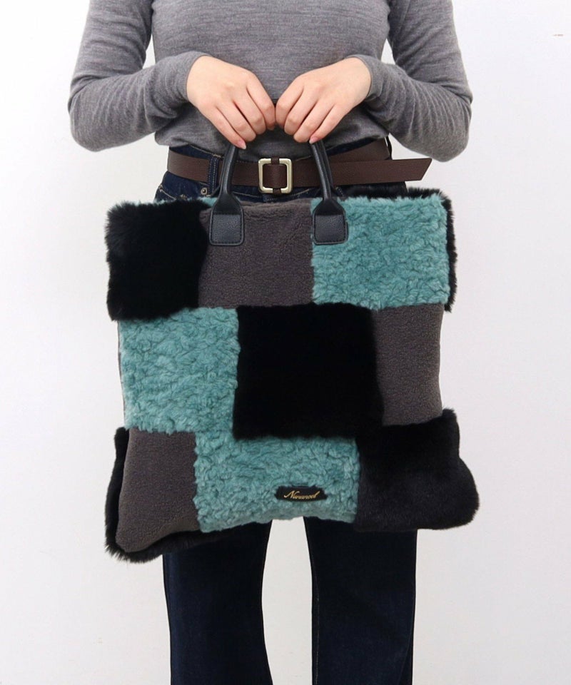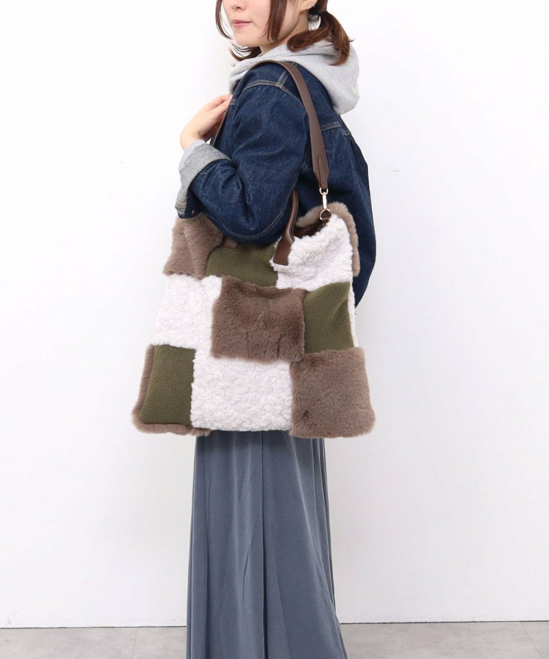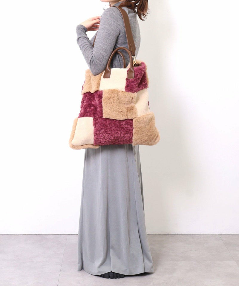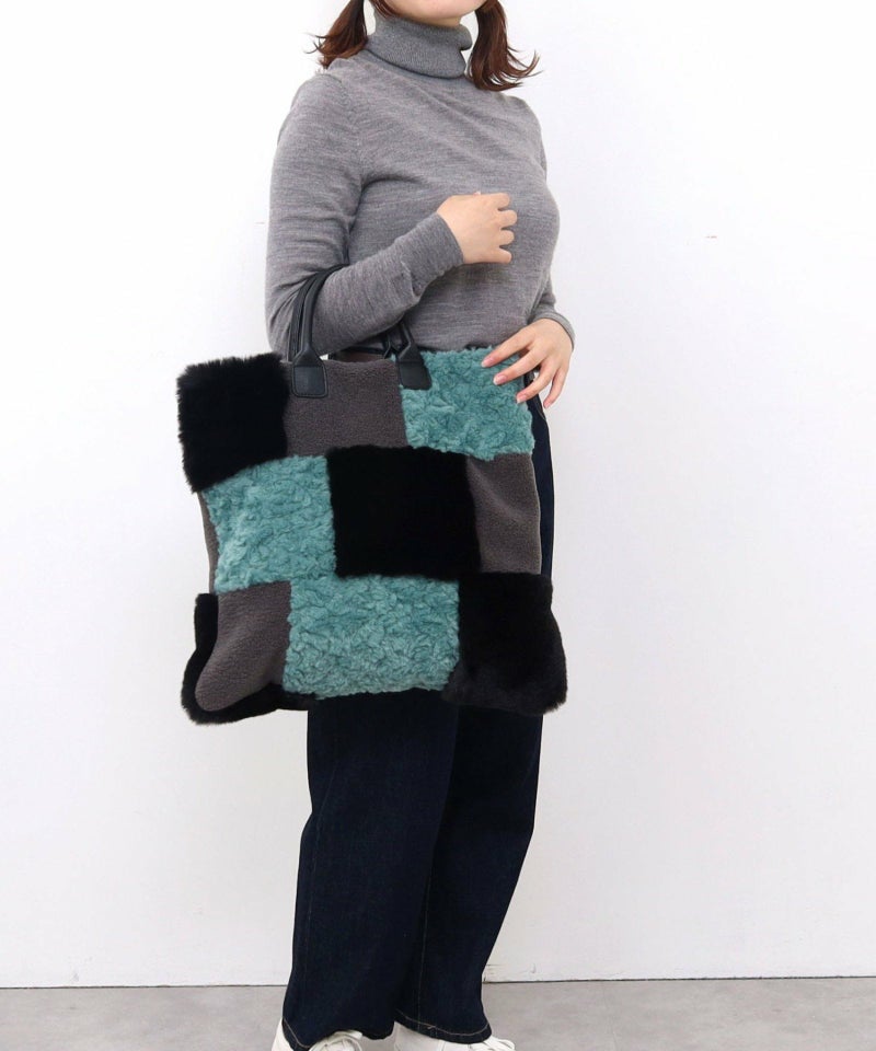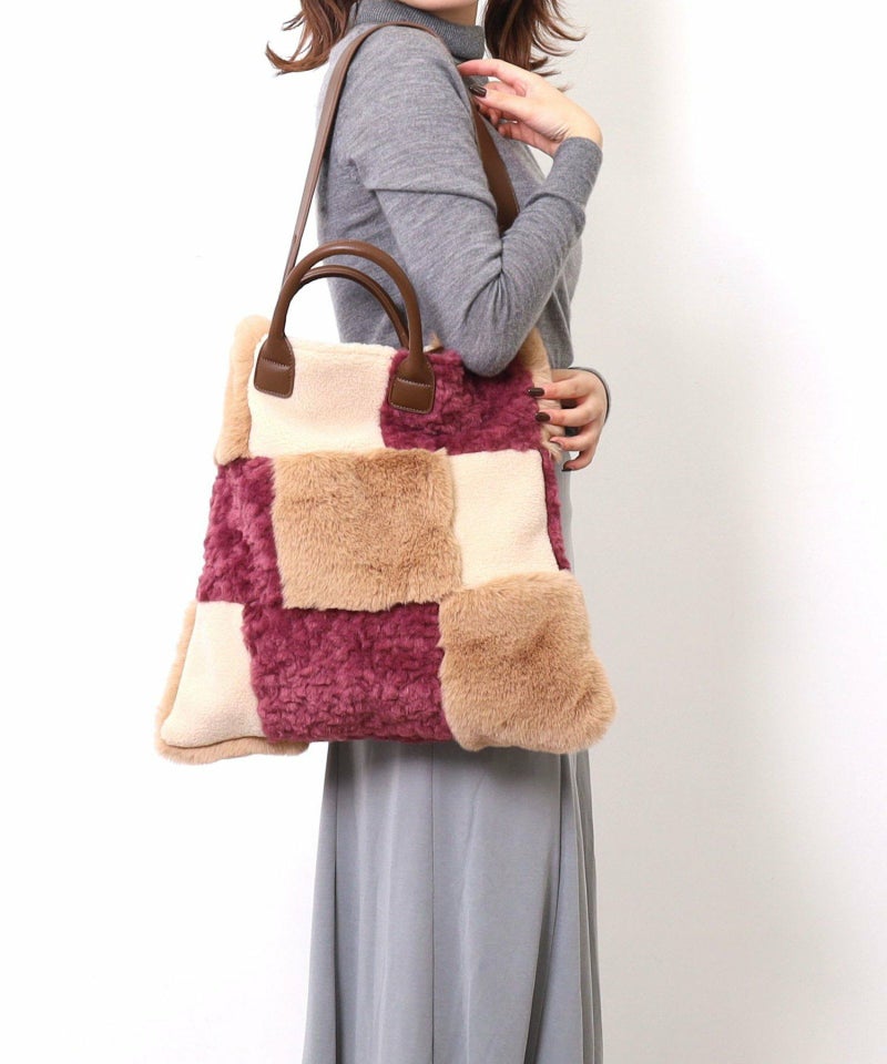 3種類のファーをパッチワークした大人っぽいデザインのトートバッグ。