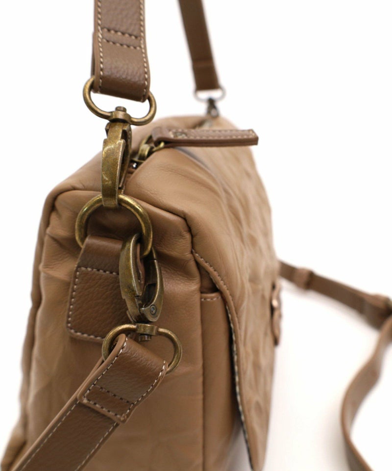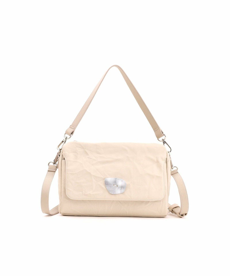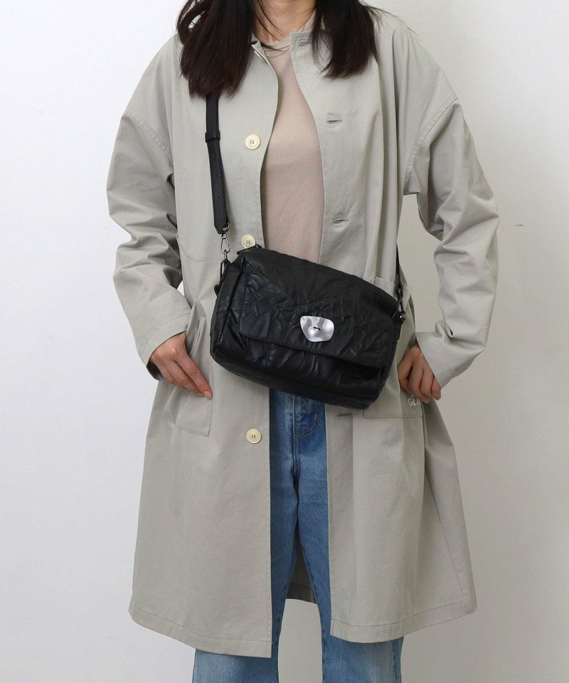 前ポケットのカブセに付いたメタルボタンがポイントのフェイクレザーショルダー。