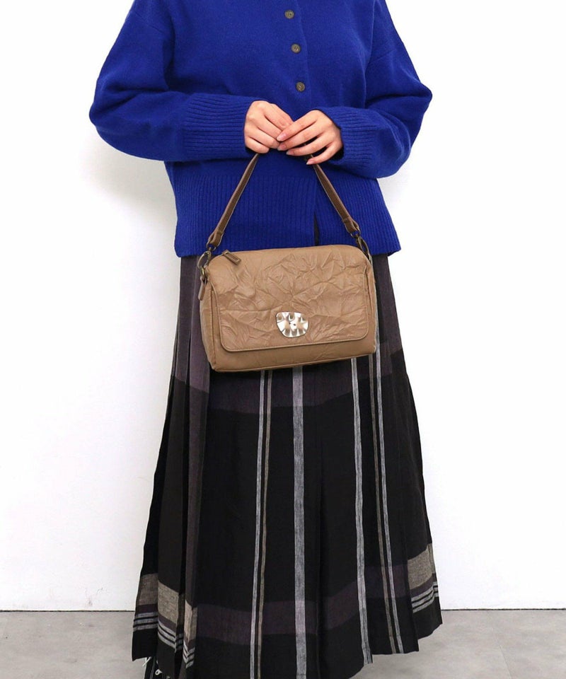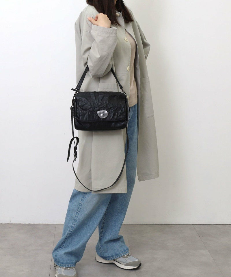シワ加工されたフェイクレザーがこなれた雰囲気を出しています。