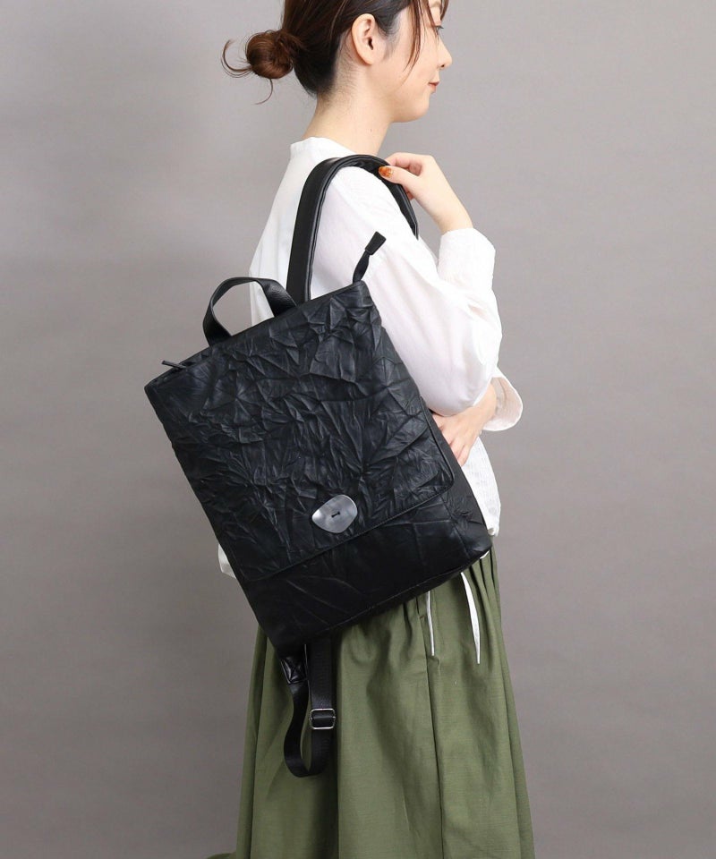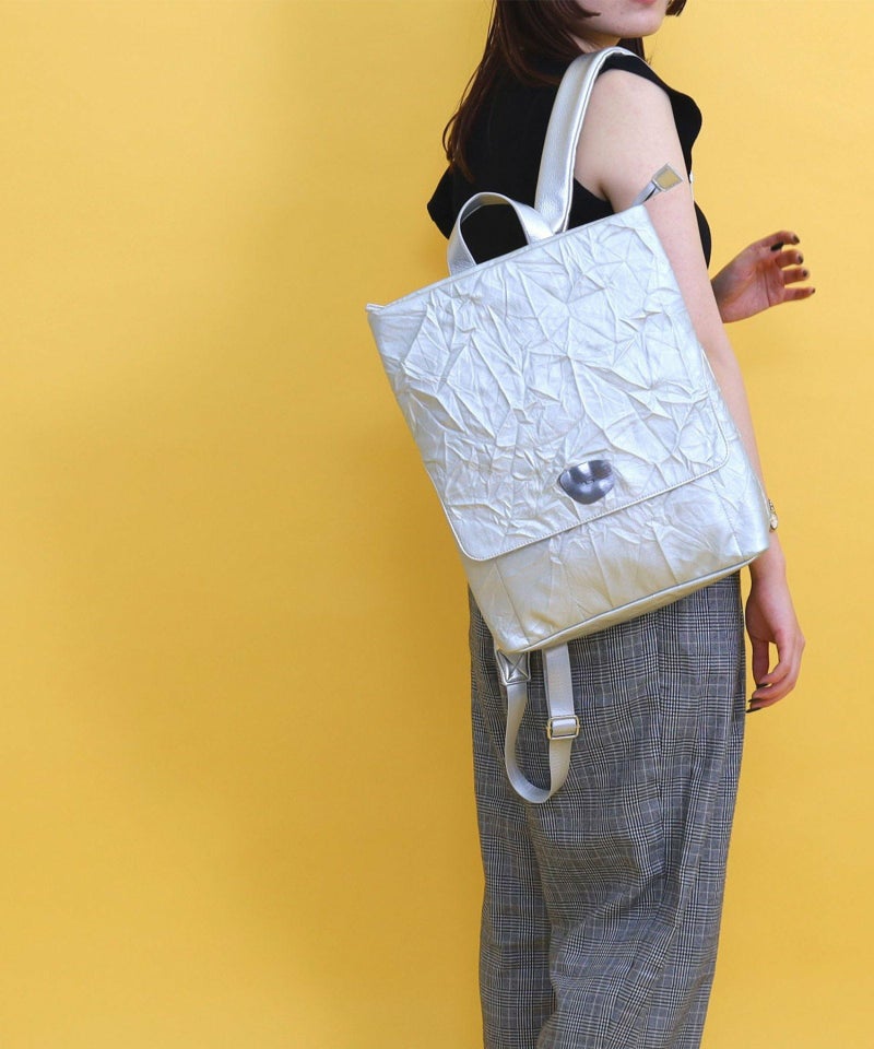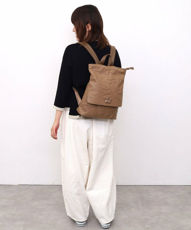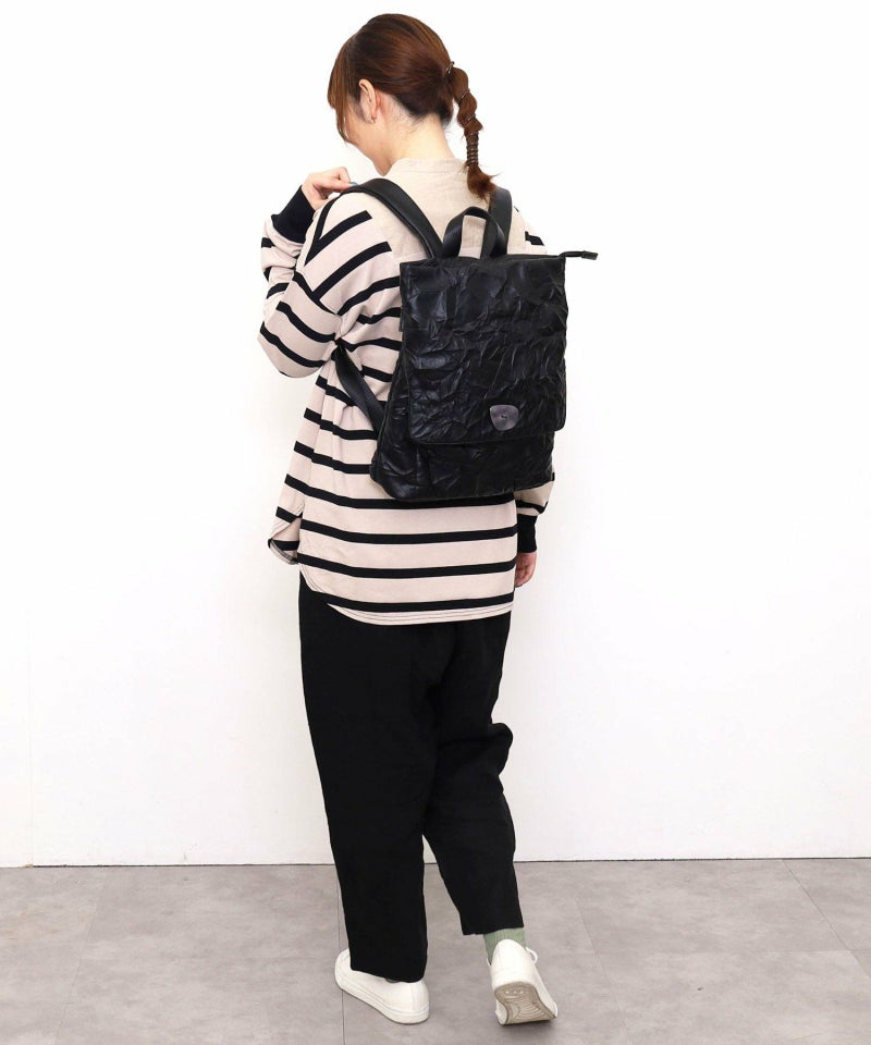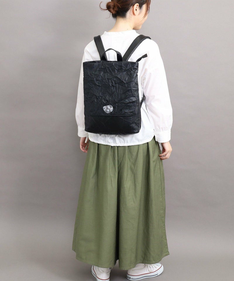 シワ加工されたフェイクレザーがこなれた雰囲気を出しています。