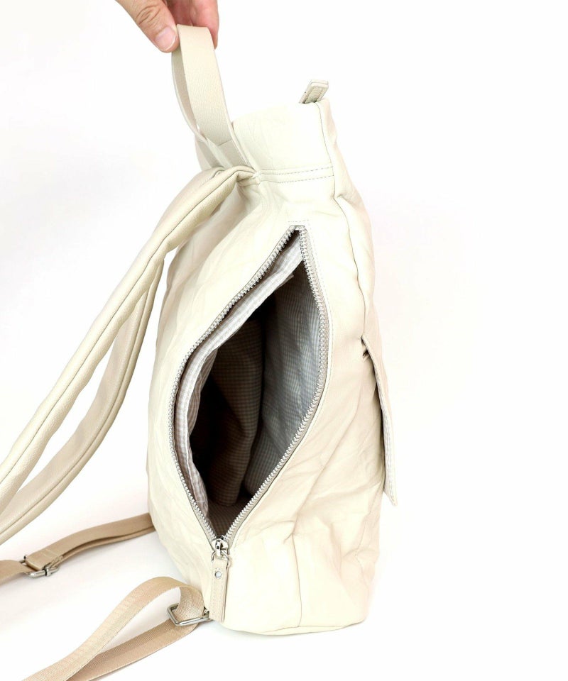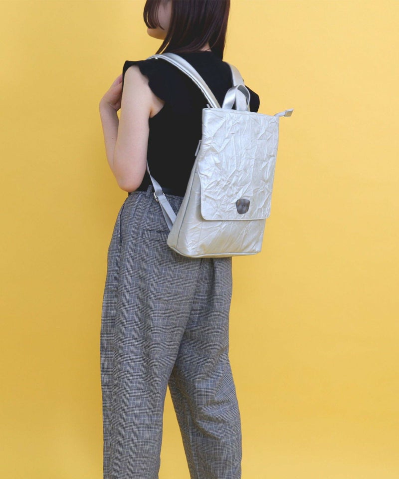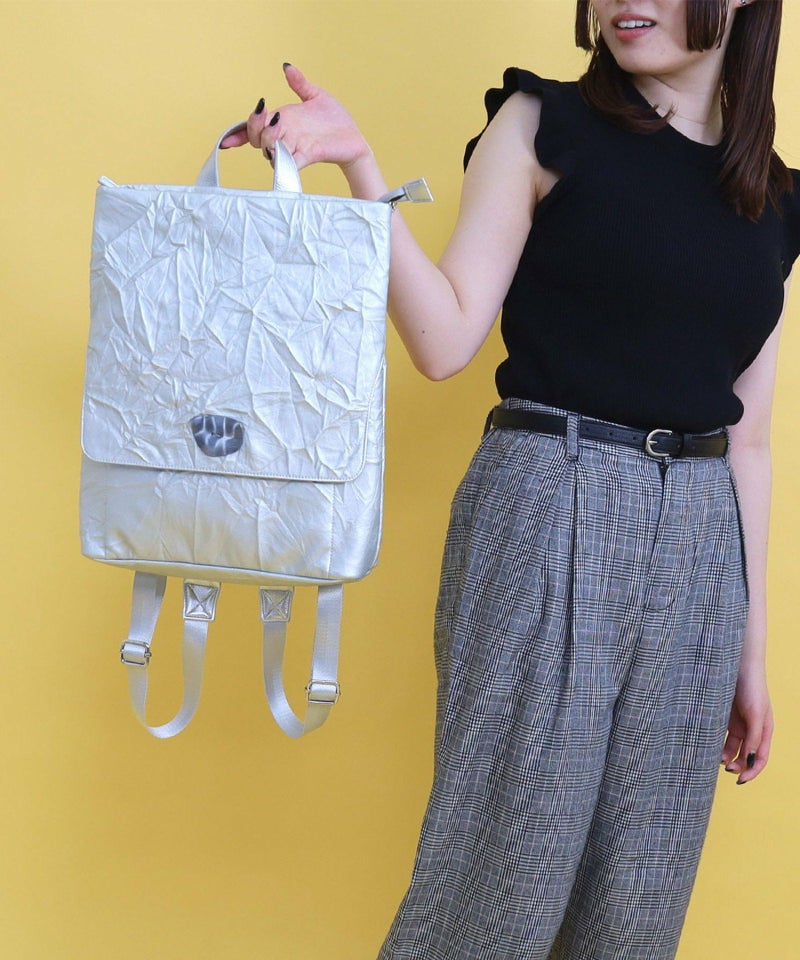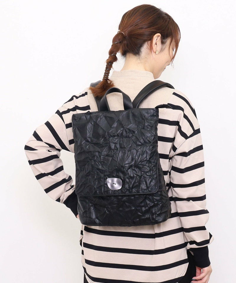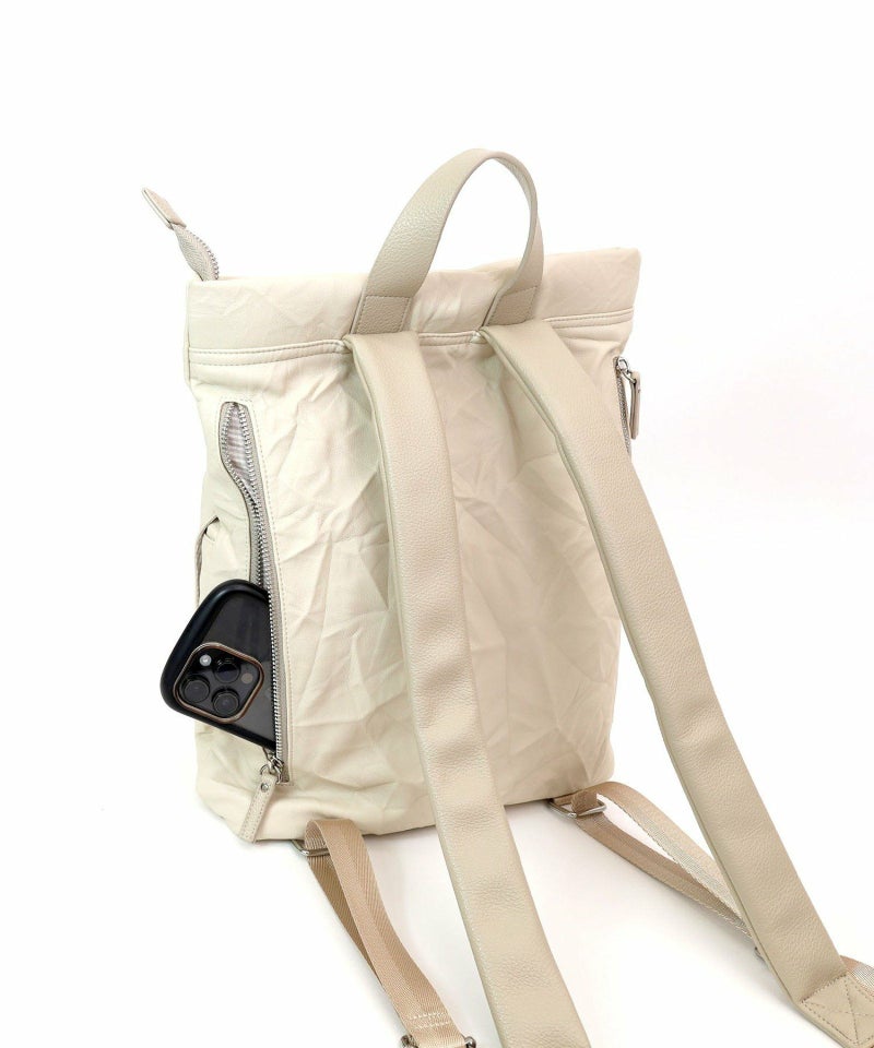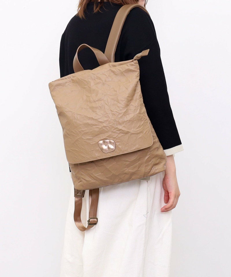 シワ加工されたフェイクレザーがこなれた雰囲気を出しています。