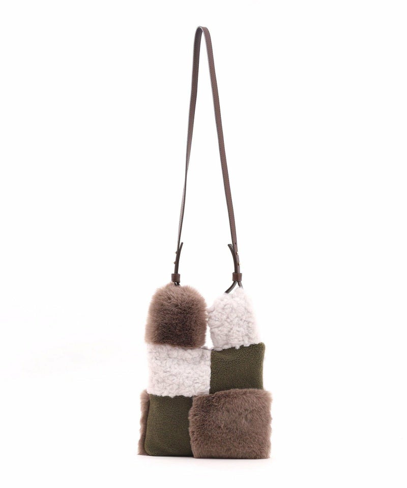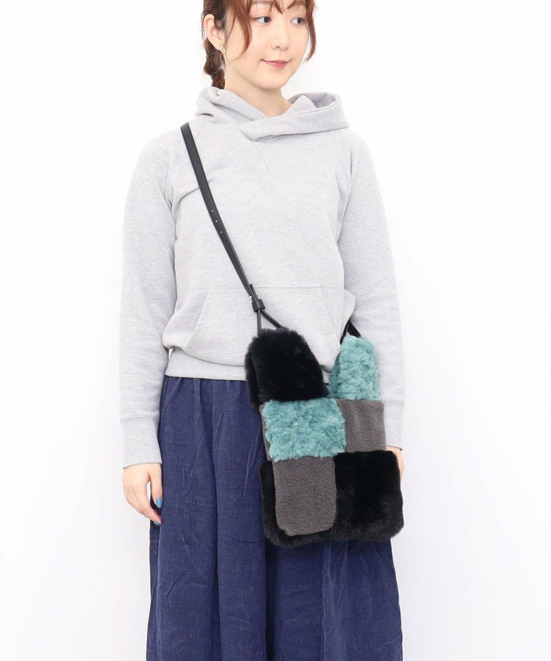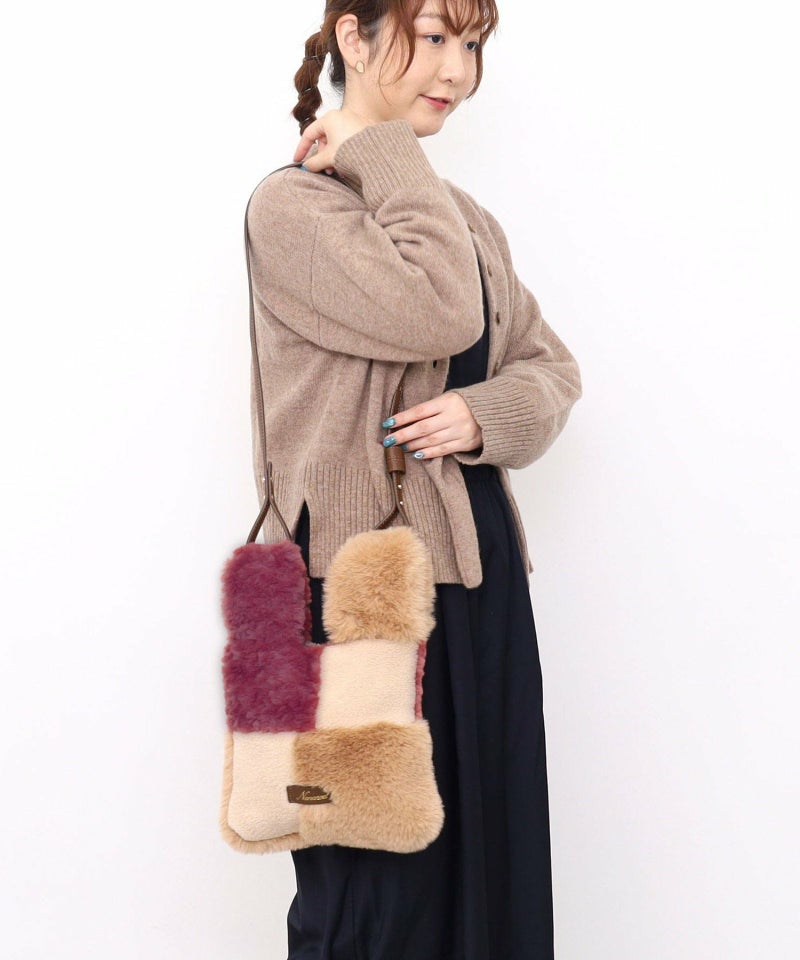 3種類のファーをパッチワークした大人っぽいデザインのトートバッグ。