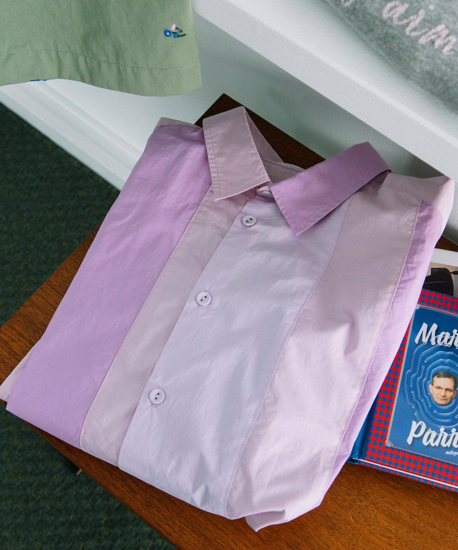 コットンリネンキッチンクロス風パネルチェックシャツ