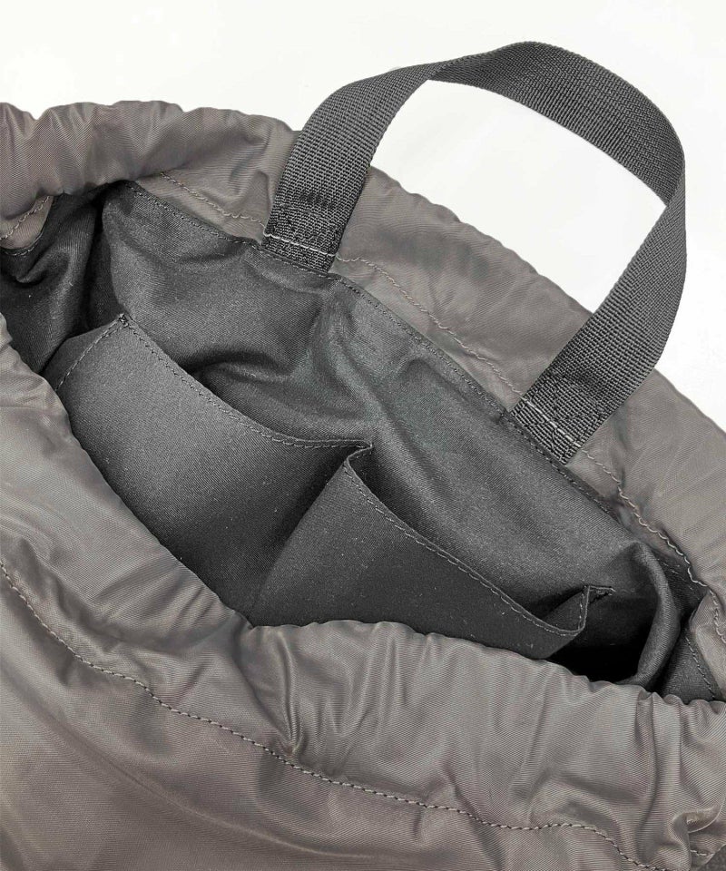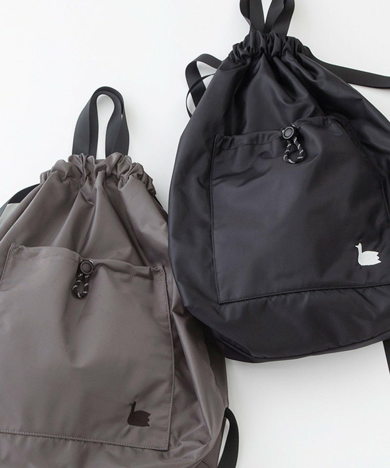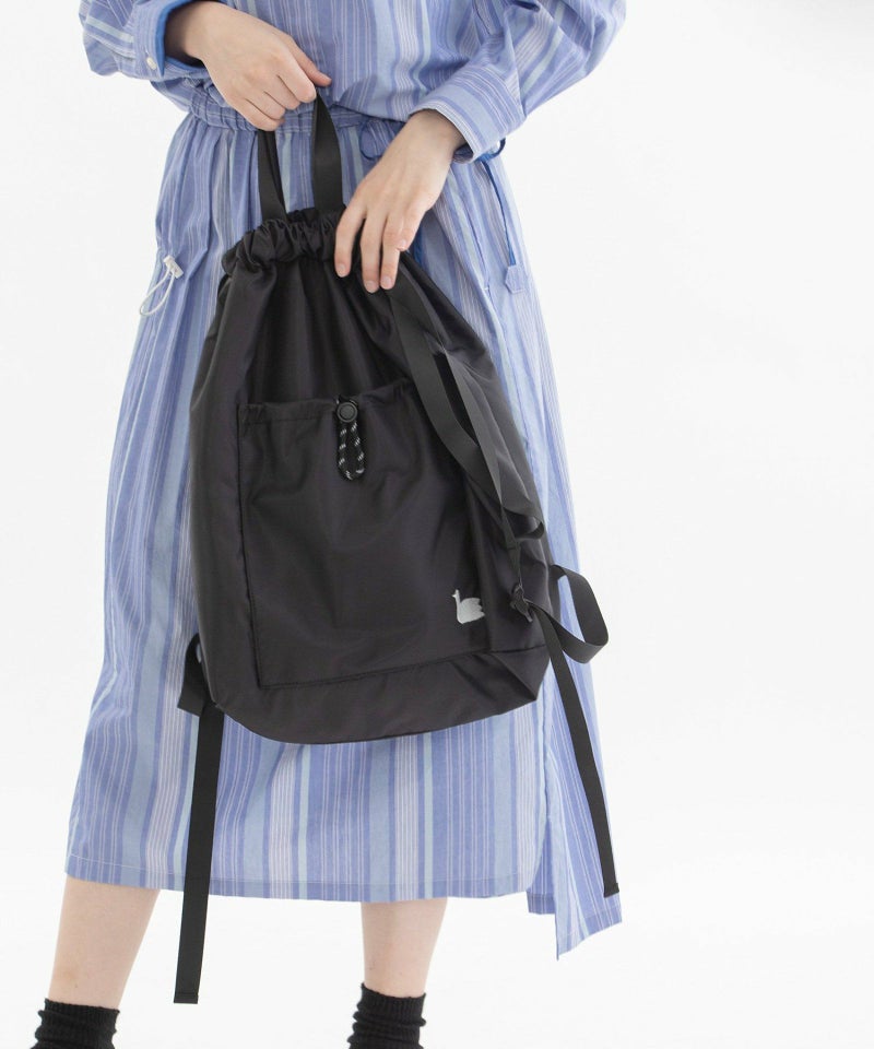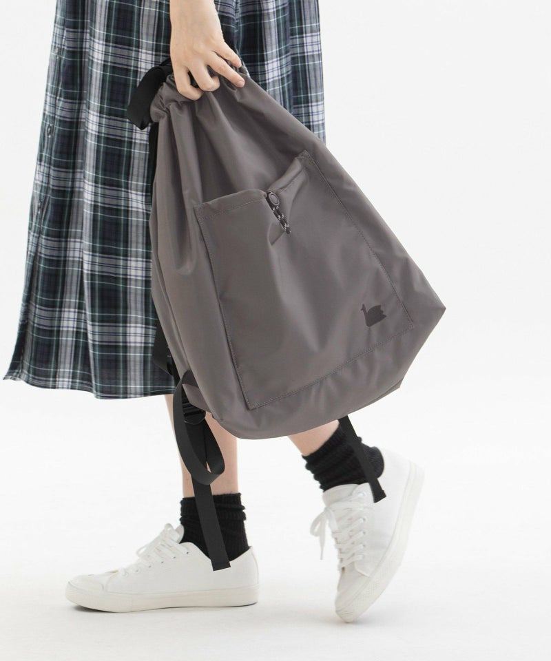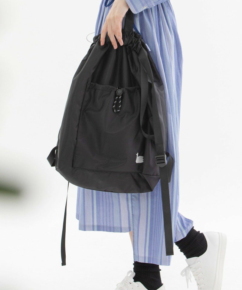 デイリーユースにぴったりな使い勝手抜の良いナップサック。肩紐の長さが調整できるデザインや、A4もすっぽり入るサイズ感です。リュックのように背負うのはもちろん、ラフに肩掛けするスタイルもおすすめです。手持ちスタイルも出来るショートハンドル付き。アウトポケットにはスワン刺繍がアクセント。裏地つき(インポケットあり)