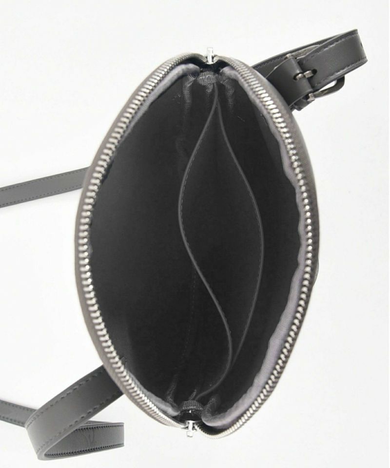 ころんとした丸いフォルムのショルダーバッグ。コンパクトに見えて、仕切りも内ポケットもあり収納力のあるアイテム。一枚仕立てですっきりと仕上げています。内ポケット1か所、ショルダーの長さは6段階で調節できます。